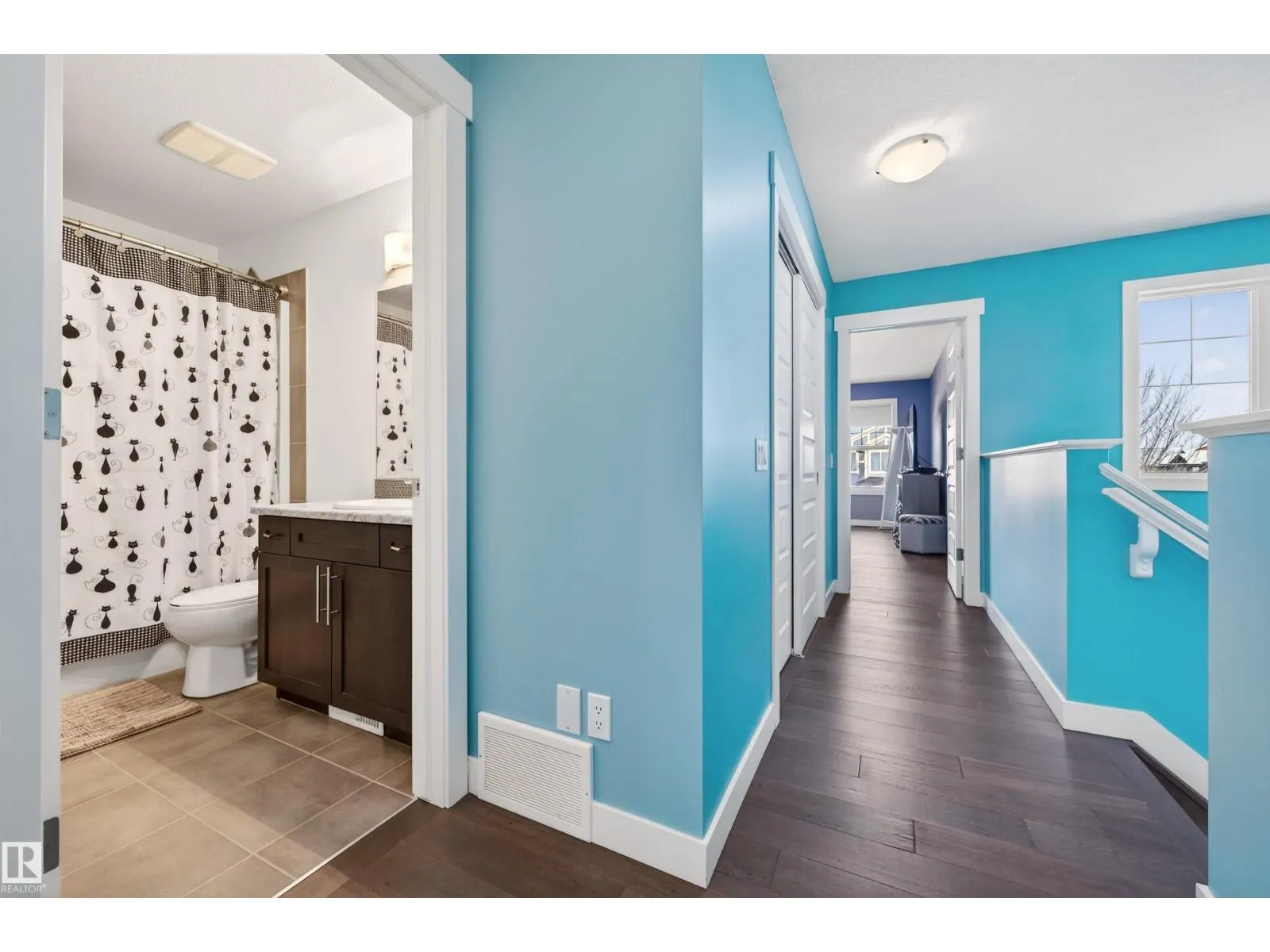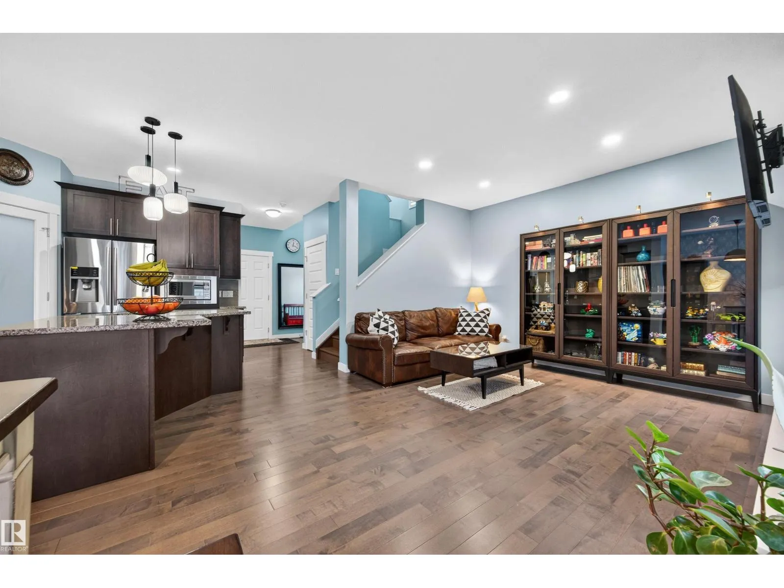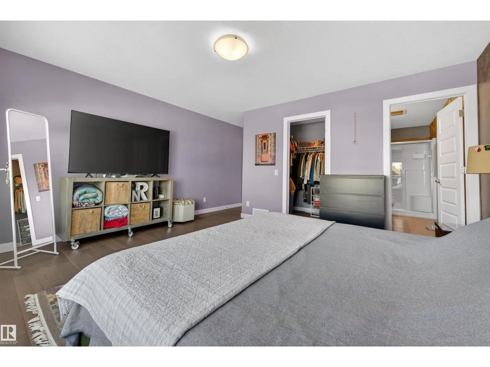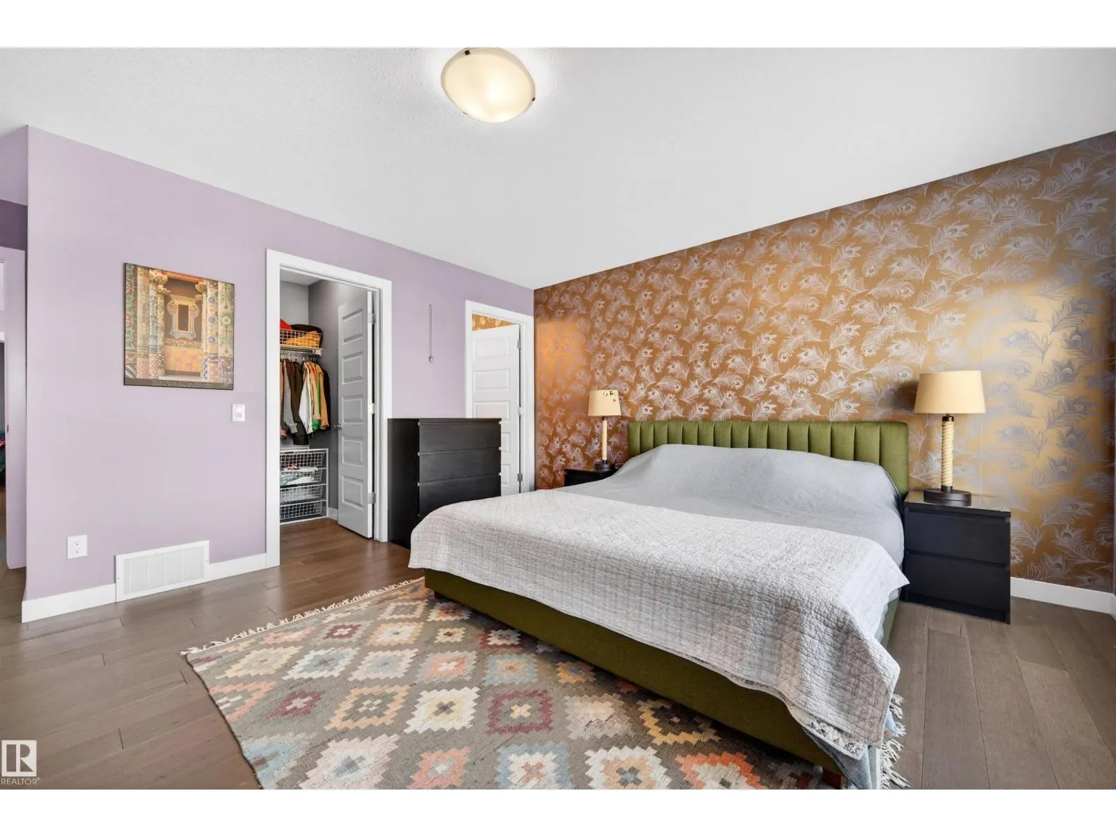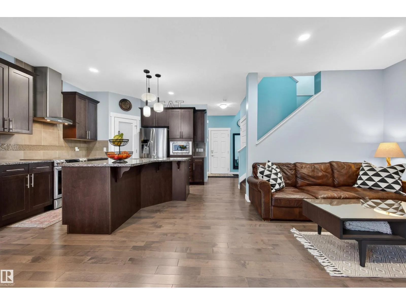 Original owner! Welcome to this spacious detached Daytona home set on a generous lot in Rosenthal's sought-after, family-oriented neighbourhood. Step inside through the wide entryway to discover an open-concept kitchen, dining area, and living room featuring a cozy gas fireplace. This home features 9â ceilings, pot lights, Hunter Douglas blinds, granite countertops, a walk-in pantry, a new stove (2026), and beautiful hardwood floors. Upstairs, youâll find two good size bedrooms, a four-piece bathroom, and a convenient laundry room. The spacious primary suite offers a double vanity, an ensuite shower, and a walk-in closet with custom shelving. The basement remains unfinished, providing ample opportunity for customization. Double attached garage feature epoxy floors. Enjoy a fully landscaped and fenced backyard complete with a charming pergolaâperfect for outdoor entertaining or relaxing evenings. Easy access to nearby schools , WEM, Costco, Public transportation. (id:27476)