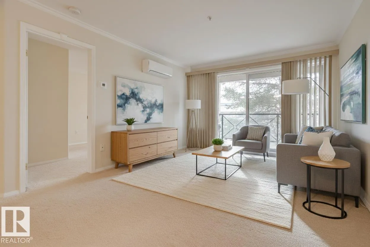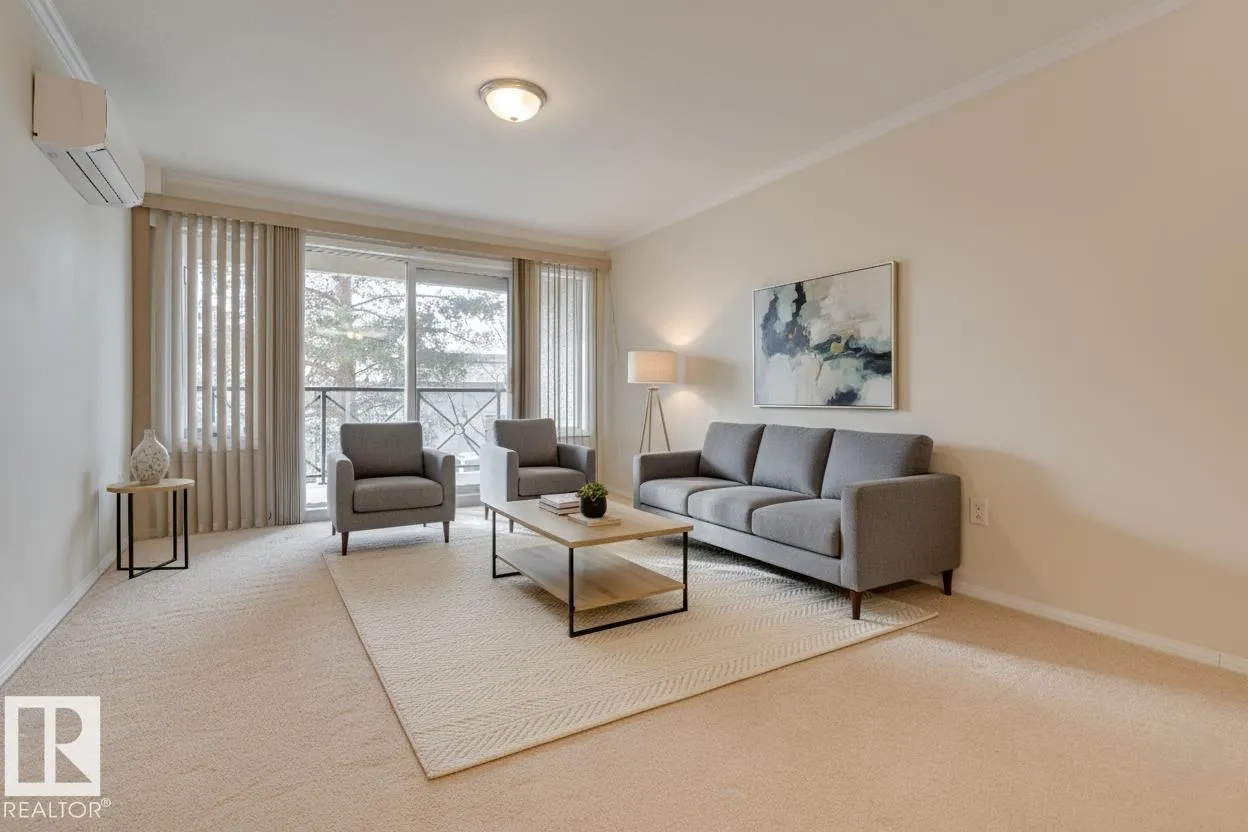 Welcome to effortless 55+ living in this spacious and beautifully maintained 1 bedroom, 1 bathroom condo, thoughtfully designed for comfort and convenience. The open-concept kitchen, living, and dining areas are filled with natural light, creating a bright and inviting space for everyday living & entertaining. The generous primary bedroom features direct access to the patio and a walk-through closet leading to the 4-piece bathroom. Added features of in suite laundry & Air Conditioning. Enjoy the added luxury of heated underground parking with a storage cage, along with outstanding building amenities including a car wash, gym, billiards area, games room, library, social room, & guest suite for visiting family and friends. Ideally located just steps from shopping, grocery stores, dining, medical services, banks, the Edmonton Public Library, public transit, and the future LRT, this home offers unbeatable convenience. This is low-maintenance, active adult living at its finest! (id:27476)