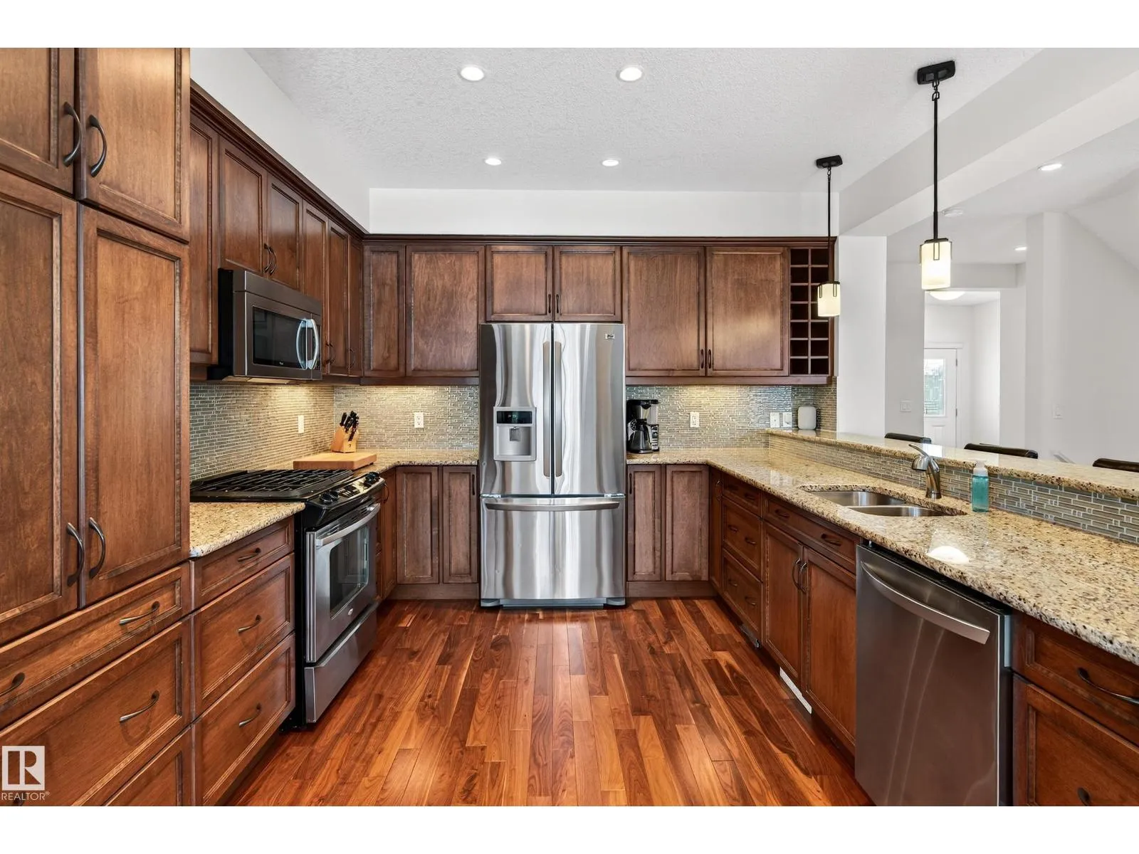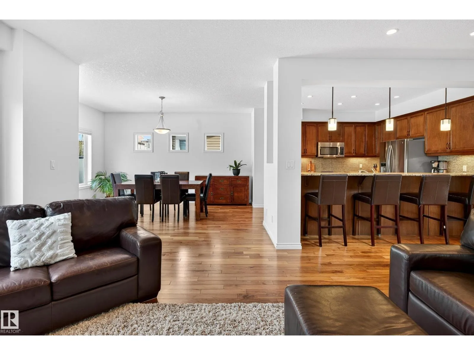 This immaculately maintained, freshly painted, 2457 sq ft 2-storey in sought-after Trumpeter is loaded w/ upgrades & thoughtful design. Main floor features upgraded hardwood flooring, spacious living room w/ cozy gas fireplace, access to the double attached garage & a flex room - perfect for a home office or 4th bedroom. The kitchen is a standout w/ rich cabinetry to the ceiling, stainless steel appliances incl. gas stove, granite countertops, tile backsplash & large raised eating bar overlooking the living area. Patio doors off the dining nook lead to a stunning, professionally landscaped & fully fenced backyard complete w/ composite deck, gas line to BBQ, pergola & beautiful rock retaining walls w/ vibrant flowers & shrubs. Upstairs youâll find a large bonus room, generous primary bedroom w/ 5-piece ensuite & walk-in closet, 2 additional bedrooms, 4 piece bath & laundry room. Basement awaits your finishing touches w/ rough-ins for future bathroom & wet bar. Central A/C & all window coverings included. (id:27476)