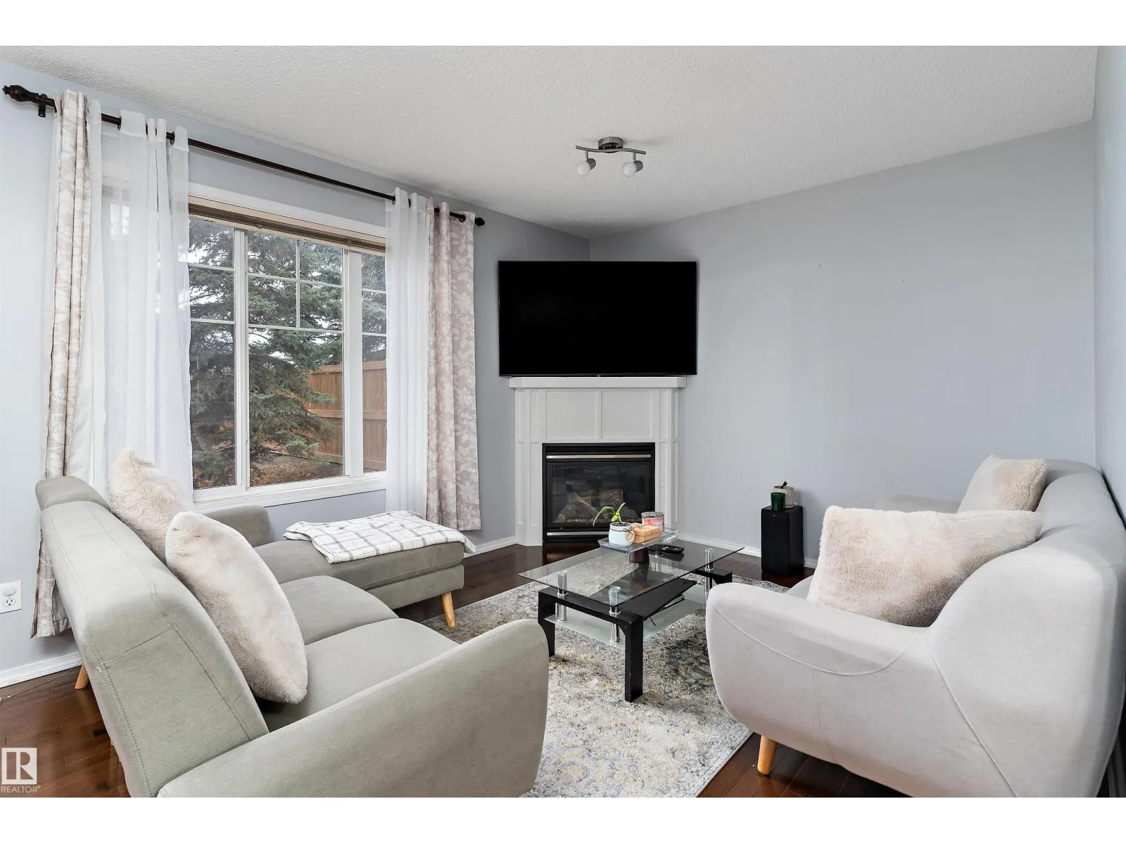 Lovely family home located in peaceful OXFORD! Convenient access to the Anthony Henday, bus stops, schools, walking paths, and Oxford Lake! Featuring a DOUBLE CAR GARAGE, 3 Bedrooms, 3.5 Baths, and a FULLY FINISHED BASEMENT! The kitchen is complete with a pantry, STAINLESS STEEL APPLIANCES, eating bar, Water Filtration System under sink, and TONS OF CABINET SPACE! The LARGE WINDOWS allow tons of natural light to flow throughout the OPEN-CONCEPT main floor design! A corner gas fireplace in the living room, HARDWOOD FLOORS, 2 piece bath, and laundry room finish off the main floor. Upstairs is a spacious primary suite with a WALK-IN CLOSET and 4 piece ENSUITE! 2 Additional bedrooms and a 4 piece bathroom complete the upper level. Downstairs you'll find a LARGE FAMILY ROOM, 3 piece bath, and TONS OF STORAGE SPACE! Condo fees include the maintenance of the outside including professional snow removal and lawn care! (id:27476)