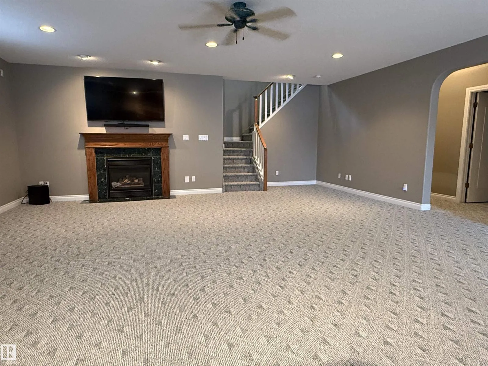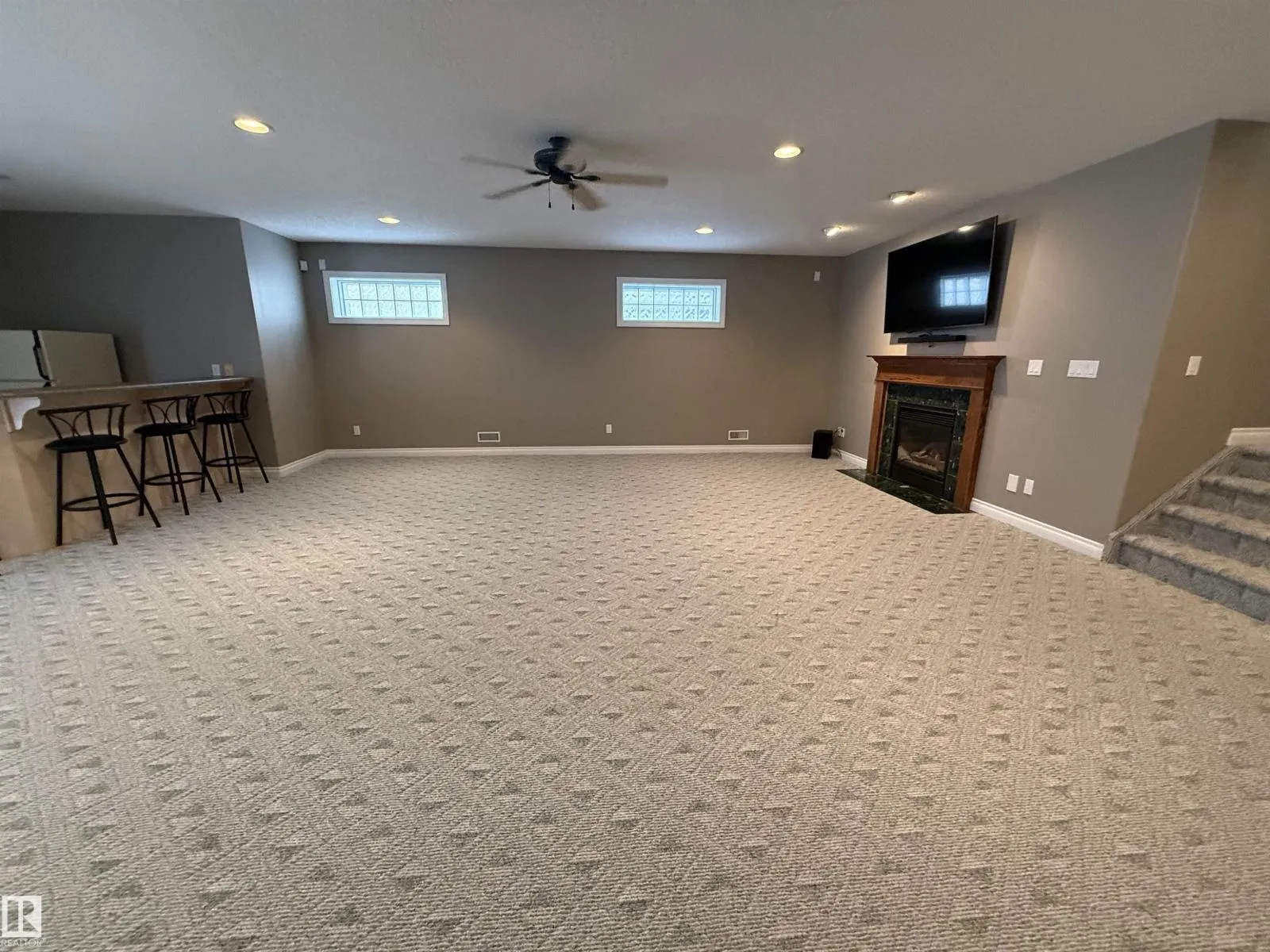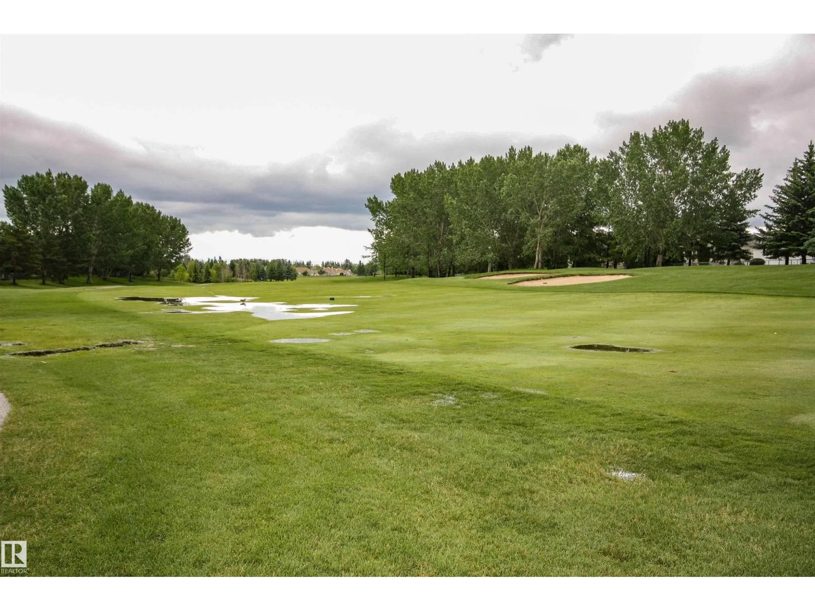 Lewis Estates â The Shores! Welcome to this premier 45+ community backing onto water views & the Lewis Estates Golf Course. Enjoy low-maintenance living in this immaculate walkout bungalow featuring the largest floor plan on the market, offering over 3,467 sq ft of total living space! The bright kitchen boasts granite countertops, marble backsplash, stainless steel appliances & a breakfast nook with access to the upper deckâperfect for taking in the view. Hardwood flooring flows through the main living areas, highlighted by custom lighting, a three-way gas fireplace & a vaulted formal dining room ideal for entertaining. The main floor also offers a home office, powder room, laundry & a spacious primary retreat with walk-in closet, five-piece ensuite & peaceful views. The fully finished walkout lower level includes a second bedroom with walk-in closet, den, gas fireplace, large rec room, wet bar, ample storage & a covered patio. Move-in ready in one of west Edmontonâs most desirable adult communities. (id:27476)