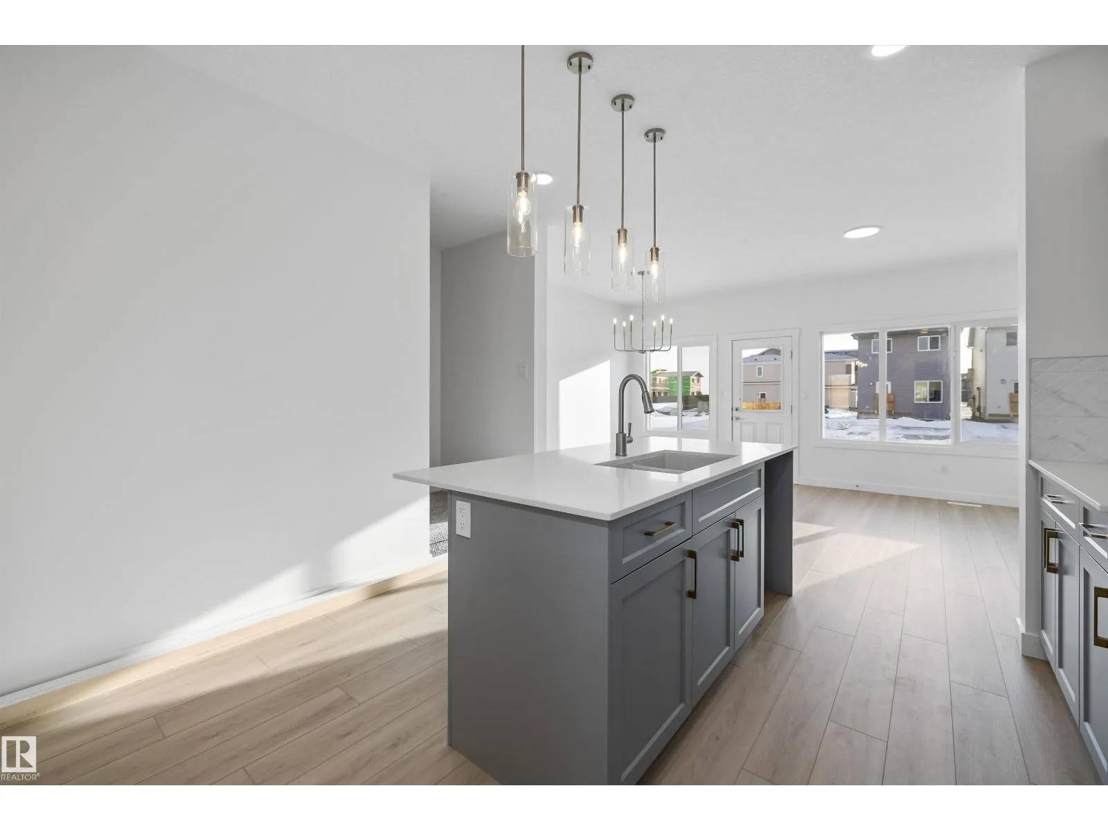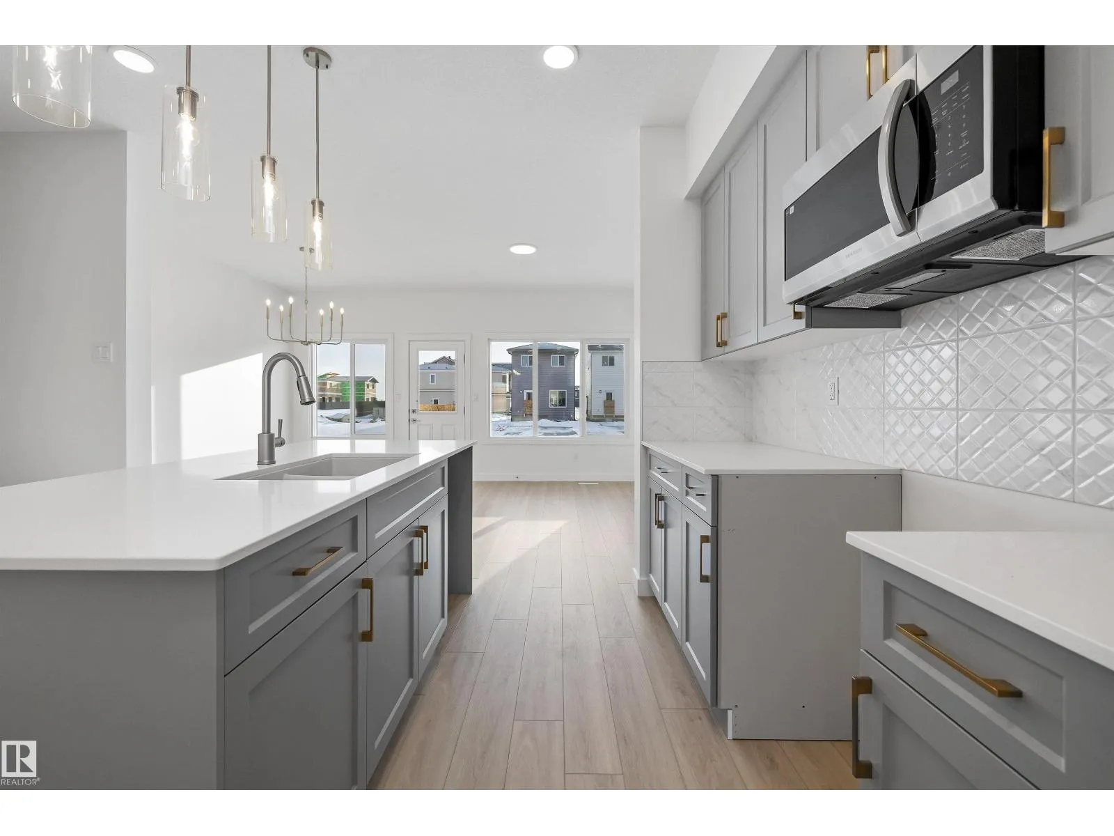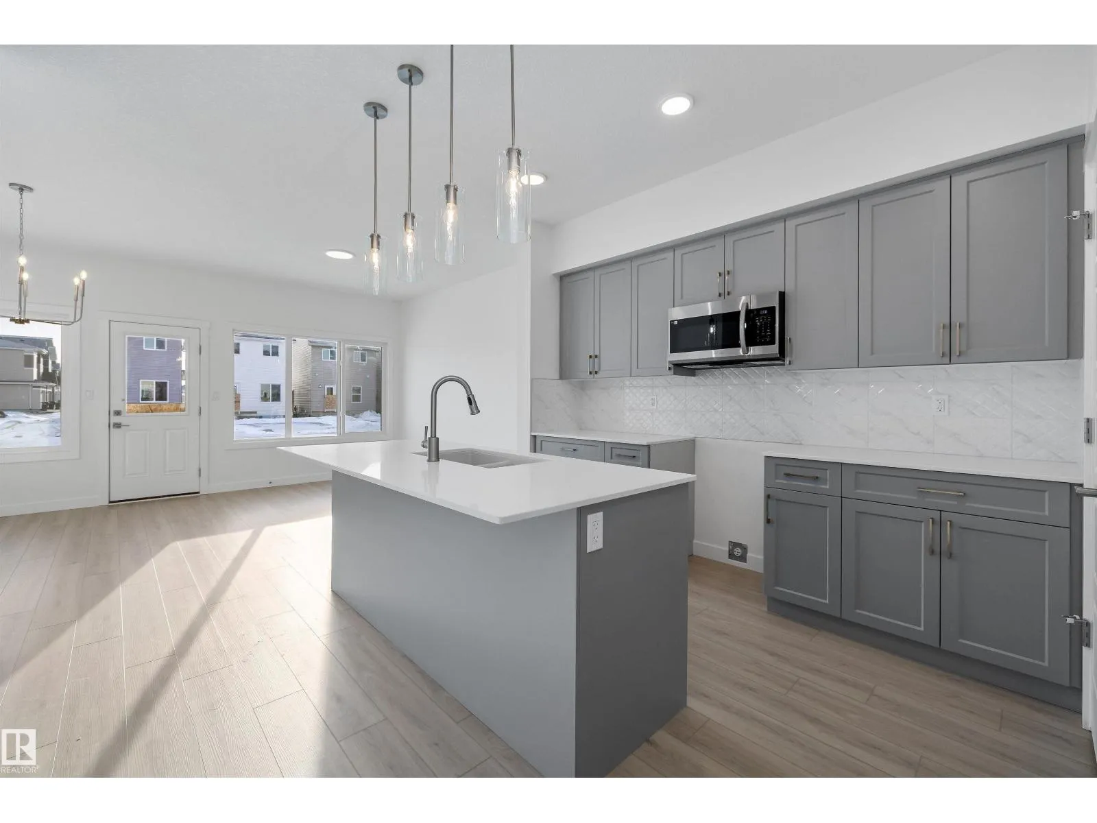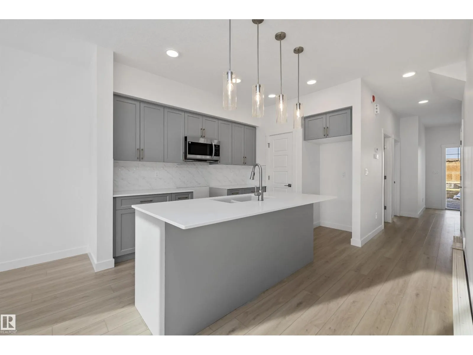 Built by Sterling Homes, this stylish laned home in The Uplands at Riverview blends warmth, comfort, and modern design in a community surrounded by trails, parks, and natural amenities. Triple-pane windows and 9â ceilings fill the main floor with natural light, creating an inviting space. The kitchen features quartz countertops, a large island, upgraded cabinetry, full-height tile backsplash, and a corner pantryâperfect for cooking and gathering. The open layout flows into the dining and living areas with a garden door to the backyard. A main-floor bedroom and full bath offer flexible space for guests or a home office. Upstairs, enjoy a cozy bonus room, a spacious primary suite with walk-in closet and ensuite, plus two additional bedrooms, a full bath, and upper-floor laundry. With luxury vinyl plank flooring, a side entrance, and basement rough-ins for future development, this home offers comfort and smart design in a vibrant West Edmonton community. (id:27476)
