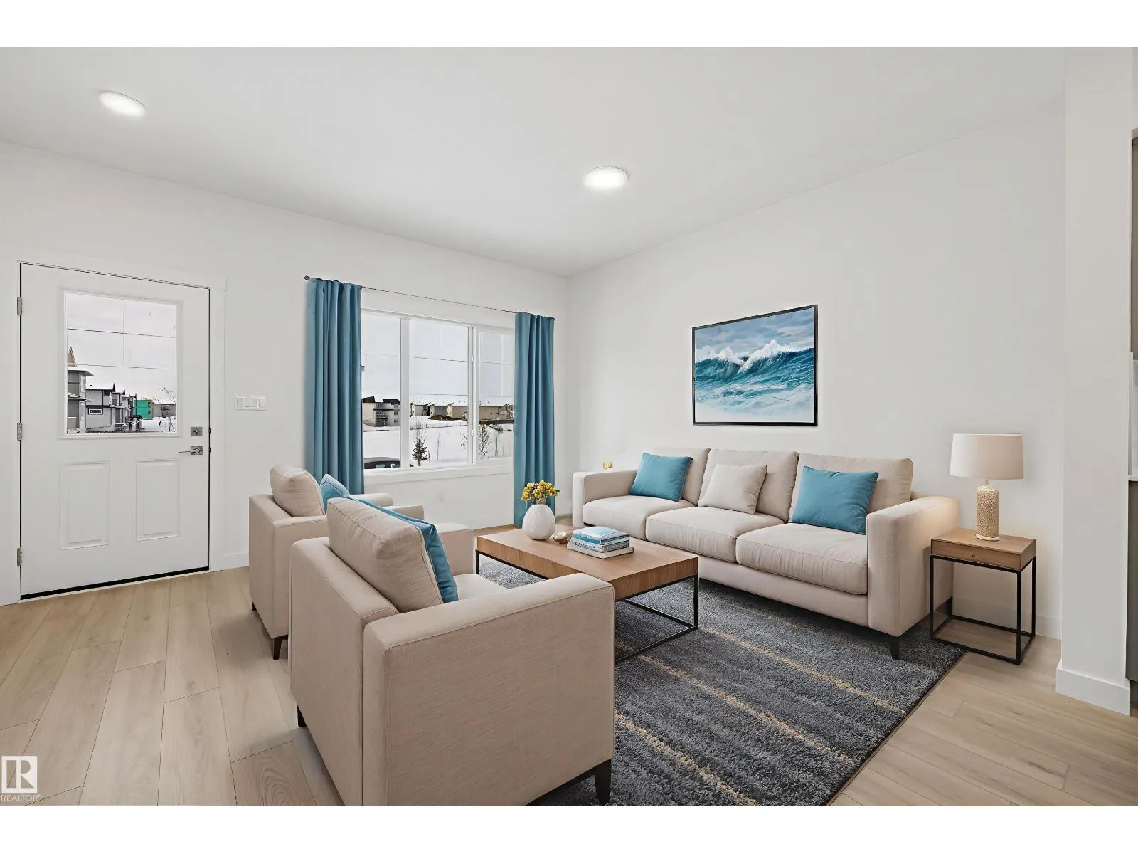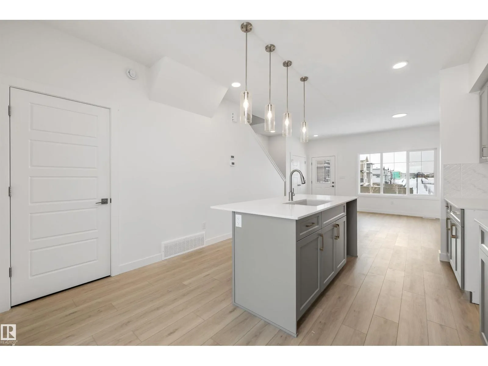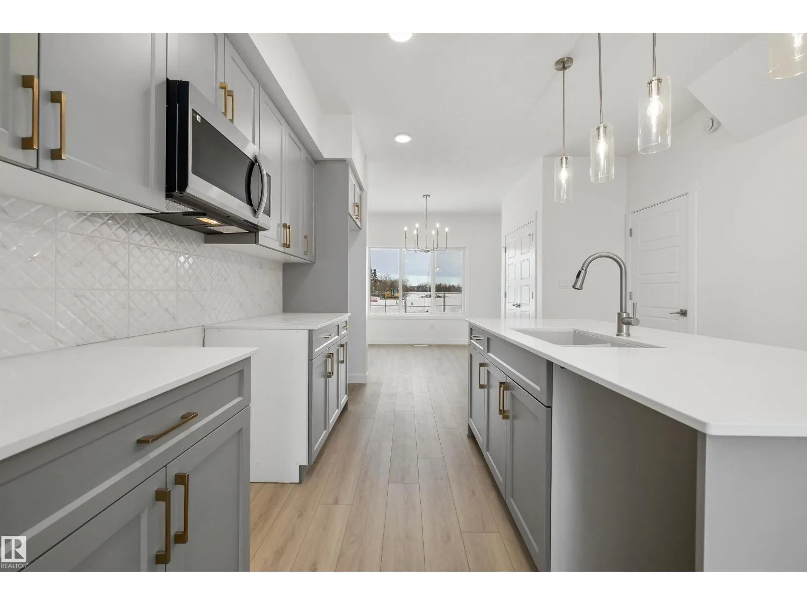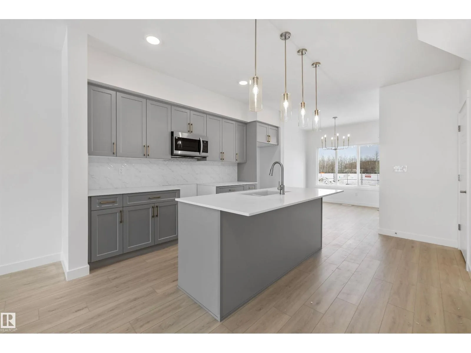 The Stellar is a premier example of balanced architecture, featuring 9â ceilings and Luxury Vinyl Plank flooring throughout a sun-drenched main level. A welcoming foyer leads into a front great room where an expansive window pulls in constant natural light. At the center, the kitchen serves as a focal point with stone surfaces, a Silgranit sink, and an island with a built-in eating ledge. High-profile cabinetry and a dedicated pantry ensure ample storage, while the rear dining area offers clear views of the deep backyard. The back entry provides access to the parking pad, with room for an optional detached garage. Upstairs, a versatile open loft separates the secondary bedrooms from the primary suite, which includes a private walk-in closet and ensuite. Modern brushed nickel fixtures, a separate side entrance, and a stackable laundry closet complete this refined floor plan. Built to the Sterling Signature Specification, this home prioritizes both quality and daily ease. (id:27476)