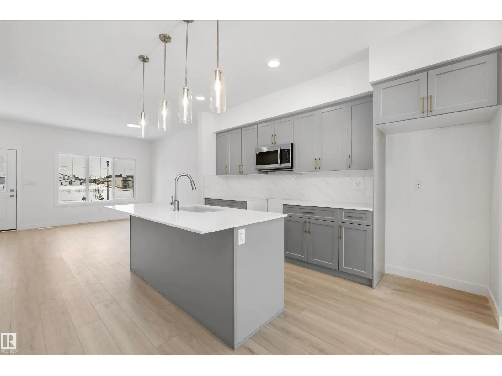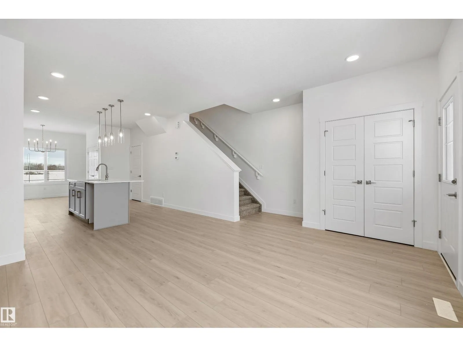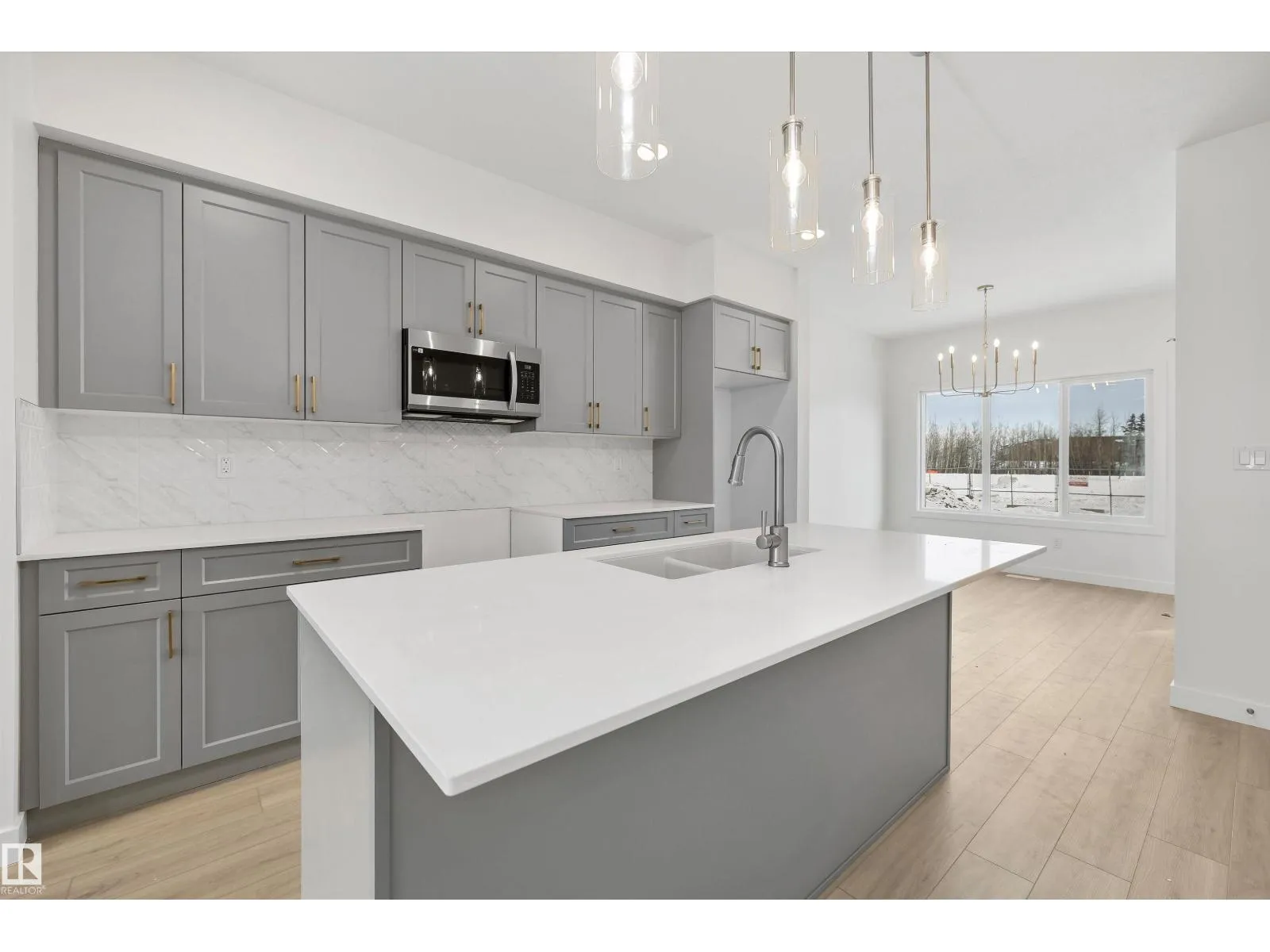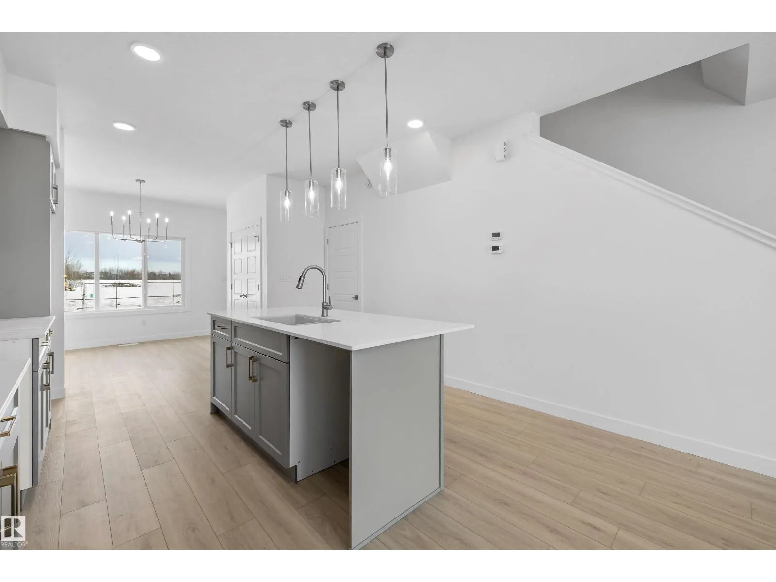 The Stellar is a premier example of balanced architecture, featuring 9â ceilings and Luxury Vinyl Plank flooring throughout a sun-drenched main level. A welcoming foyer leads into a front great room where an expansive window pulls in constant natural light. At the center, the kitchen serves as a focal point with stone surfaces, a Silgranit sink, and an island with a built-in eating ledge. High-profile cabinetry and a dedicated pantry ensure ample storage, while the rear dining area offers clear views of the deep backyard. The back entry provides access to the parking pad, with room for an optional detached garage. Upstairs, a versatile open loft separates the secondary bedrooms from the primary suite, which includes a private walk-in closet and ensuite. Modern brushed nickel fixtures, a separate side entrance, and a stackable laundry closet complete this refined floor plan. Built to the Sterling Signature Specification, this home prioritizes both quality and daily ease. (id:27476)