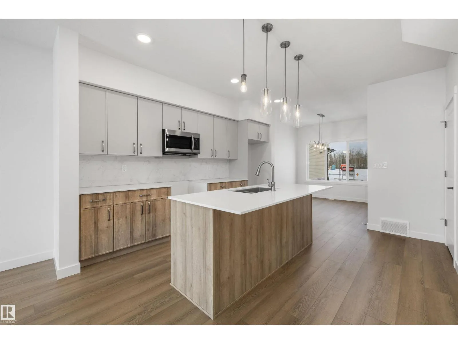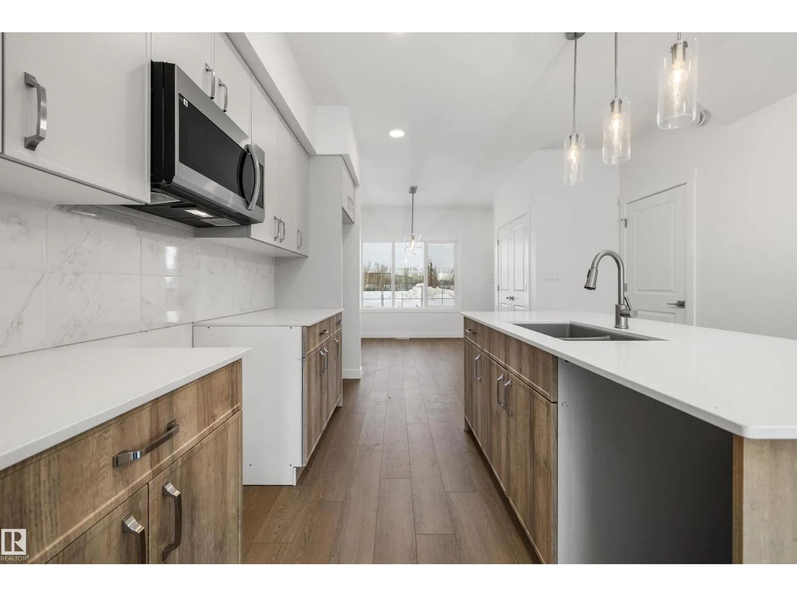 The Stellar is a masterfully designed home that balances daily functionality with sophisticated style. The main level welcomes you with 9â ceilings and durable Luxury Vinyl Plank flooring, leading into a front great room filled with natural light from oversized windows. At the heart of the home, the kitchen features premium Quartz countertops, a flush-ledge eating island, and upgraded soft-close cabinetry paired with a spacious pantry. The rear dining area overlooks an expansive backyard, accessible through a back entry that leads to a rear parking pad with potential for a future detached garage. Upstairs, a versatile open loft provides a secondary living space, separating the secondary bedrooms from a bright primary suite equipped with a walk-in closet and private ensuite. Completed with brushed nickel hardware and a stackable laundry area, this floor plan is optimized for modern comfort. Built with meticulous attention to detail, the Stellar offers a truly refined living experience. (id:27476)