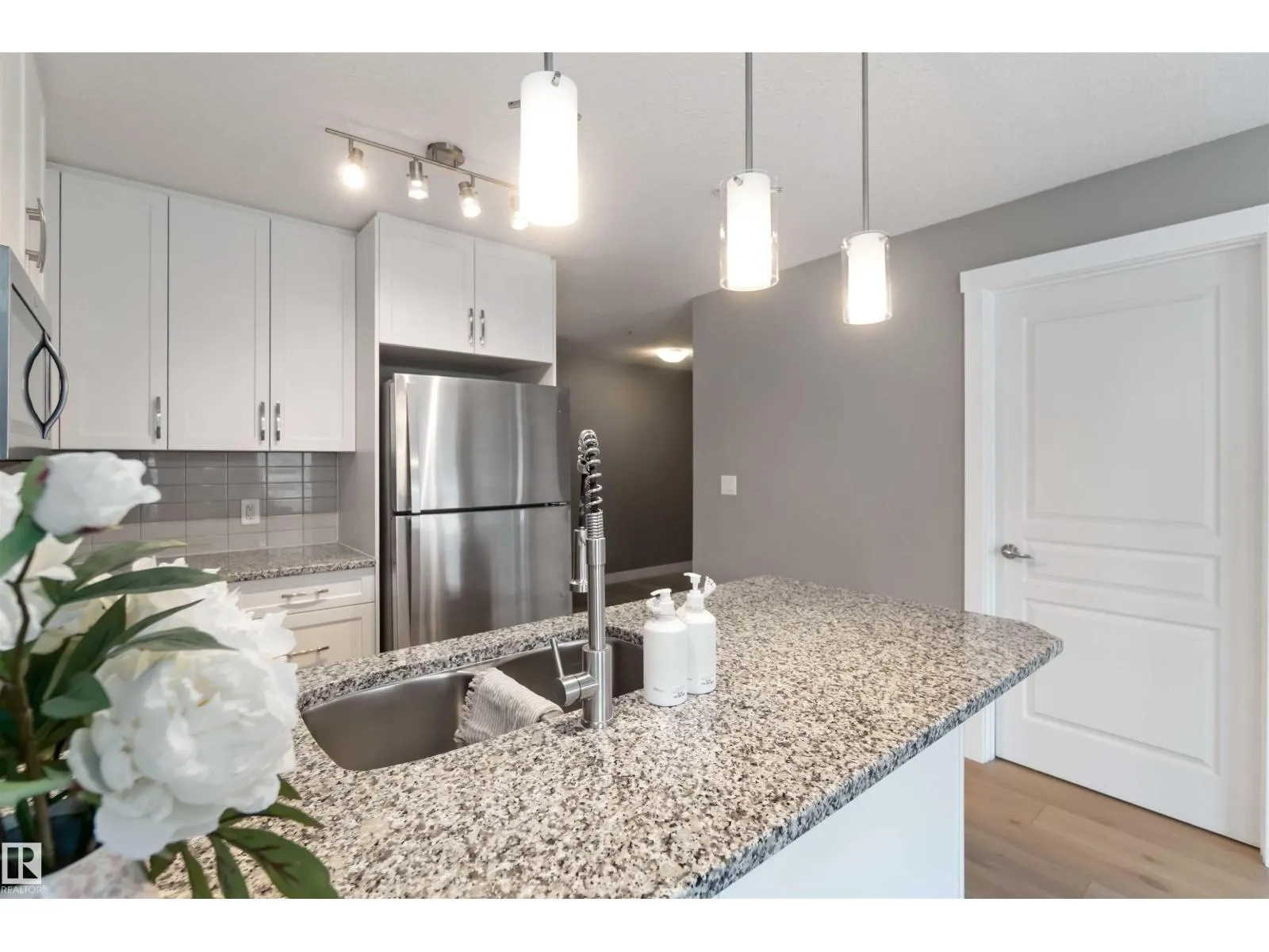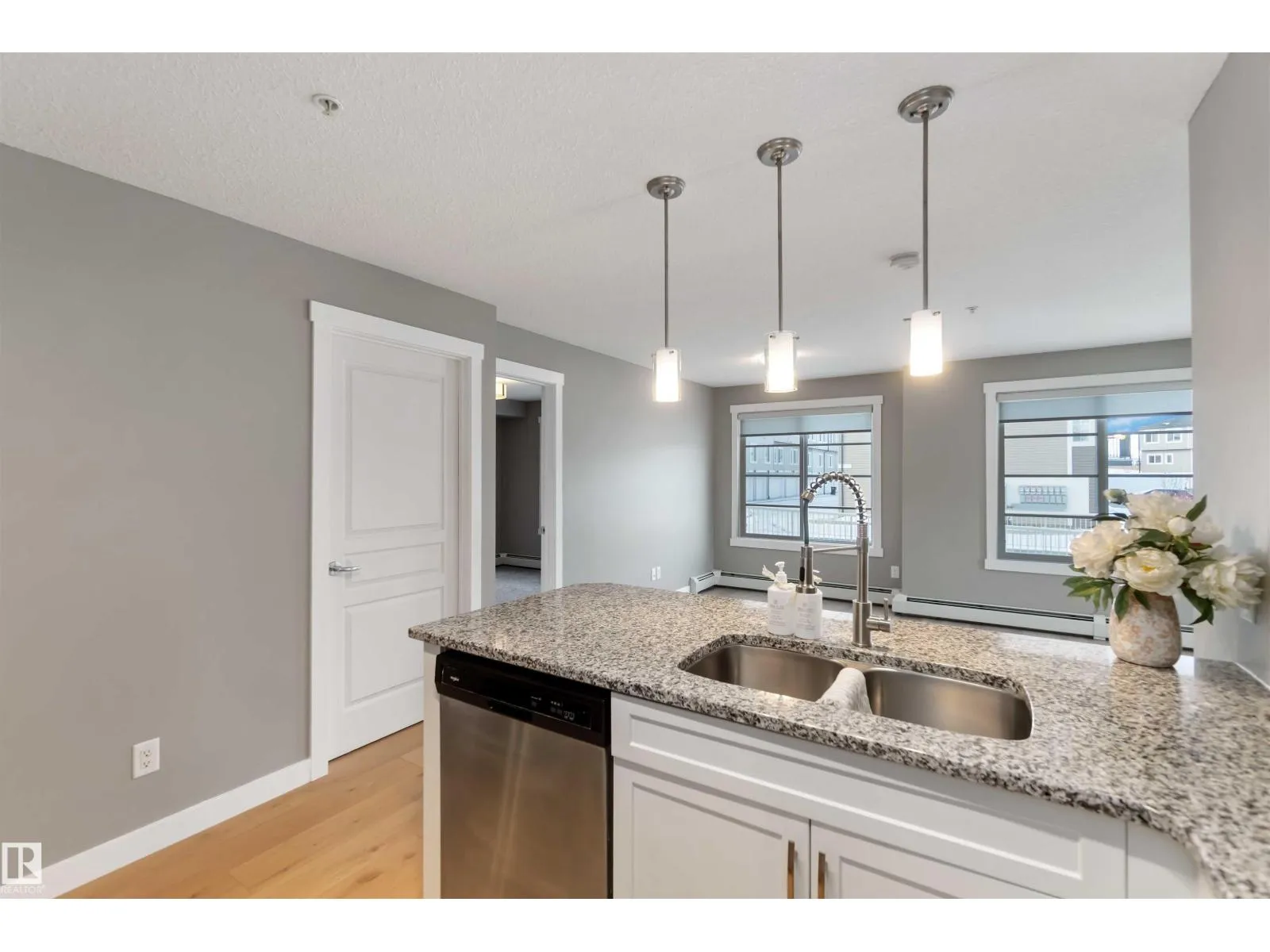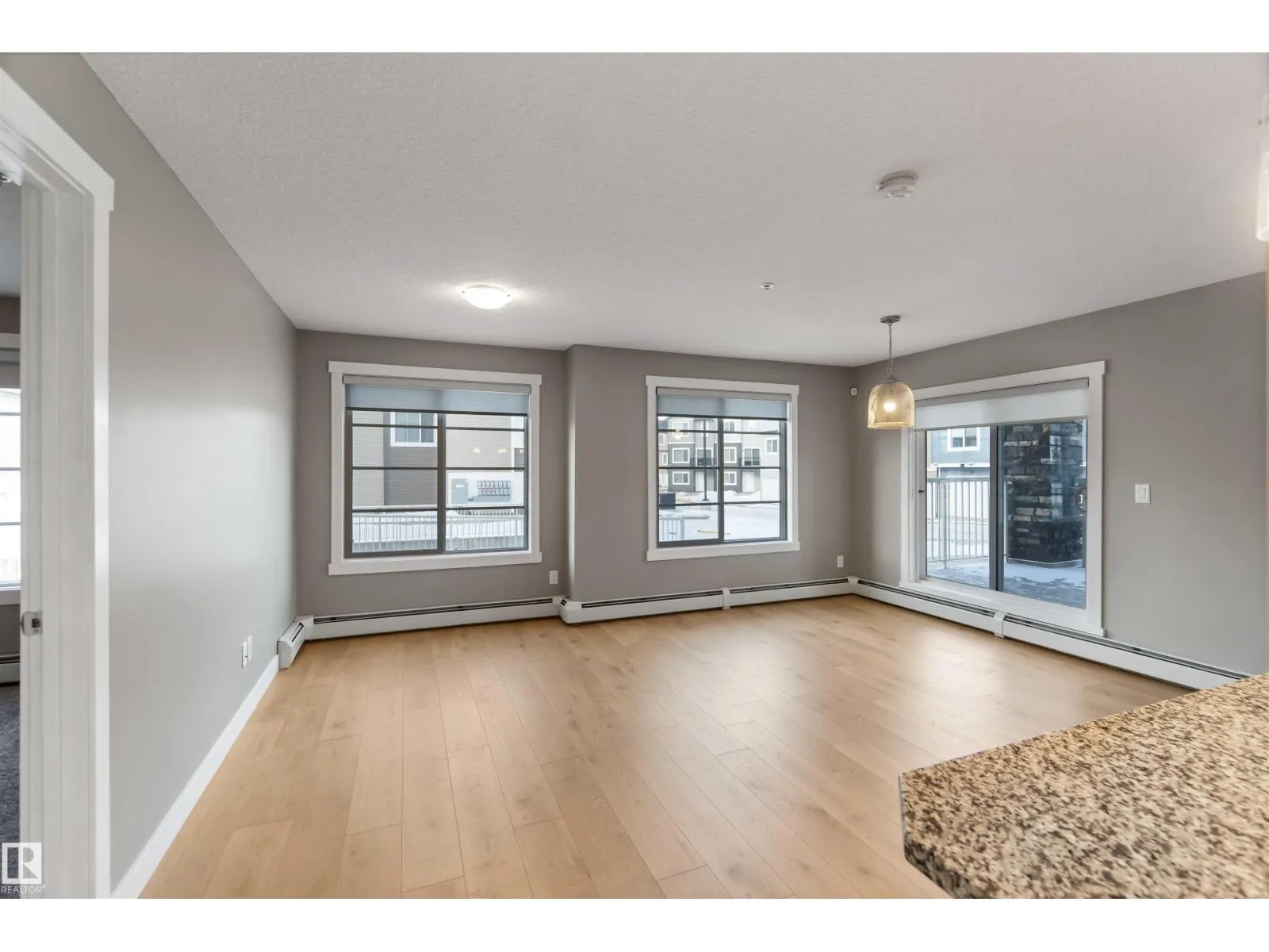 Welcome to Savida in Clareview Town Centreâa beautifully maintained corner unit condo offering comfort, style, and unbeatable convenience. This immaculate 2 bedroom, 2 bathroom home features a bright white kitchen paired with warm oak-toned flooring, creating a modern yet inviting space. The spacious primary bedroom includes a large walk-through closet leading to a private ensuite, while the thoughtful layout provides excellent separation between bedroomsâideal for roommates or guests. Enjoy the perks of a ground-level, oversized balcony, perfect for relaxing or entertaining, with easy outdoor access. Located steps from major shopping centres, Clareview Recreation Centre, and the LRT, this is urban living at its best. Whether youâre a first-time home buyer, downsizer, or investor, this unit checks all the boxes and offers strong rental income potential. A move-in-ready opportunity in a prime locationâdonât miss it. ***Some pictures are virtually staged *** (id:27476)