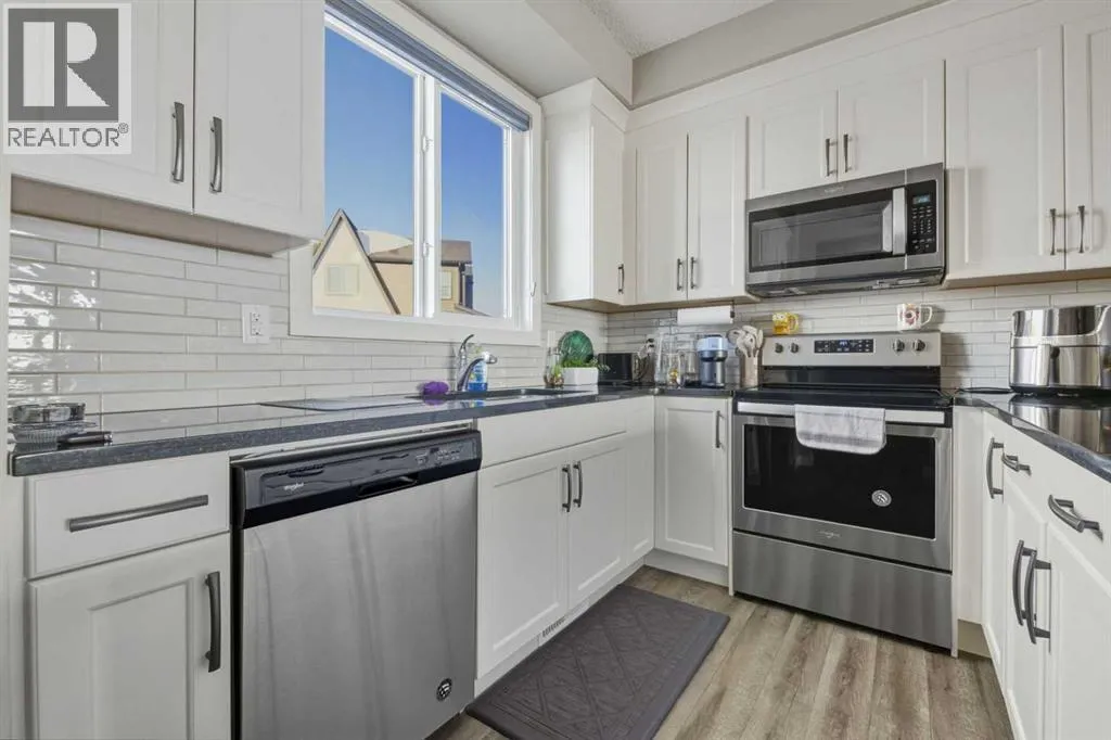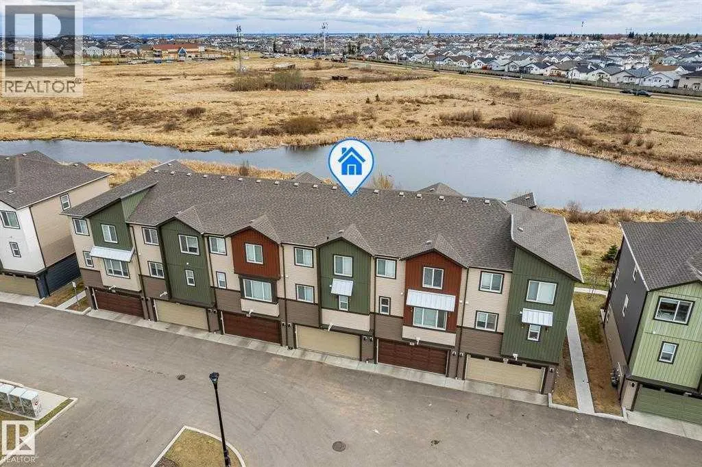 Welcome to Schonsee, a family-oriented residential community in northeast Edmonton, Alberta, located within the Cityâs Lake District. Itâs known for its modern homes, green spaces, and peaceful suburban feel, making it popular with families, professionals, and people looking for a quieter lifestyle with good access to amenities. Here's a rare gem of a WALK-OUT, fully developed townhome where quality meets comfort and functionality. Enjoy stunning views of the beautiful pond from your private balcony. The main floor boasts a dream gourmet kitchen with quartz countertops, ample cabinetry, and a convenient half bath, perfect for everyday living and entertaining. This well-kept home features a spacious master bedroom with a private ensuite, along with two additional generously sized bedrooms and a full bathroom. There is also a large ground-level flex room with direct access to the double attached garage, offering plenty of storage, large windows for abundant of natural lights. Modern finishes throughout. The layout is highly functional, set in an unbeatable, quiet location close to major routes and amenities. Book your private viewings today! (id:27476)