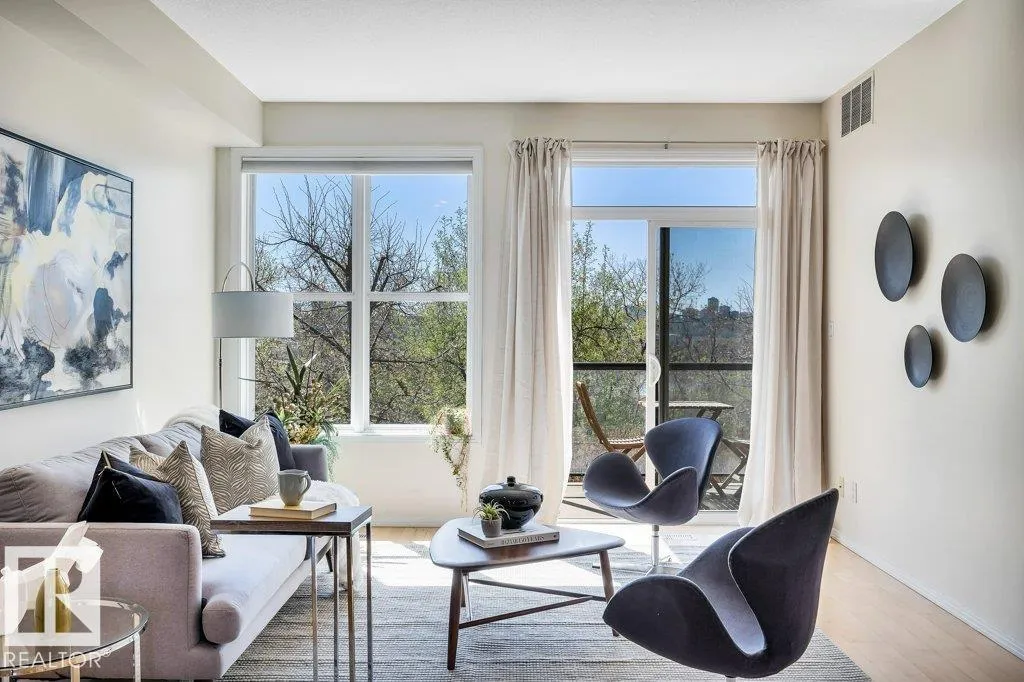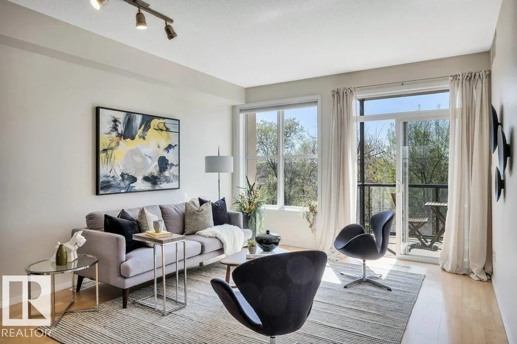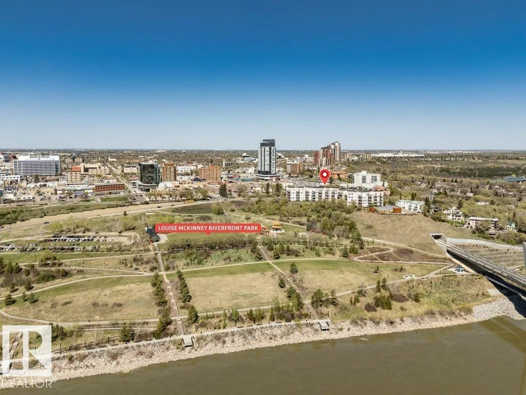 Living at The View offers the perfect balance between river valley tranquility and downtown convenience. Enjoy River Valley and Tawatina Bridge views from your private balcony, with direct access to Edmontonâs trail systemâideal for cycling, walking, and an active lifestyle. Bike downtown in minutes or walk to cafés, bakeries, restaurants, and local amenities. This bright, move-in-ready 2-bedroom, 1-bath unit features hardwood floors and original kitchen in the main living areas, soft carpeting in the bedrooms, central A/C, in-suite laundry, titled underground parking, and a private storage cage. Low condo fees and utilities make this an excellent option for both homeowners and investors seeking a walkable, high-demand downtown location. (id:27476)