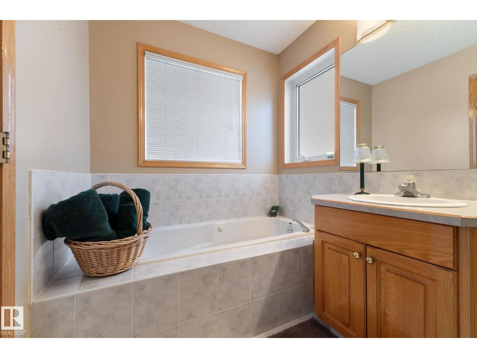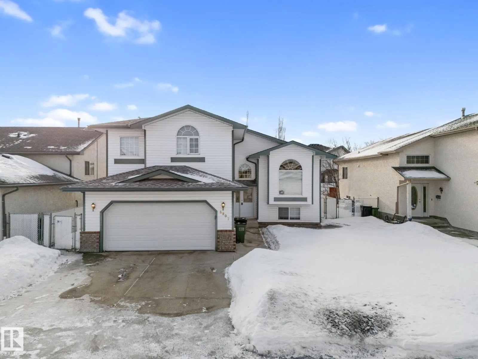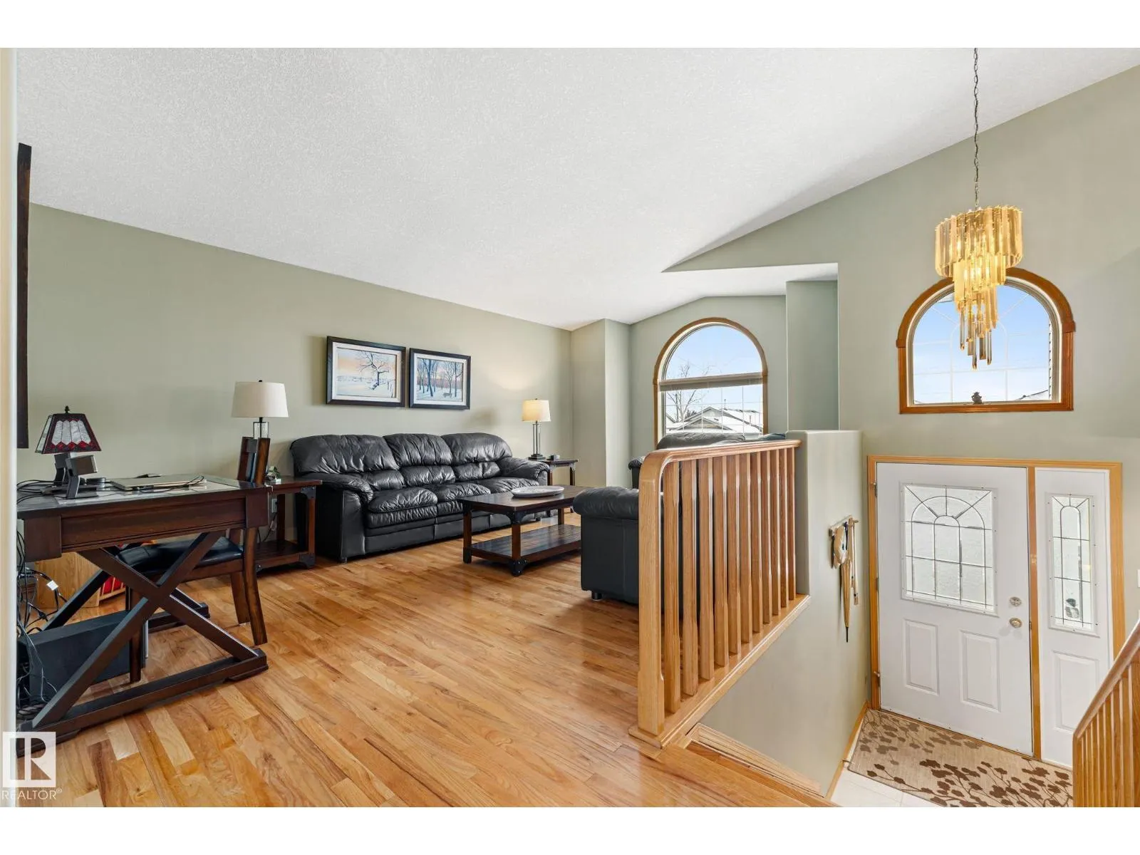 White Eagle CUSTOM Built Bi-level in Ozerna! Located on a QUIET street, it has great curb appeal w/ Upgraded Shingles & Brick accents. The inside is IMMACULATE! A TILED ENTRY greets you, w/ HARDWOOD stringers leading to the living room w/ a half VAULT; the main has gleaming HARDWOOD & TILE. Cook in the large ISLAND KITCHEN w/ an EAT IN NOOK, corner PANTRY, & large DINING ROOM w/ access to the sizeable DECK, perfect for morning coffee or BBQ's. Around the corner are 2 bedrooms w/ a full bath. Up the stairs is the Primary w/ a VAULTED CEILING, walk-in & a 5 piece ensuite. Down in the FULLY FINISHED BASEMENT! Complete with a REC ROOM w/ room for a games section, a spacious bedroom, STORAGE area under the stairs & a large laundry room. Bonus: Keep COOL in the Summer w/ CENTRAL A/C! Park in the finished DOUBLE ATTACHED garage. Play in the FULLY FENCED yard. Trails, Parks, Shopping & a great School is all walking distance away. Located in one of the best communities in the North Side. You'll LOVE this place! (id:27476)