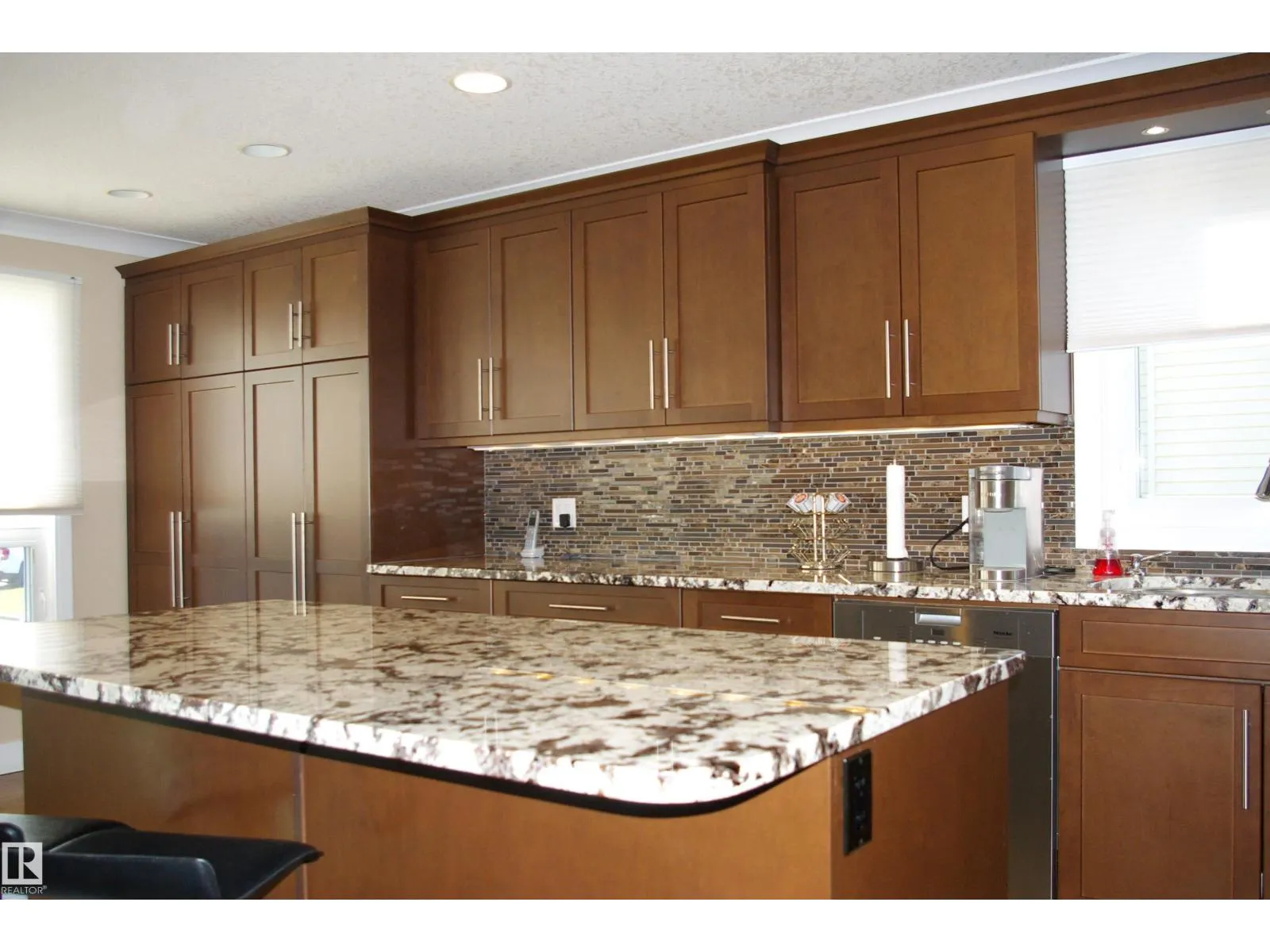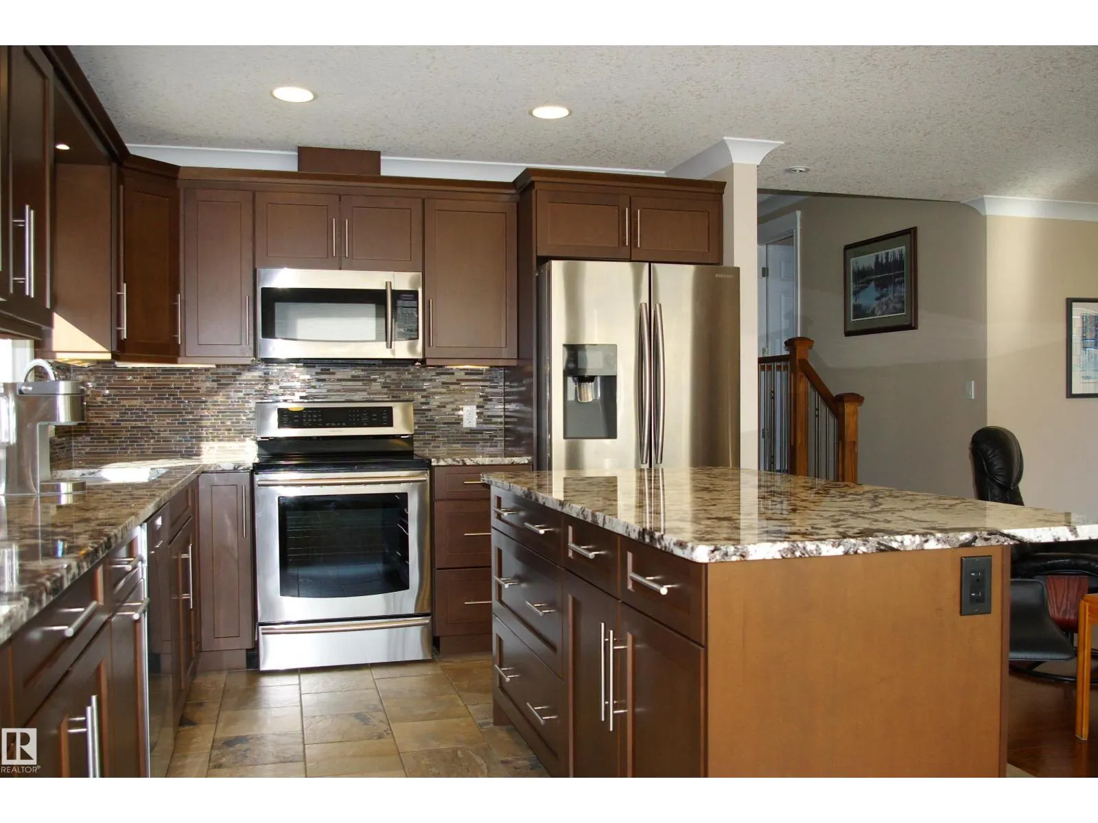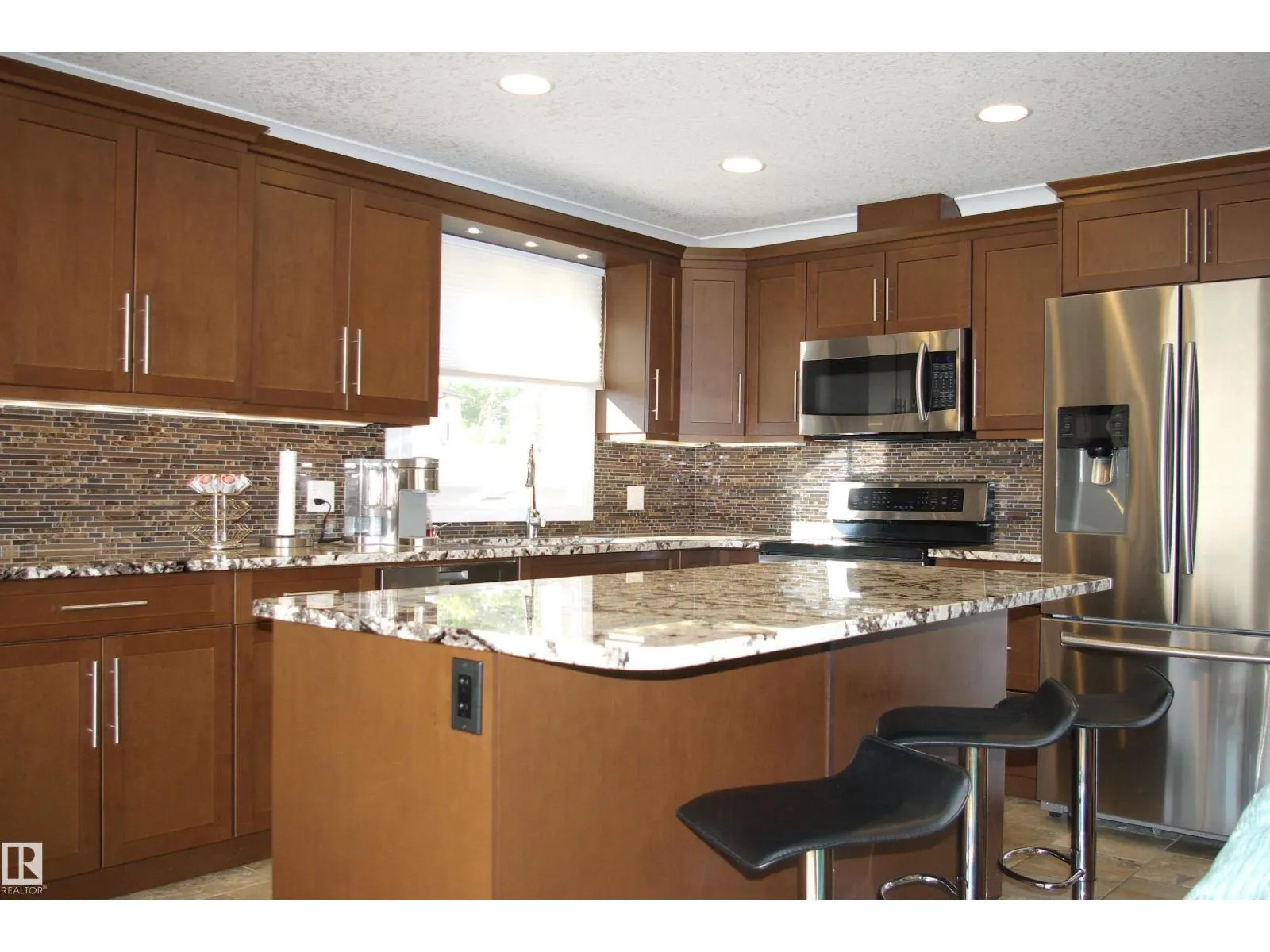 What a find! Tucked away in a cul-de-sac, just steps away from the park, this remodeled sleeper sits. Walk in to the inviting fower, and prepare to be impressed. The main floor is one giant room, with windows across the front. Living room features recessed lighting and built-in surround sound, endineered hardwood floors. The island kitchen is wide open, with plenty of rich wood cabinetry, granite countertops and stainless steel appliances. Up the stairway, there's 3 large bedrooms, the primary faces West with ample closets and a 3-piece ensuite. The renovated 4-piece main bath is gorgeous as well. The back foyer leads out to the deck and backyard. The third level is all Family Room, end-to-end, and features a woodburning fireplace. The basement is as finished as it can be, with a den, large laundry room and a 2-piece bath. The backyard faces Southwest and is fully fenced. Large double garage just off the back lane. Spotless and meticulously maintained, pride of ownership. (id:27476)