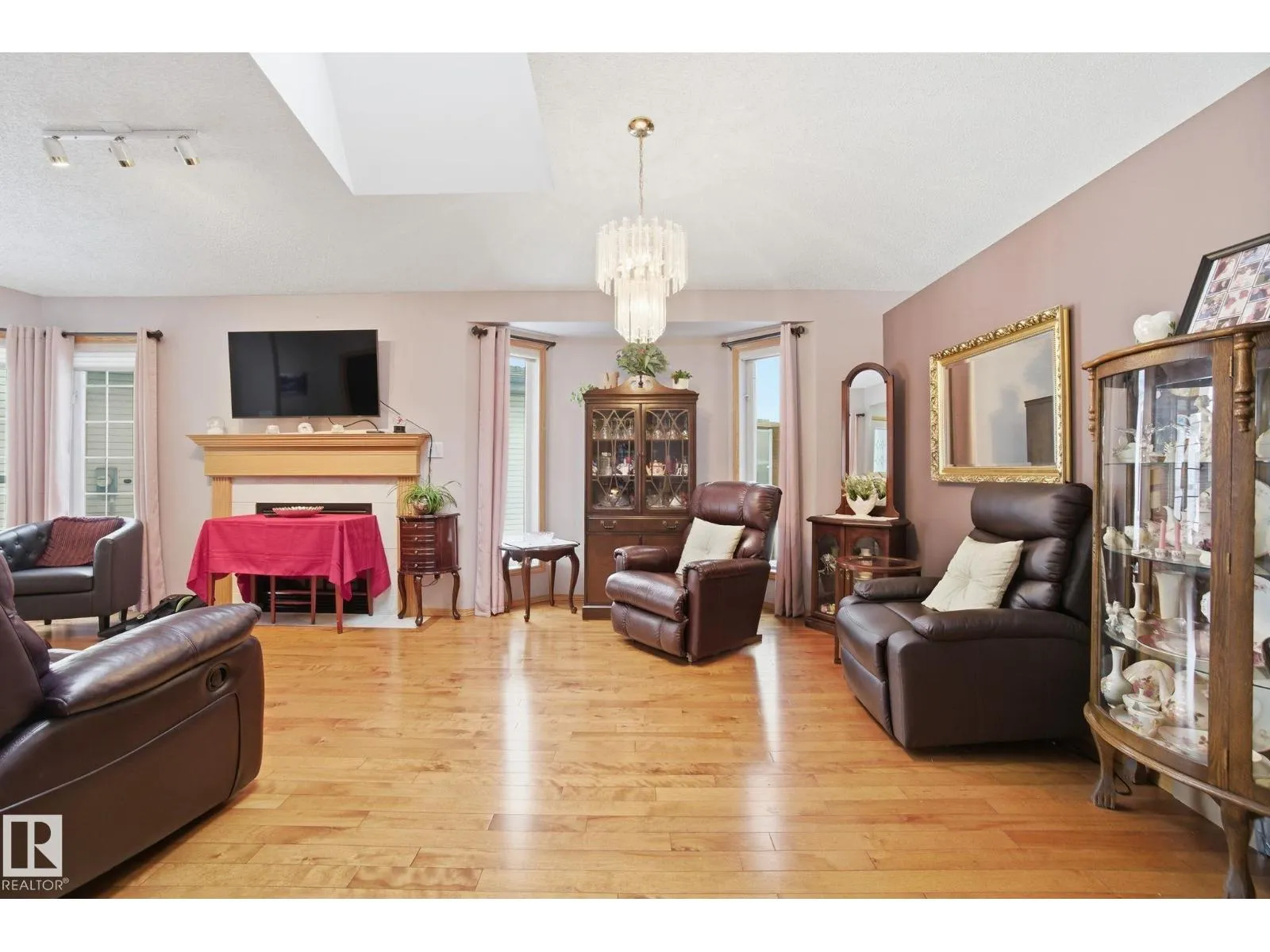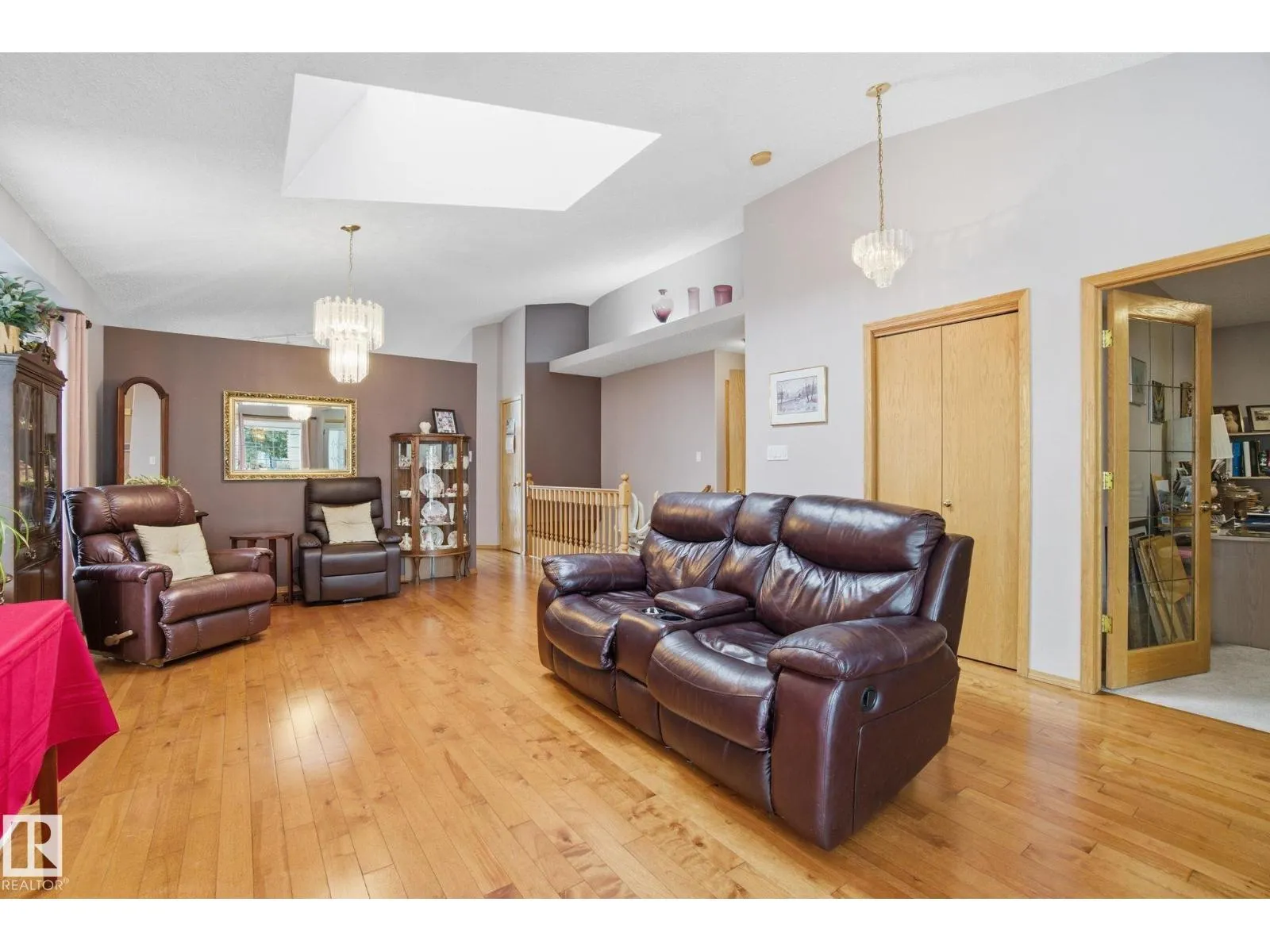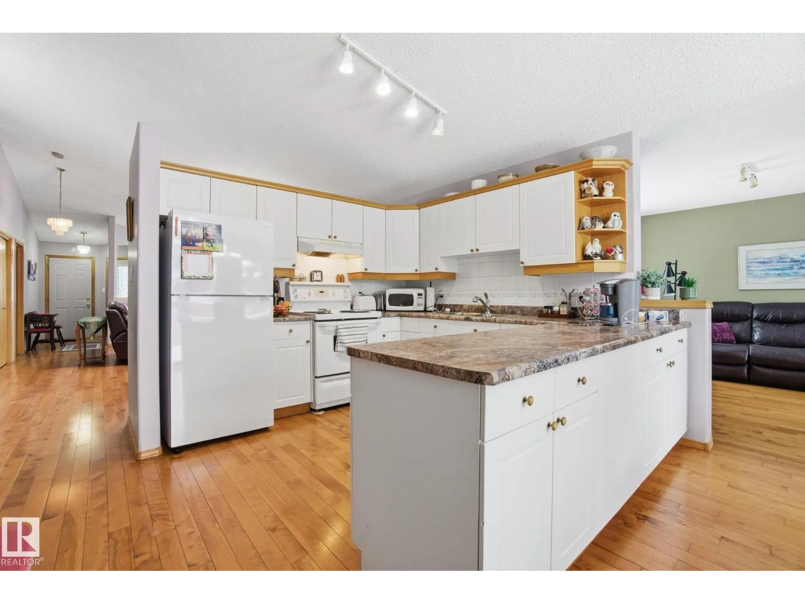 Located in Terra Losa East, an 18+ complex, this meticulously maintained original-owner home sits on the largest pie-shaped lot in the complex. Recent upgrades include a newer roof, maintenance-free front and back decks, plus a newer furnace & A/C. The dble attached garage is equipped with a wheelchair lift for added accessibility. Step into a bright, spacious layout featuring a front living room with gleaming hardwood floors & a gas fireplace. Just off the entrance is a versatile den/bedroom/flex space. At the rear of the home, the U-shaped kitchen offers a generous breakfast bar and flows into the adjoining dining area with sliding patio doors to the deck. A cozy family room tucked into the back corner features a second gas fireplace and overlooks the backyard. The spacious primary suite easily fits a king-size bedroom set and includes a 3-piece ensuite, while the main bath features a convenient step-in tub.The fully finished basement offers a massive rec room, lg bdrm, 3-pc bthrm & ample storage space. (id:27476)