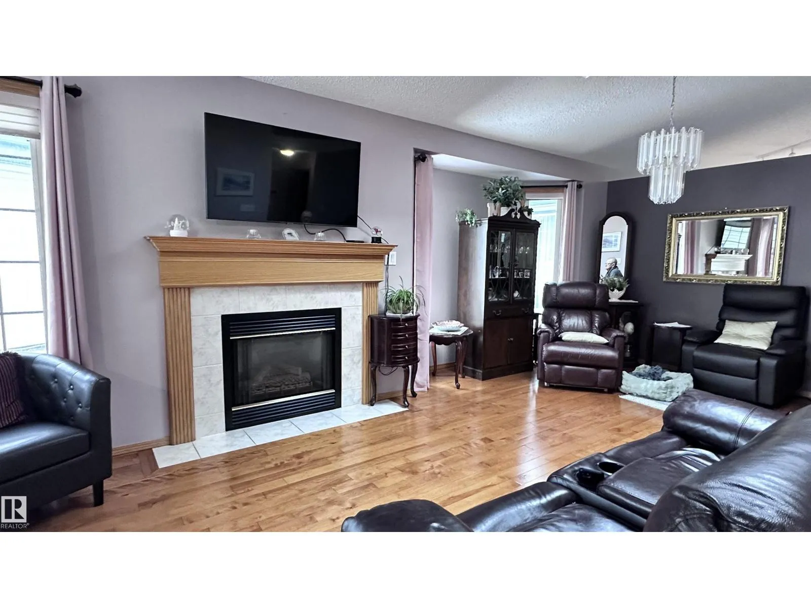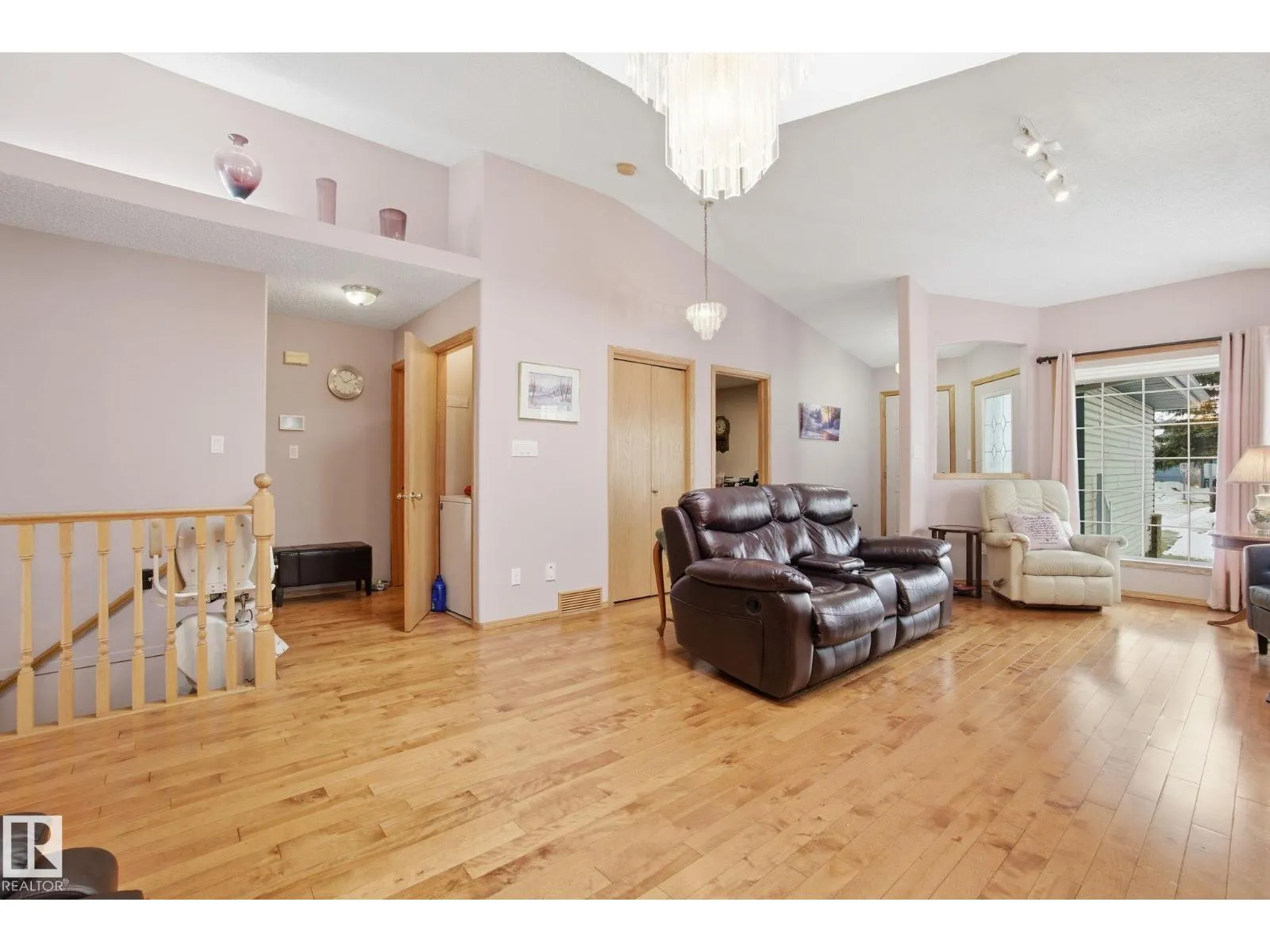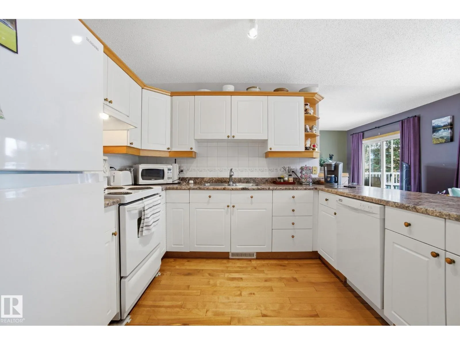 Located in Terra Losa East, an 18+ complex, this meticulously maintained original-owner home sits on the largest pie-shaped lot in the complex. Recent upgrades include a newer roof, maintenance-free front and back decks, plus a newer furnace & A/C. The dble attached garage is equipped with a wheelchair lift for added accessibility. Step into a bright, spacious layout featuring a front living room with gleaming hardwood floors & a gas fireplace. Just off the entrance is a versatile den/bedroom/flex space. At the rear of the home, the U-shaped kitchen offers a generous breakfast bar and flows into the adjoining dining area with sliding patio doors to the deck. A cozy family room tucked into the back corner features a second gas fireplace and overlooks the backyard. The spacious primary suite easily fits a king-size bedroom set and includes a 3-piece ensuite, while the main bath features a convenient step-in tub.The fully finished basement offers a massive rec room, lg bdrm, 3-pc bthrm & ample storage space. (id:27476)