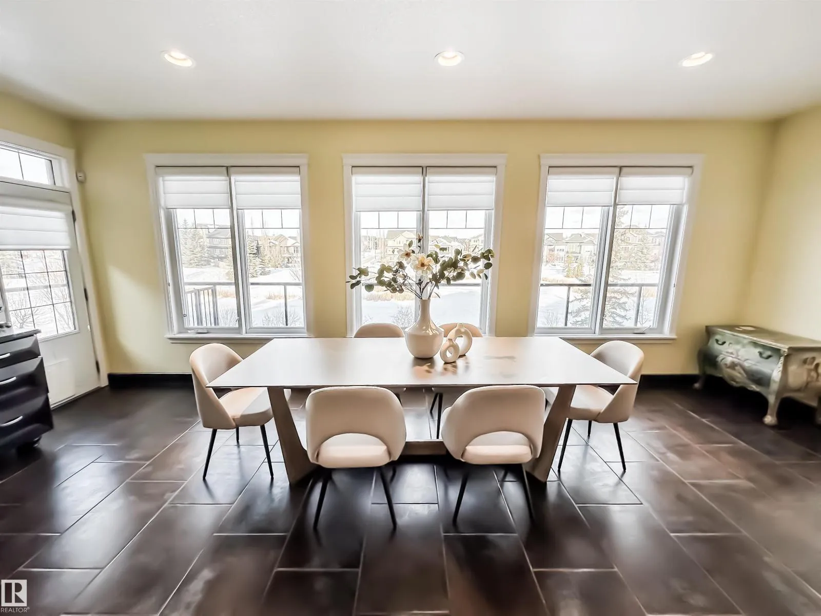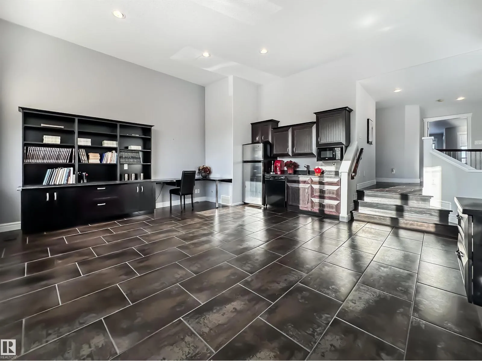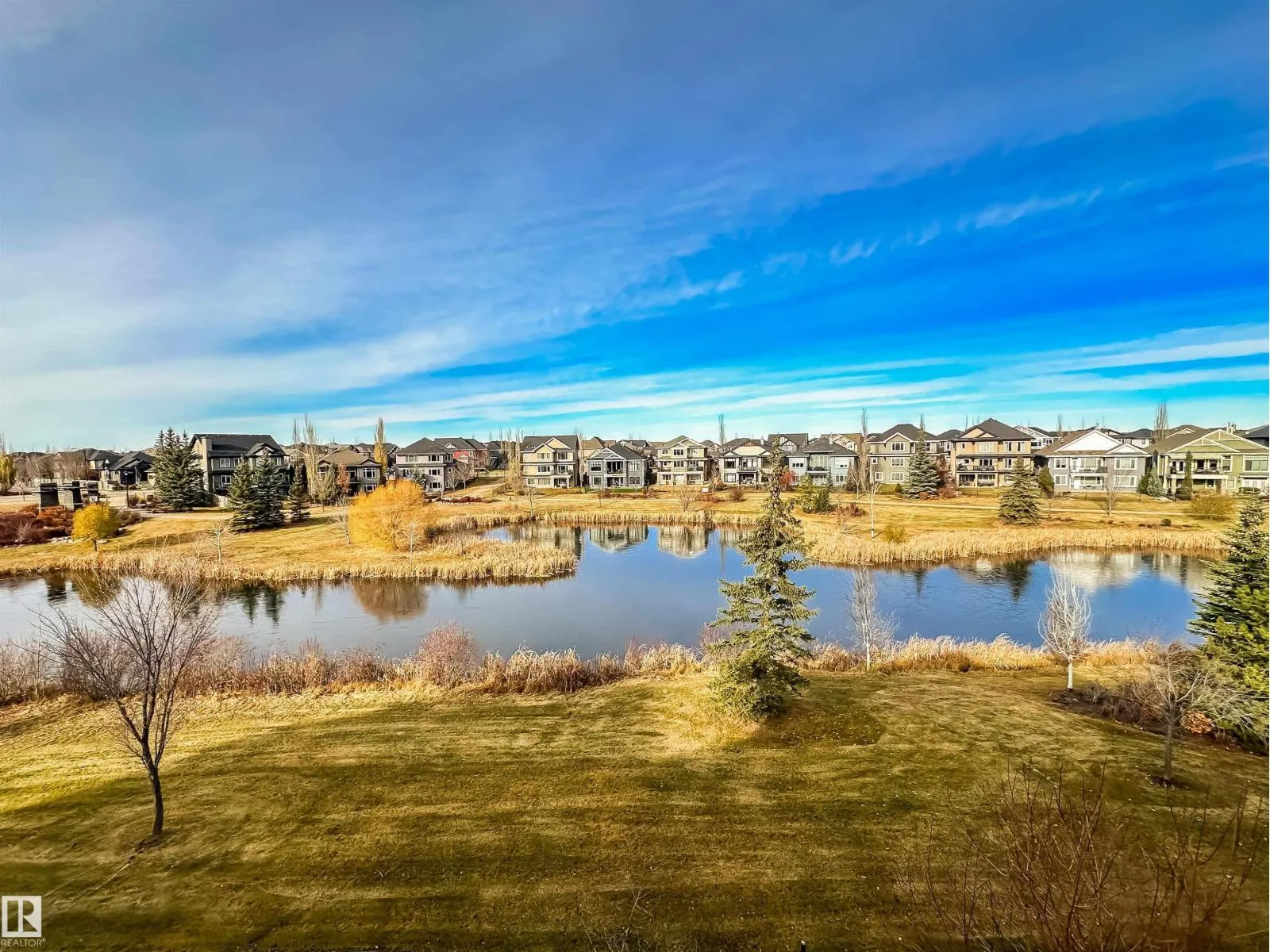 POND VIEWS, WALKOUT BASEMENT, TRIPLE GARAGE! Backing directly onto the pond, this impressive 3,346 sqft, walk-out two-storey offers exceptional space, privacy, & flexibility for modern living. The main floor features stunning lake views, a beautiful living room with fireplace, designer kitchen with double islands & dual sinks, massive walk-in pantry, in-floor heating, & an elegant dining area ideal for hosting family & friends. Upstairs, enjoy a spacious bonus room with wet bar, a luxurious primary retreat with private balcony, luxurious 5-piece ensuite, huge walk-in closet, plus two additional bedrooms, full bath, and laundry. The walkout basement is full of opportunity, finished with in-floor heated epoxy flooring, a large bedroom, full bath with steam shower, living area with kitchenette, & versatile flex spaces. Low-maintenance landscaping with turf & perennials completes the setting. Walk to the K-6 school, with quick access to shopping, groceries, Currents of Windermere, & the Henday. Welcome home! (id:27476)