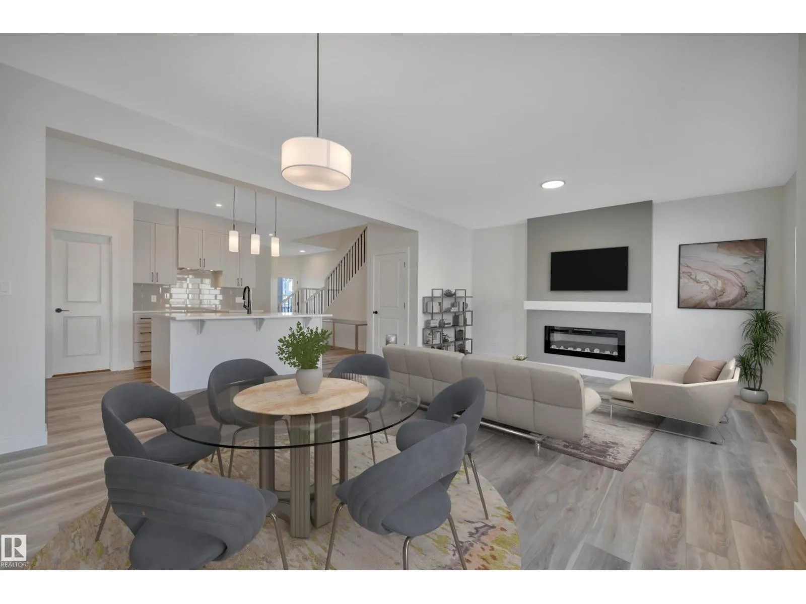 A high-quality home from an extremely reputable Italian builder, San Rufo Homes! This Evan Plan features a contemporary open layout with 9' ceilings main/basement, side entry (future suite dev), adorned with quartz counters, premium vinyl plank flooring & designer lighting throughout. Main floor welcomes you with large & airy foyer, main floor office leading to a chef-inspired kitchen equipped with high-end cabinets, spacious eat-up island, & walkthrough pantry that connects to the garage. The dining space, complete with patio doors, seamlessly flows into the chic living rm with stylish fireplace, along with 2-piece bath & handy mudroom. Ascend to the upper level, where vaulted ceilings create an expansive atmosphere, housing a massive bonus rm, family bathroom, & 3 bedrms, including a primary suite with an expansive walk-in closet & ensuite featuring dual sinks, tub, & glass shower. Upstairs also has handy laundry room. Home has 200AMP electrical for future EV/AC demands. Close to Lewis Farms Rec Center! (id:27476)