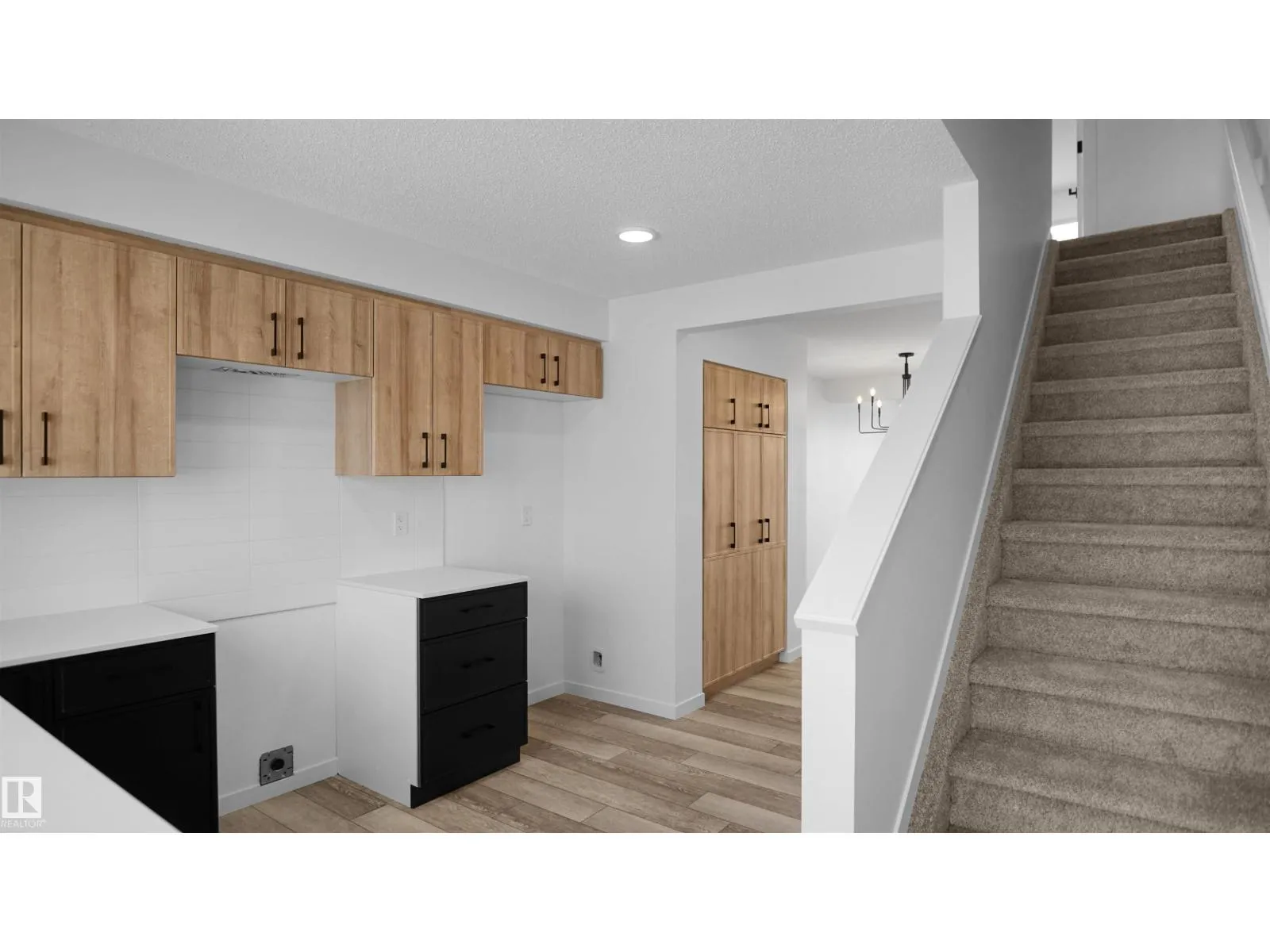 NO CONDO FEES and AMAZING VALUE! You read that right welcome to this brand new townhouse unit the âDemi Built by StreetSide Developments and is located in one of Edmonton's newest premier North West communities of Kinglet Gardens. With almost 1100 square Feet, it comes with front yard landscaping and a single over sized attached garage, this opportunity is perfect for a young family or young couple. Your main floor is complete with upgrade luxury Vinyl Plank flooring throughout the great room and the kitchen. The main entrance/ main floor has a large sized foyer with a 2 piece bathroom. Highlighted in your new kitchen are upgraded cabinets, upgraded counter tops and a tile back splash. The upper level has 2 bedrooms and 2 full bathrooms. *** This home is under construction and the photos used are from a recently built home and colors may vary will be complete by next week *** (id:27476)