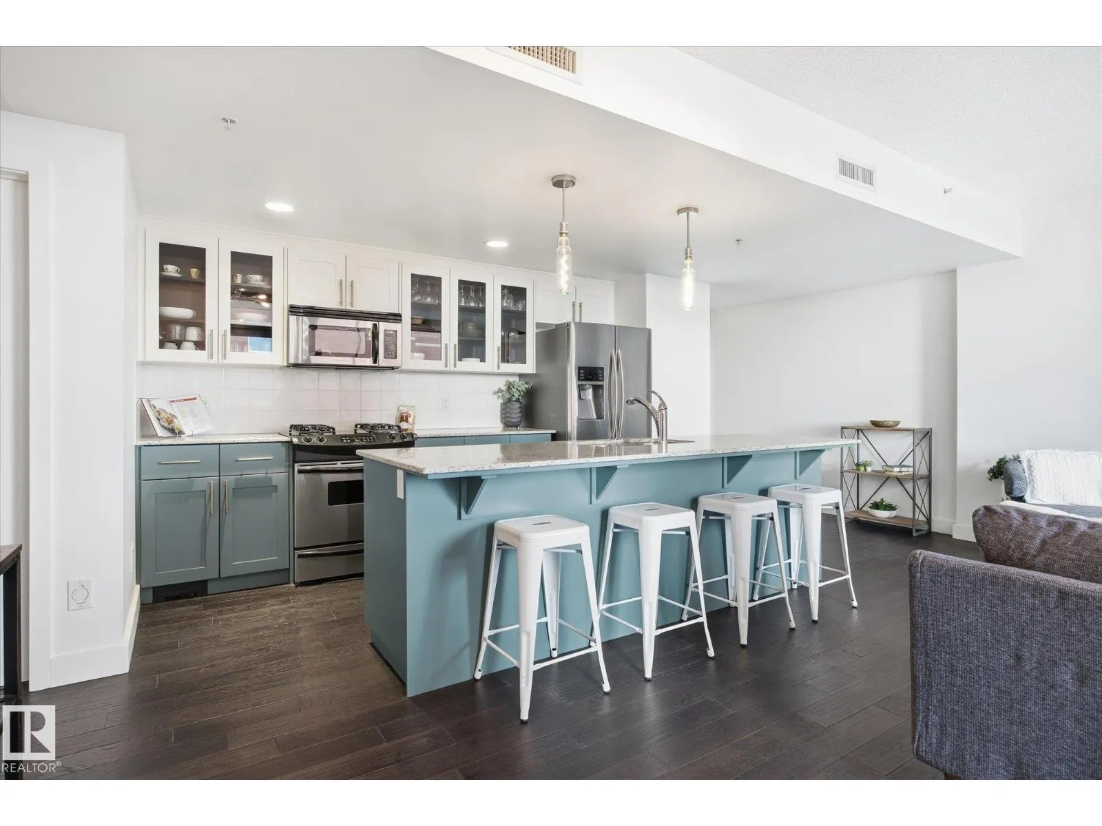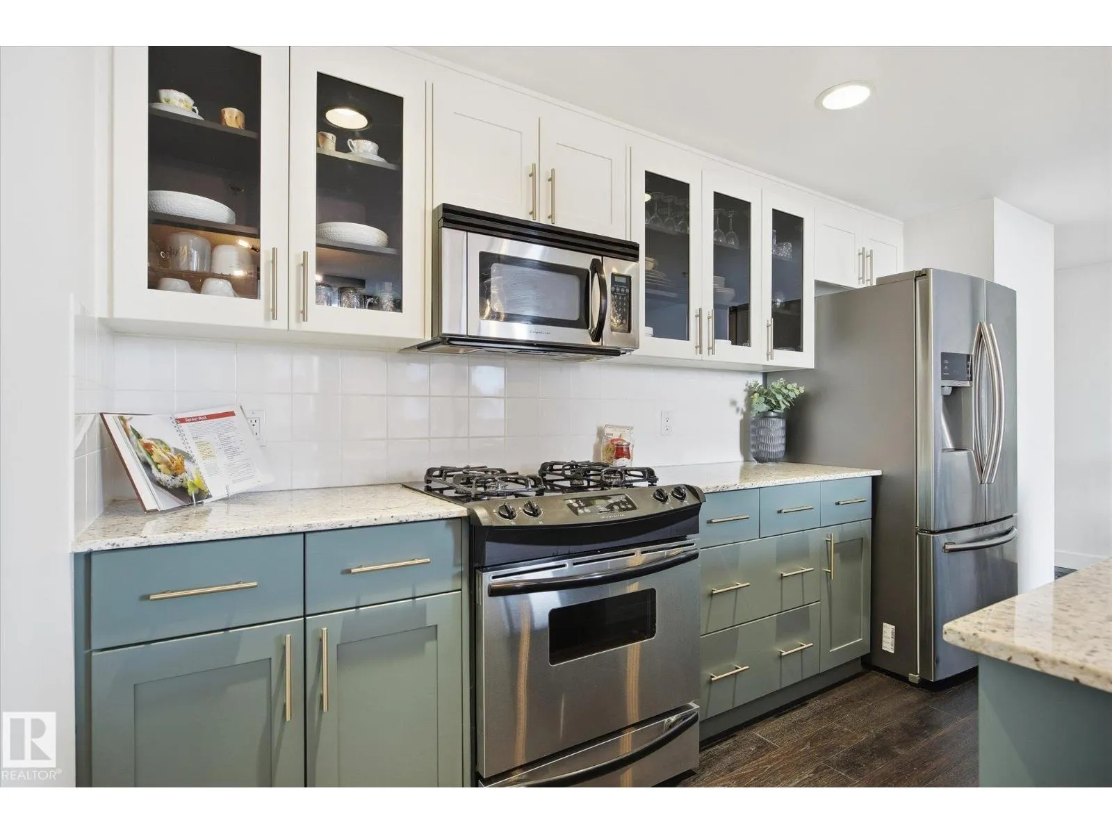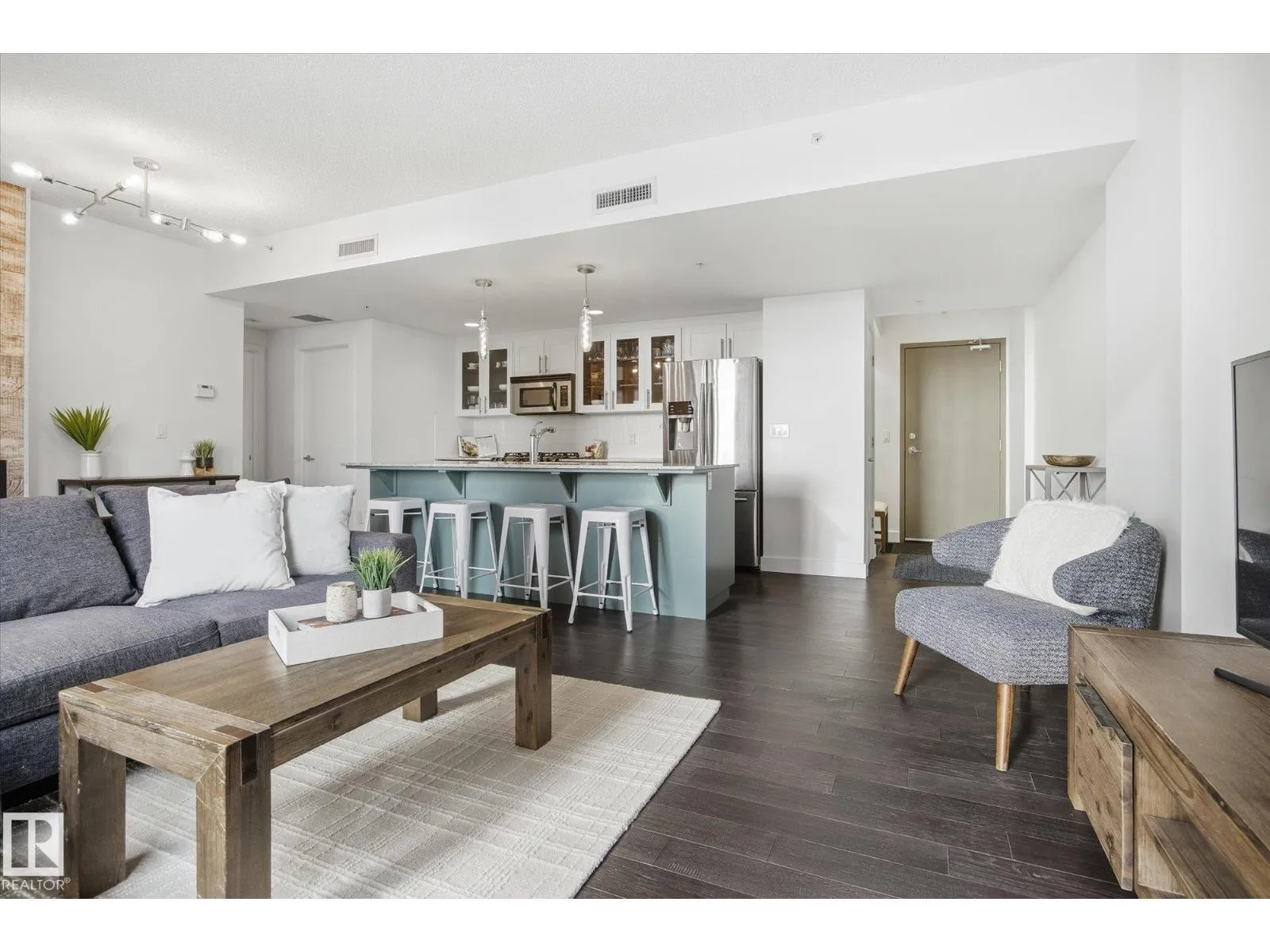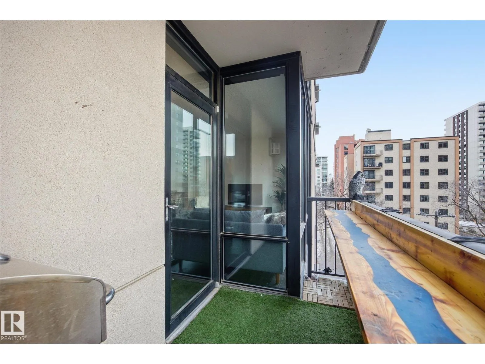 This stunning condo offers a bright and spacious living room featuring floor-to-ceiling windows and a cozy fireplaceâperfect for relaxing. The renovated modern kitchen is both stylish and functional, with an island for extra prep space and warm pops of color in the BRAND NEW cabinetry. The bedroom also includes its own fireplace, creating a comfortable and inviting retreat. The bathroom features a luxurious soaker tub. Step outside to enjoy your private balcony. Located just steps from tons of restaurants, shopping, and entertainment. Includes one stall in a heated garage. A perfect blend of comfort, style, and convenience! (id:27476)