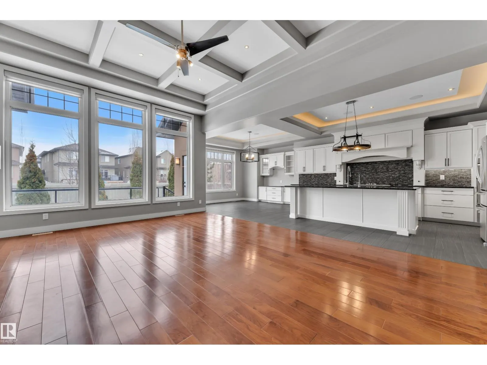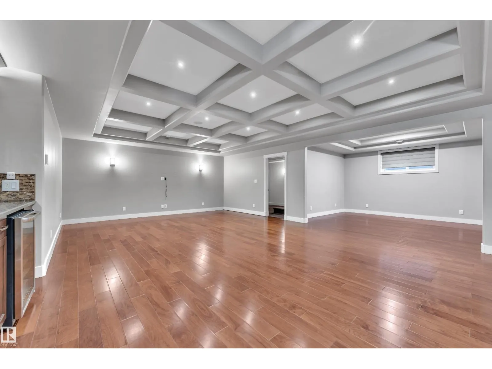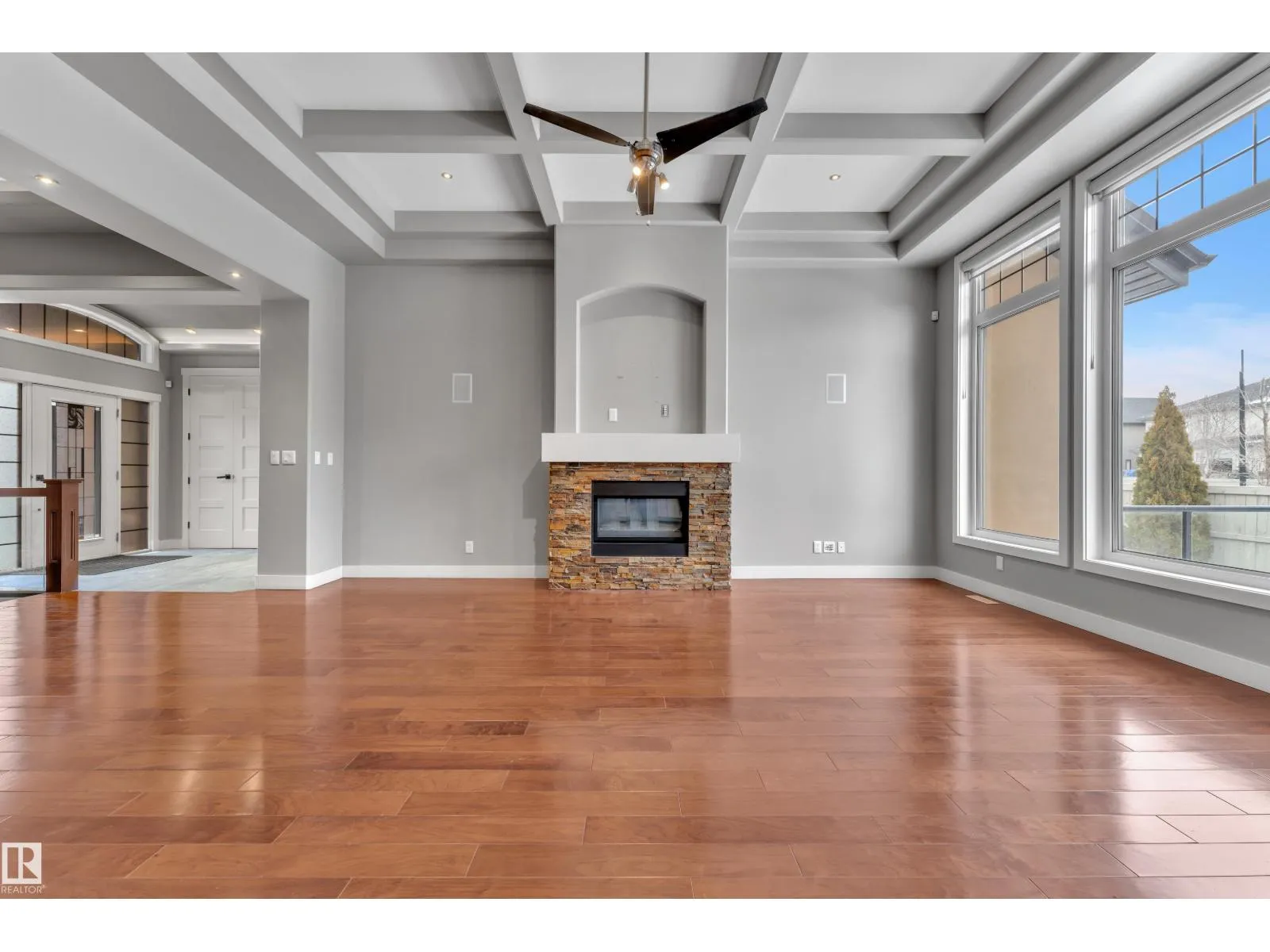 This beautifully maintained home offers 4 BEDROOMS and 3 FULL BATHROOMS with a bright, open-concept main floor featuring coffered ceilings, large windows, and a gas fireplace. The chefâs kitchen includes granite countertops, gas cooktop, walk-through pantry, and ample cabinetry, flowing into the dining area. The main floor also offers an additional bedroom and full bathroom, ideal for guests or a home office. The primary suite features a walk-in closet and a 5-piece ensuite with IN-FLOOR HEATING. The FULLY FINISHED BASEMENT includes IN-FLOOR HEATED FLOORING, LARGE REC ROOM, WET BAR, FLEX SPACE, and A THEATRE ROOM WITH PROJECTOR and SPEAKERS included, plus TWO BEDROOMS with walk-in closets and a FULL BATH. Built-in speakers throughout, central A/C, and a quiet cul-de-sac location close to schools, parks, golf, and amenities complete this exceptional home. (id:27476)