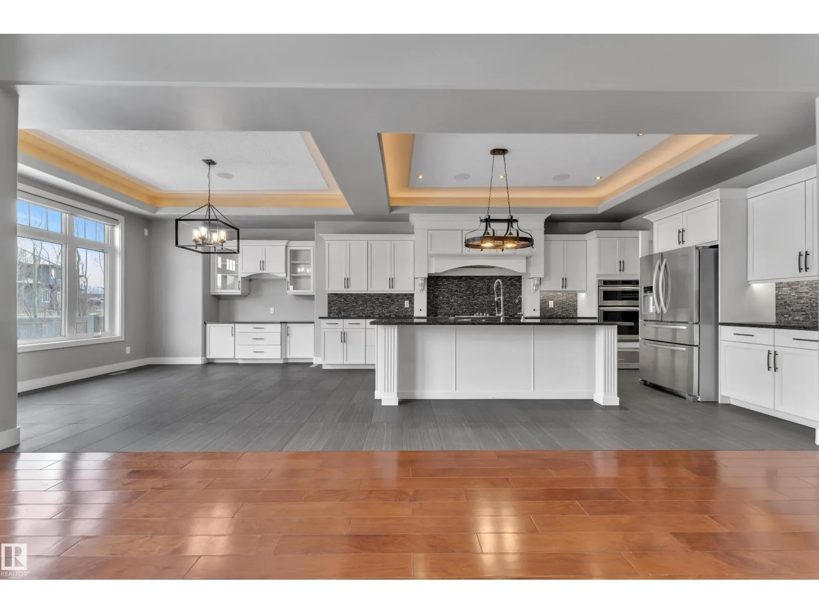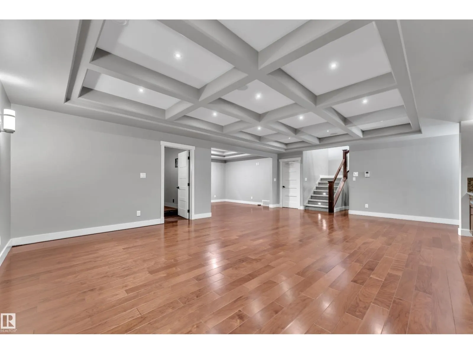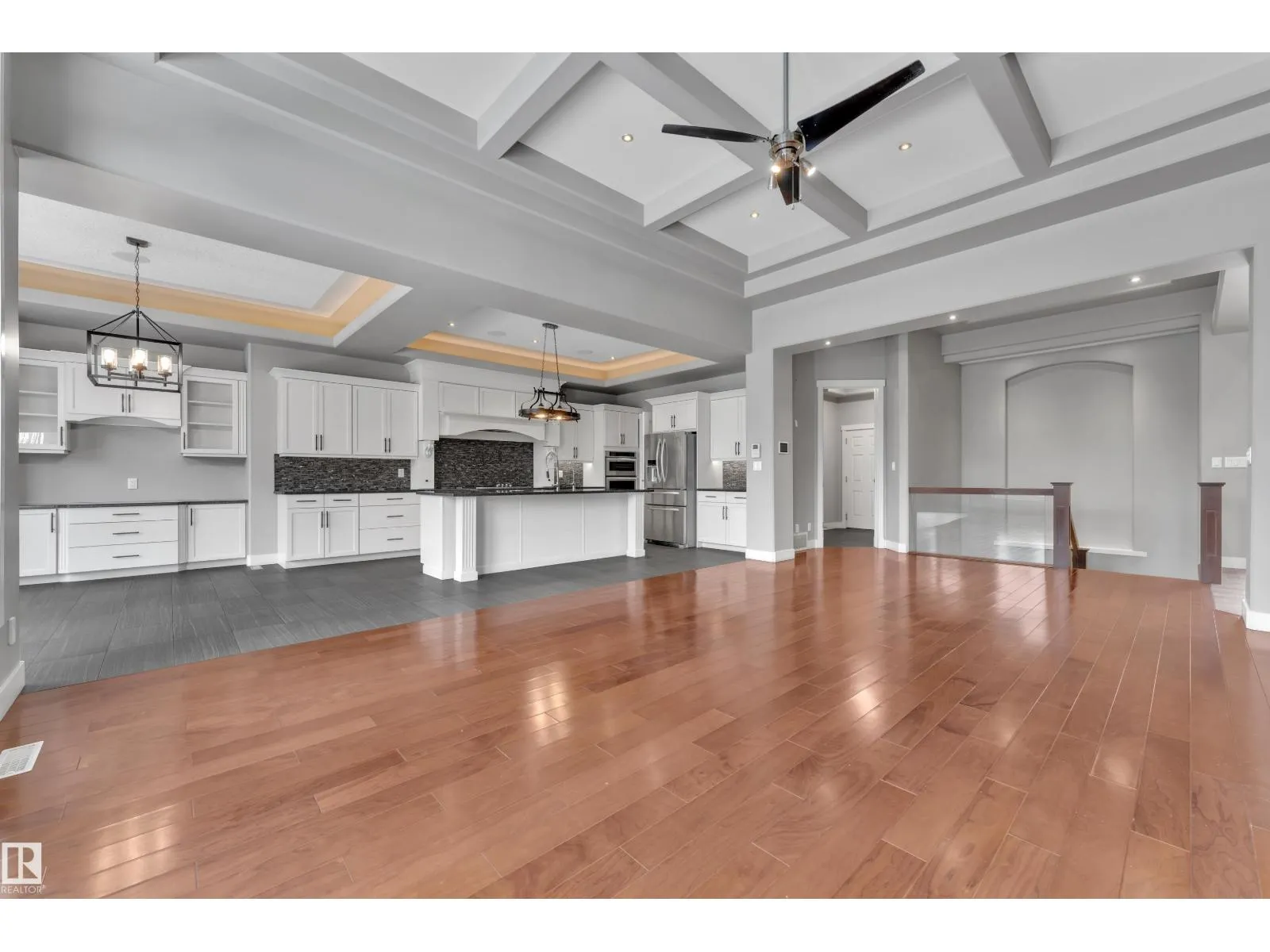 This beautifully maintained home offers 4 BEDROOMS and 3 FULL BATHROOMS with a bright, open-concept main floor featuring coffered ceilings, large windows, and a gas fireplace. The chefâs kitchen includes granite countertops, gas cooktop, walk-through pantry, and ample cabinetry, flowing into the dining area. The main floor also offers an additional bedroom and full bathroom, ideal for guests or a home office. The primary suite features a walk-in closet and a 5-piece ensuite with IN-FLOOR HEATING. The FULLY FINISHED BASEMENT includes IN-FLOOR HEATED FLOORING, LARGE REC ROOM, WET BAR, FLEX SPACE, and A THEATRE ROOM WITH PROJECTOR and SPEAKERS included, plus TWO BEDROOMS with walk-in closets and a FULL BATH. Built-in speakers throughout, central A/C, and a quiet cul-de-sac location close to schools, parks, golf, and amenities complete this exceptional home. (id:27476)
