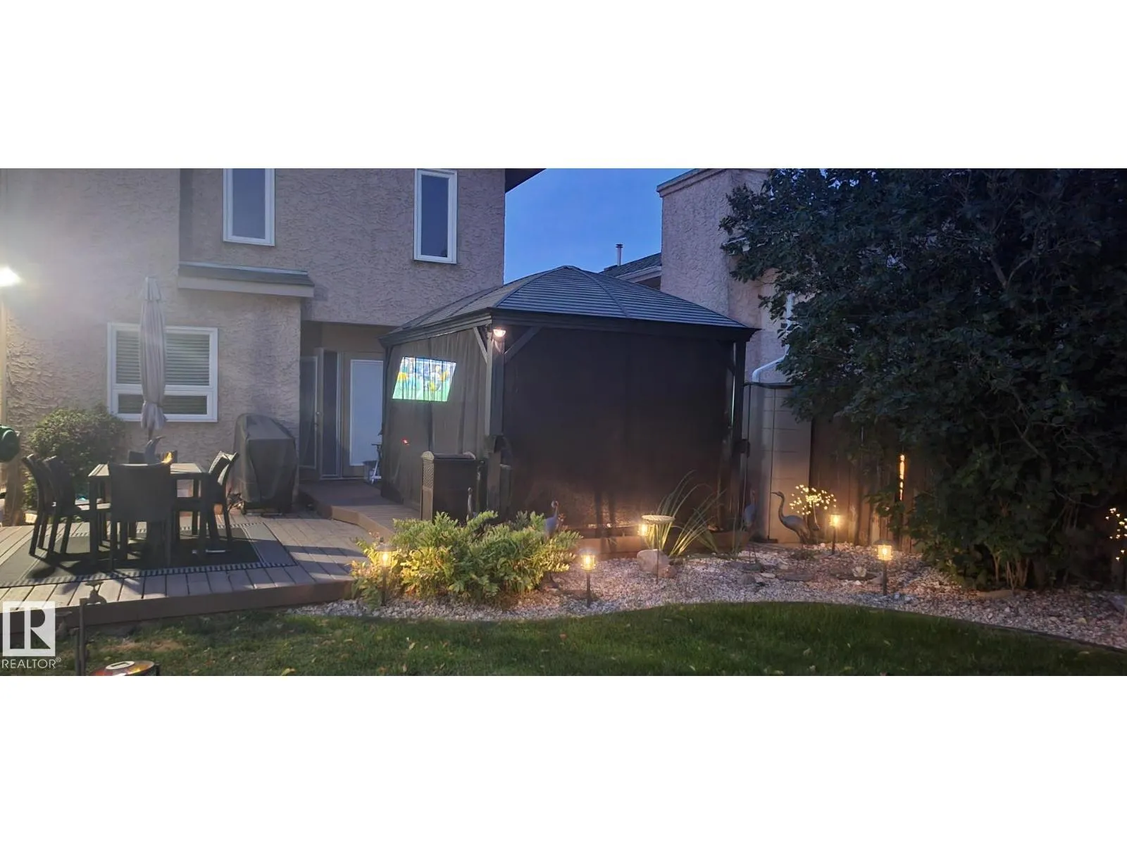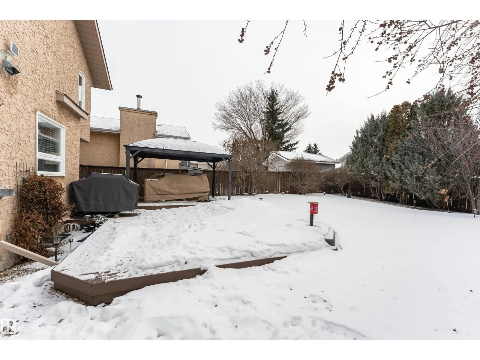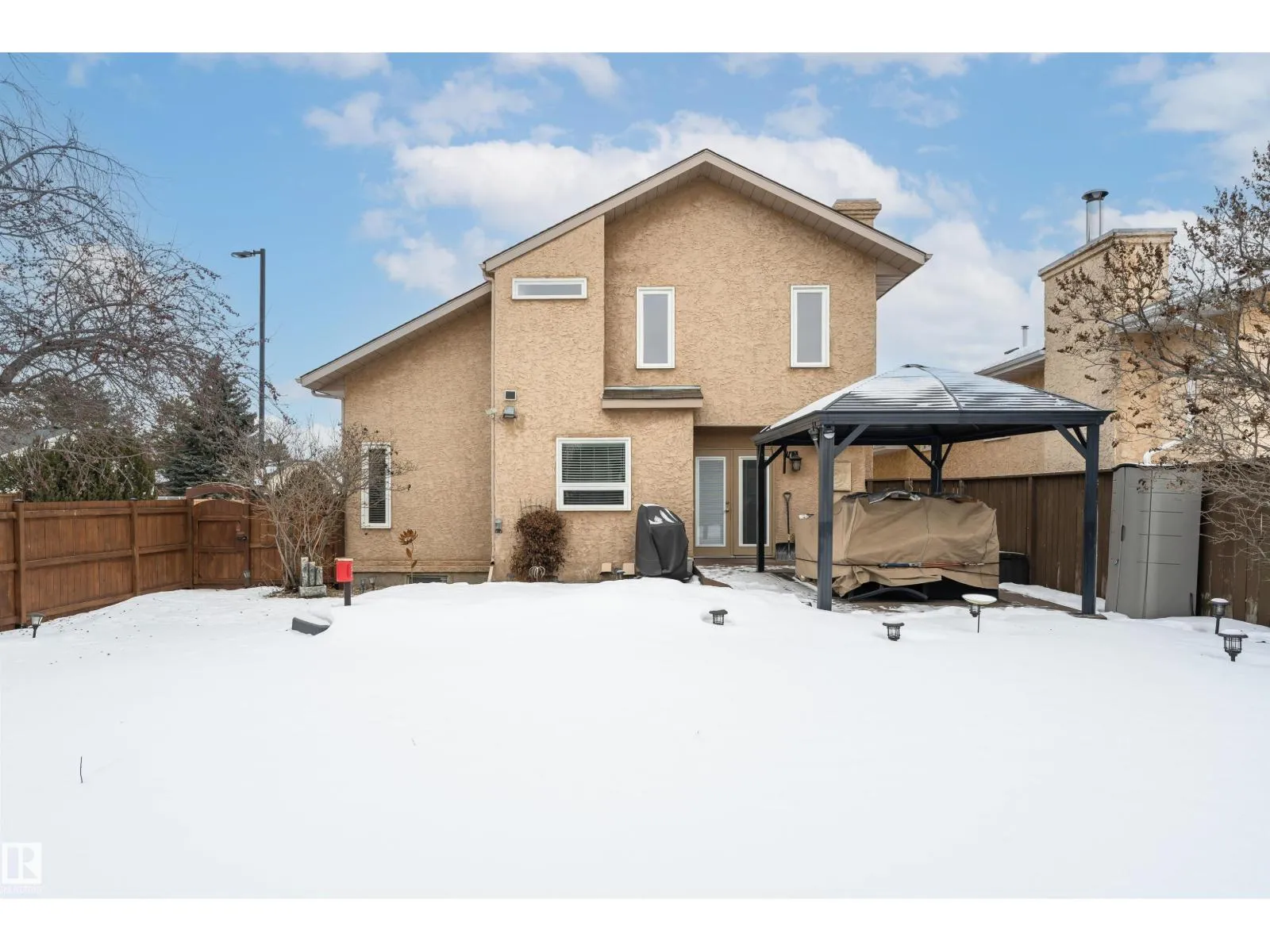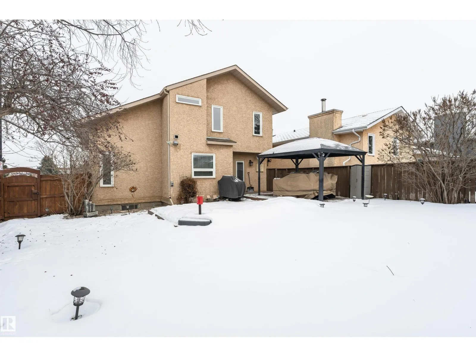Welcome to this 2-storey 5 bed (3 up and 2 down), 4 bath home in Jamieson Place! The main floor offers a living and dining room with soaring vaulted ceilings and laminate flooring throughout. In the kitchen find stainless steel appliances including a gas stove, dinette & breakfast bar that opens onto a cozy family room with a fireplace. The laundry room is conveniently located off the garage. Head upstairs to an open loft area, spacious primary bedroom with walk in closet, and 4-piece ensuite, plus two additional bedrooms connected by a JACK & JILL bath. The basement includes a theatre room with tiered seating, projector, surround sound, wet bar with cabinetry, 3-piece bath, and two bedrooms, one with built-in storage & desk space! Recent updates include a newer fence, vinyl windows, 2025 furnace & A/C. The backyard is set up for entertaining with a steel roof gazebo, shed, hot tub hookup, and natural gas lines for BBQ or fire table. Walking distance to schools and near the Henday and plenty of shopping. (id:27476)