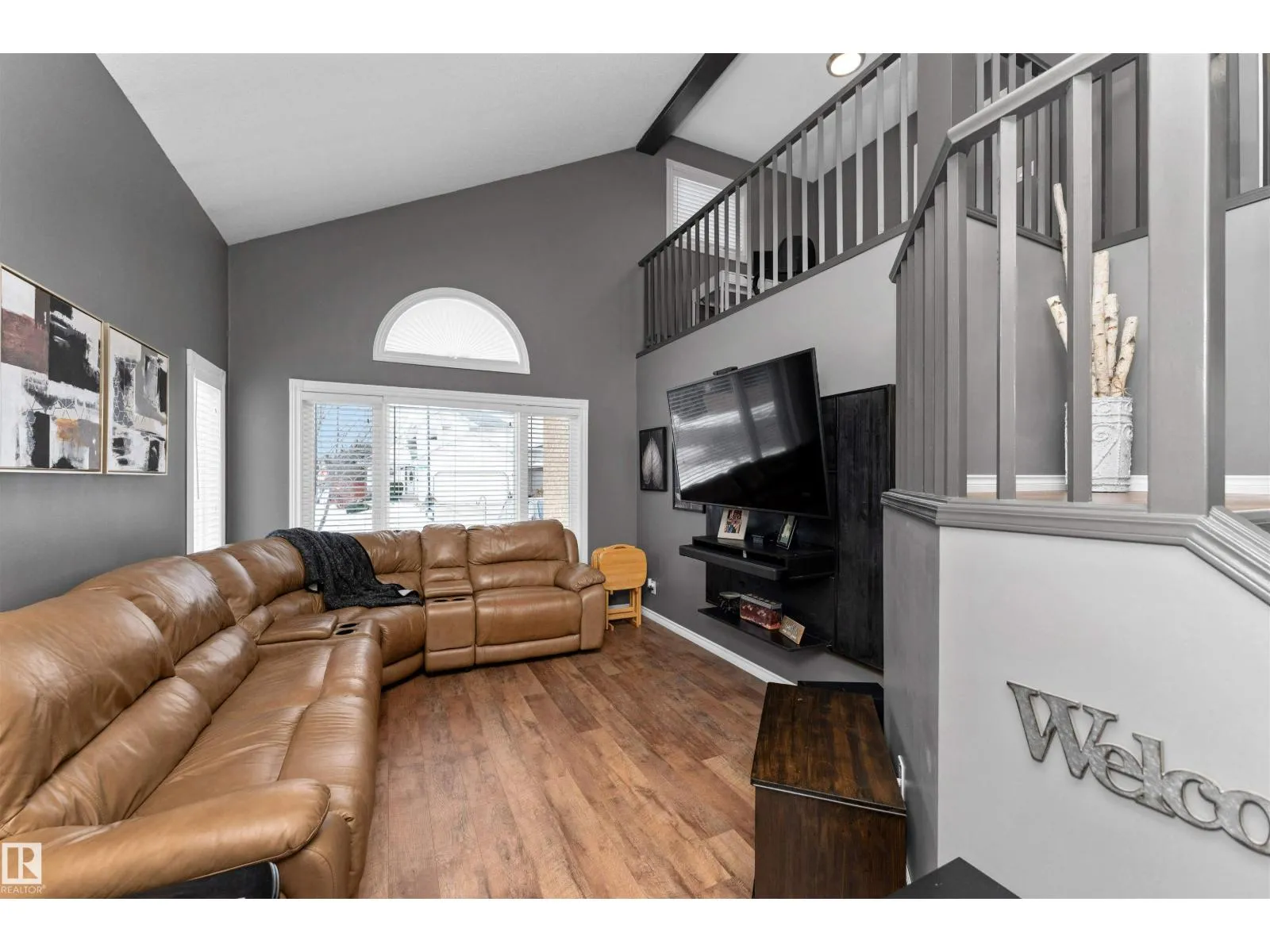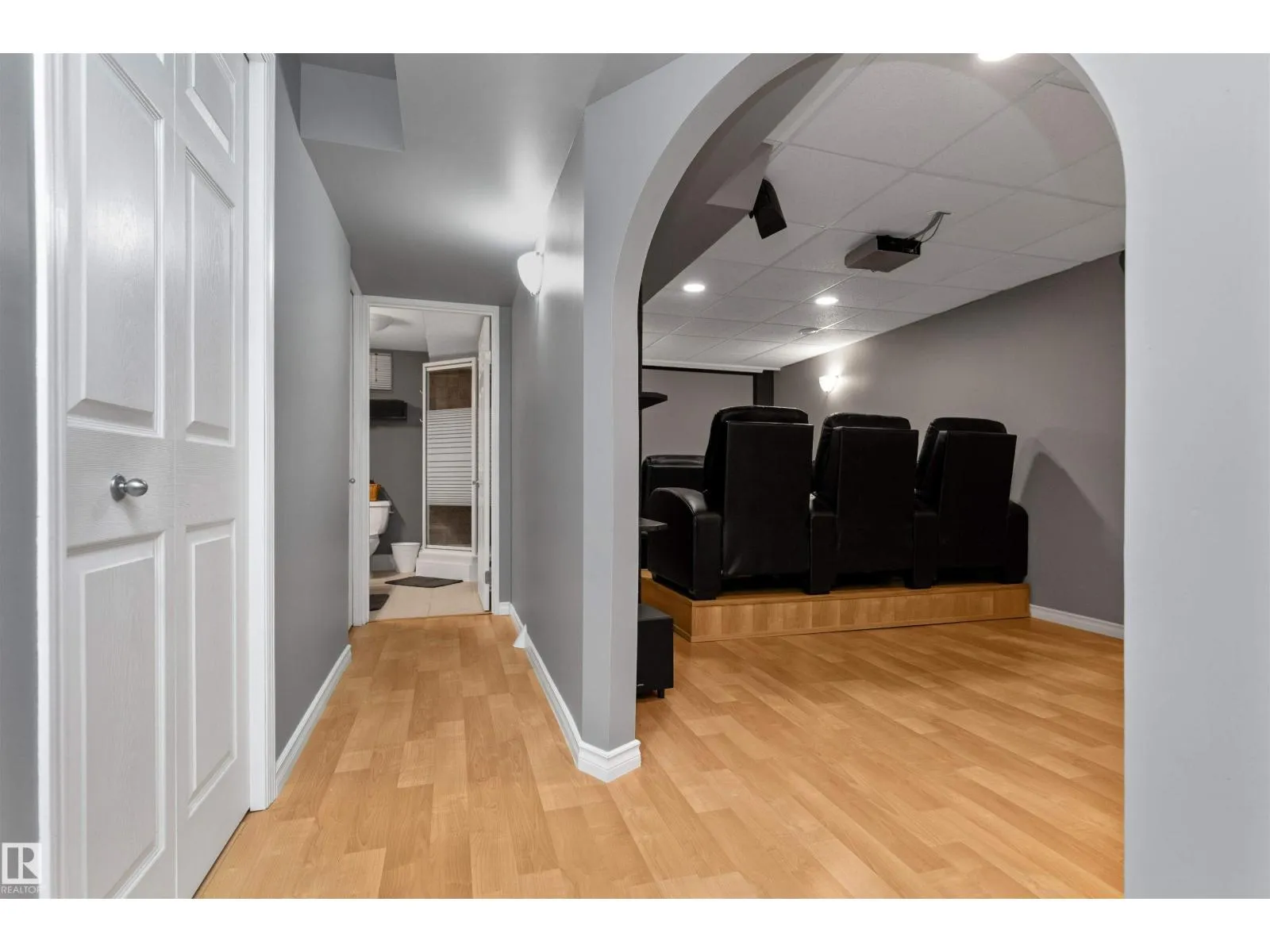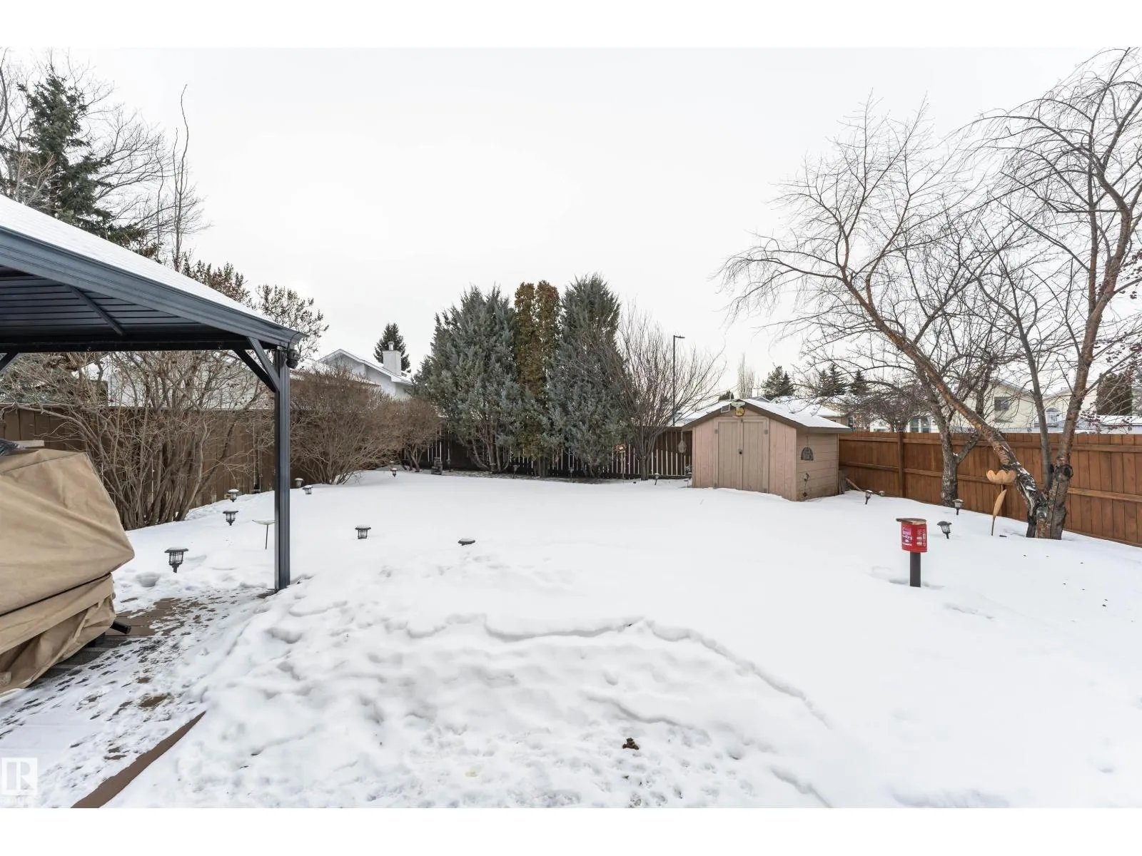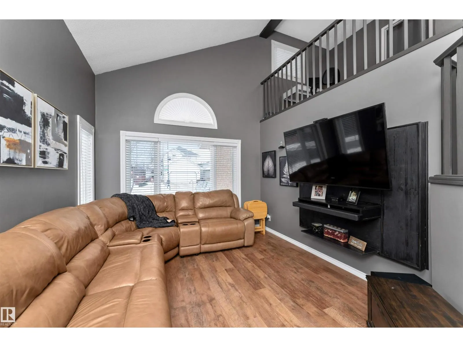 Welcome to this 2-storey 5 bed (3 up and 2 down), 4 bath home in Jamieson Place! The main floor offers a living and dining room with soaring vaulted ceilings and laminate flooring throughout. In the kitchen find stainless steel appliances including a gas stove, dinette & breakfast bar that opens onto a cozy family room with a fireplace. The laundry room is conveniently located off the garage. Head upstairs to an open loft area, spacious primary bedroom with walk in closet, and 4-piece ensuite, plus two additional bedrooms connected by a JACK & JILL bath. The basement includes a theatre room with tiered seating, projector, surround sound, wet bar with cabinetry, 3-piece bath, and two bedrooms, one with built-in storage & desk space! Recent updates include a newer fence, vinyl windows, 2025 furnace & A/C. The backyard is set up for entertaining with a steel roof gazebo, shed, hot tub hookup, and natural gas lines for BBQ or fire table. Walking distance to schools and near the Henday and plenty of shopping. (id:27476)