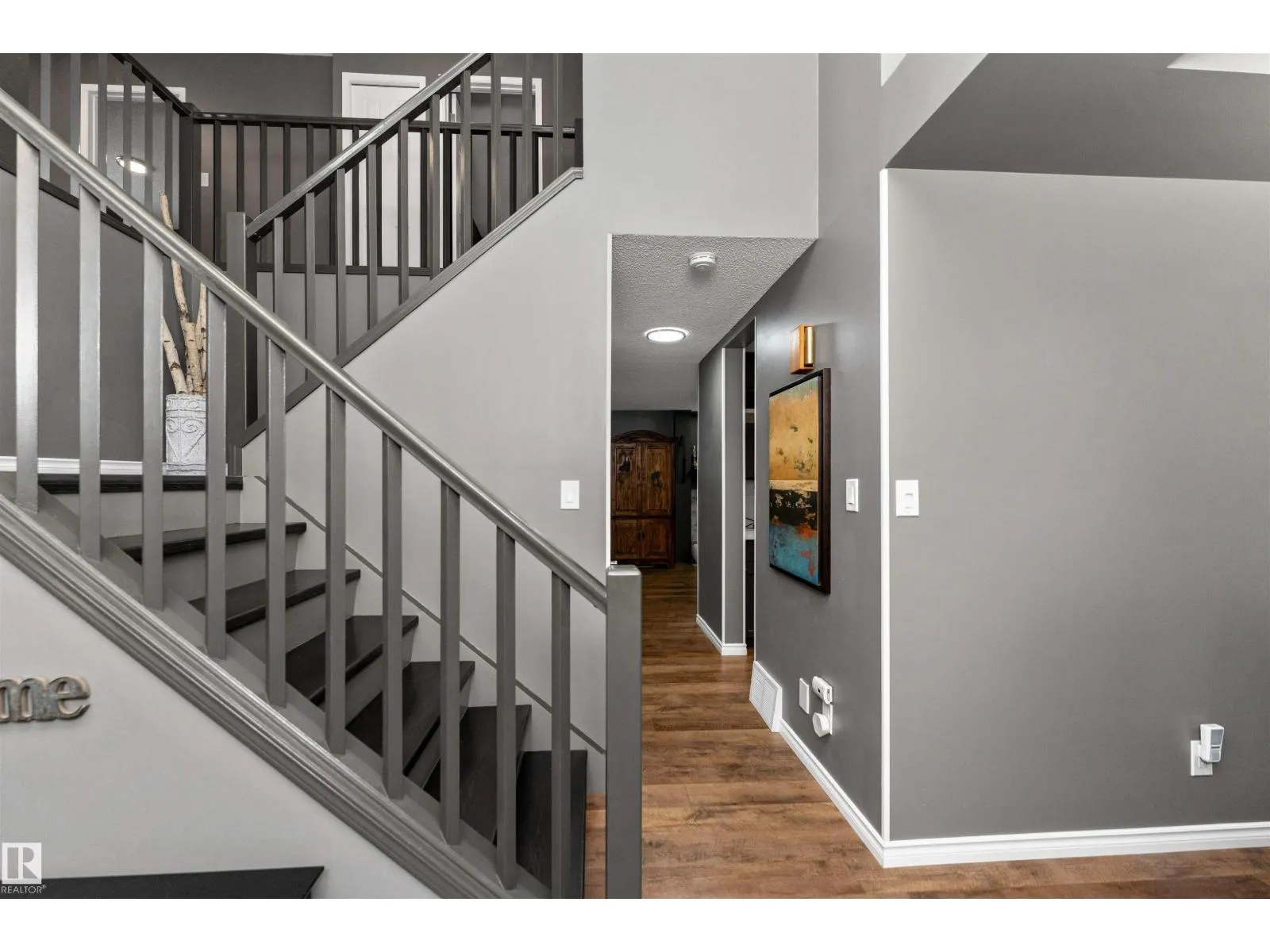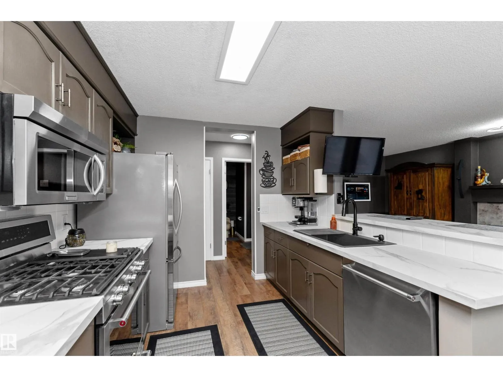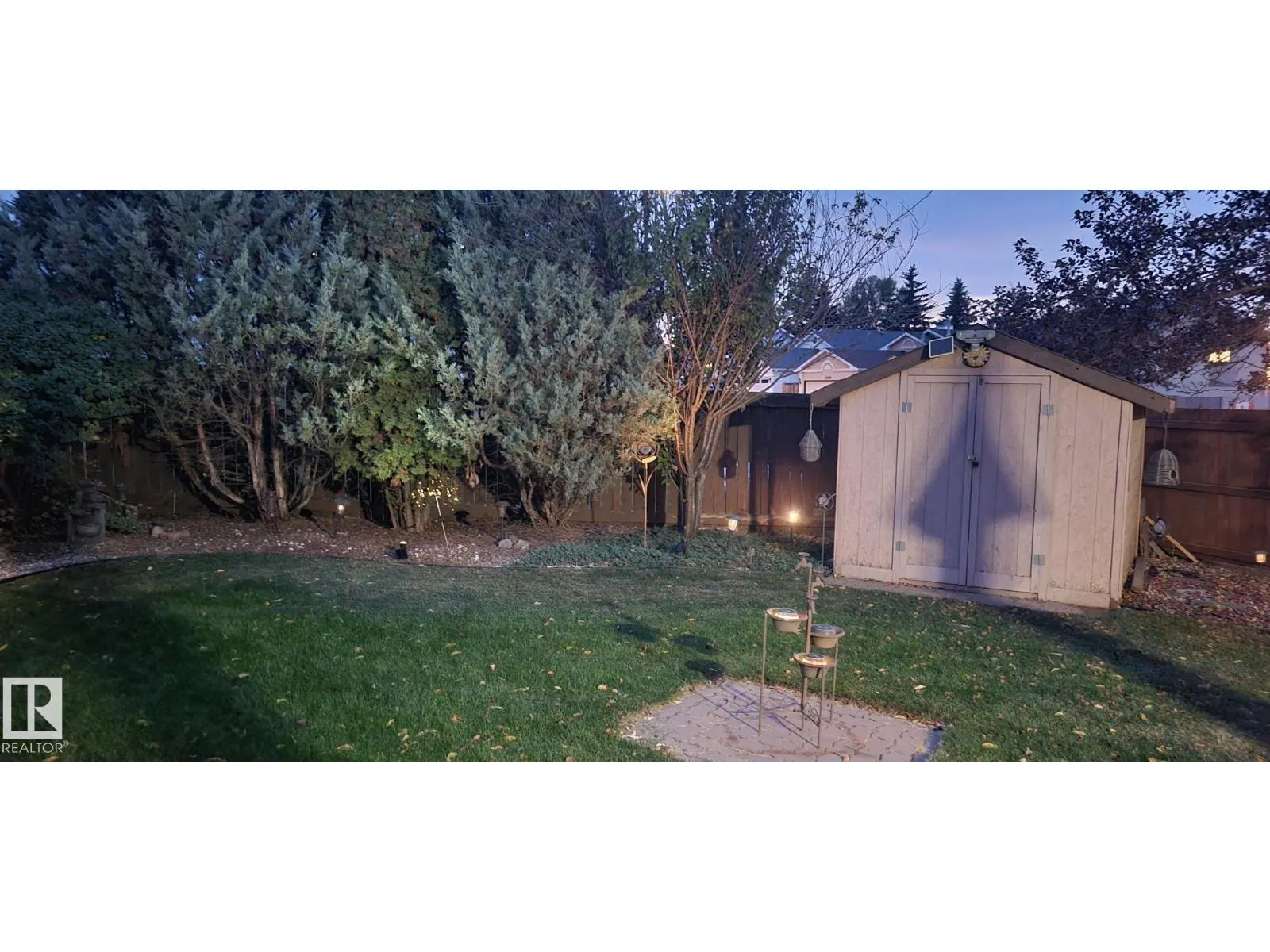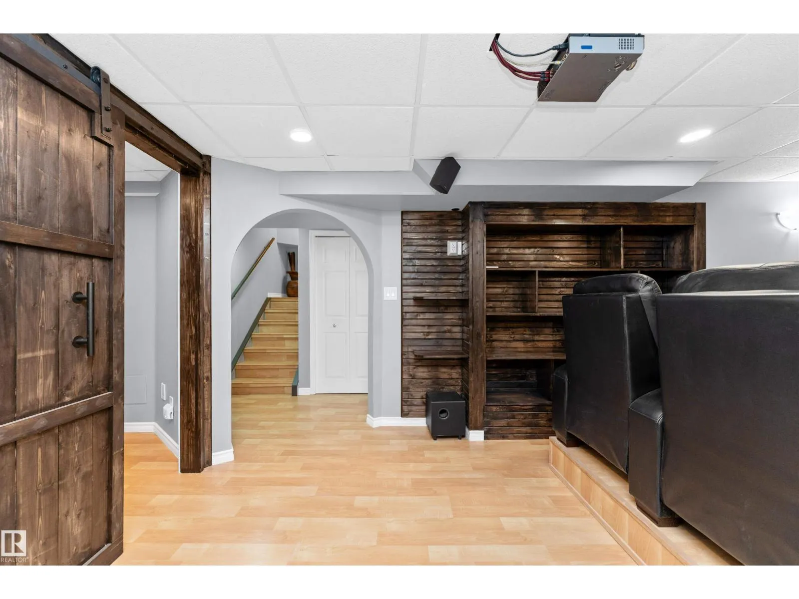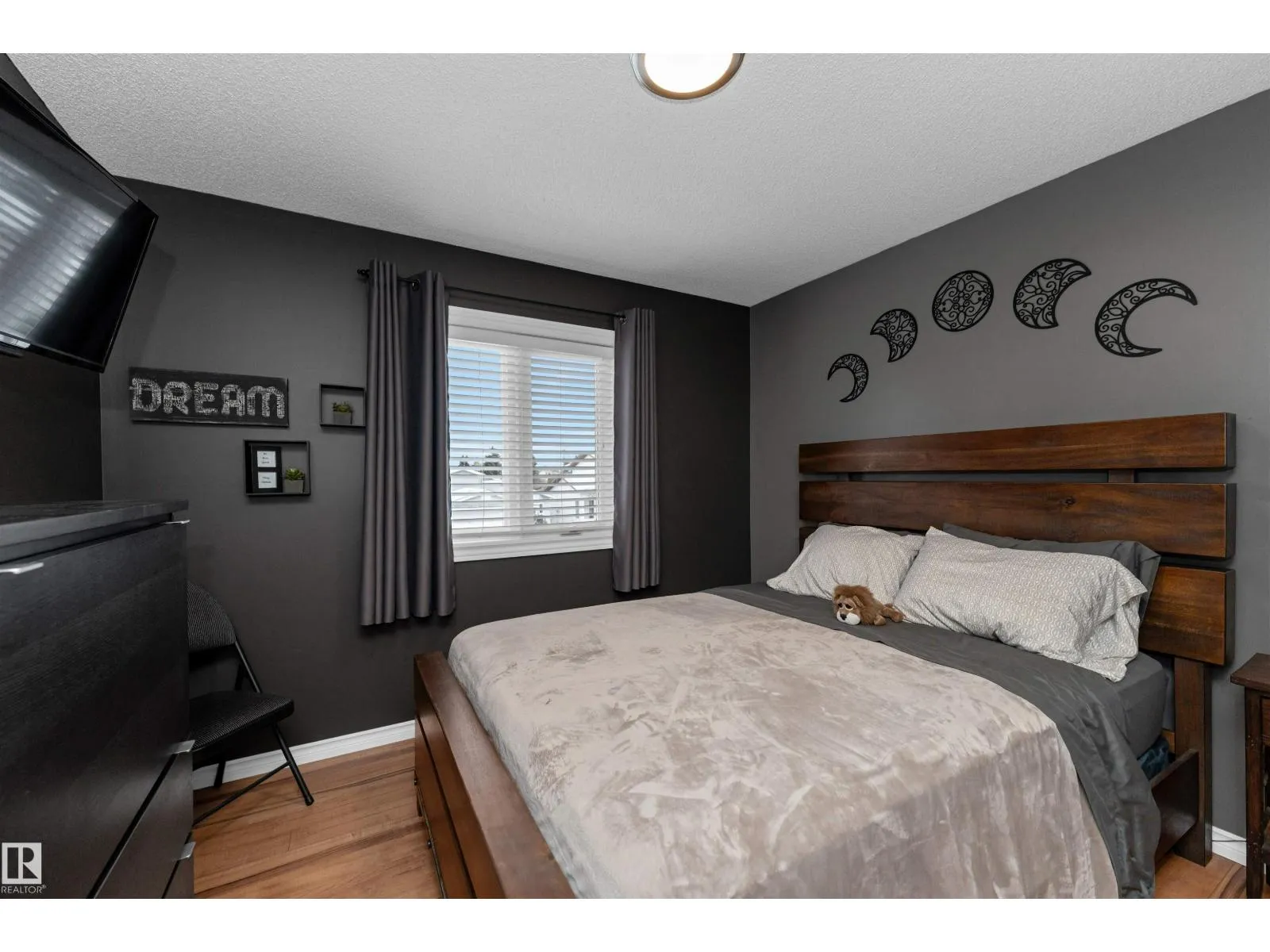 Welcome to this 2-storey 5 bed (3 up and 2 down), 4 bath home in Jamieson Place! The main floor offers a living and dining room with soaring vaulted ceilings and laminate flooring throughout. In the kitchen find stainless steel appliances including a gas stove, dinette & breakfast bar that opens onto a cozy family room with a fireplace. The laundry room is conveniently located off the garage. Head upstairs to an open loft area, spacious primary bedroom with walk in closet, and 4-piece ensuite, plus two additional bedrooms connected by a JACK & JILL bath. The basement includes a theatre room with tiered seating, projector, surround sound, wet bar with cabinetry, 3-piece bath, and two bedrooms, one with built-in storage & desk space! Recent updates include a newer fence, vinyl windows, 2025 furnace & A/C. The backyard is set up for entertaining with a steel roof gazebo, shed, hot tub hookup, and natural gas lines for BBQ or fire table. Walking distance to schools and near the Henday and plenty of shopping. (id:27476)