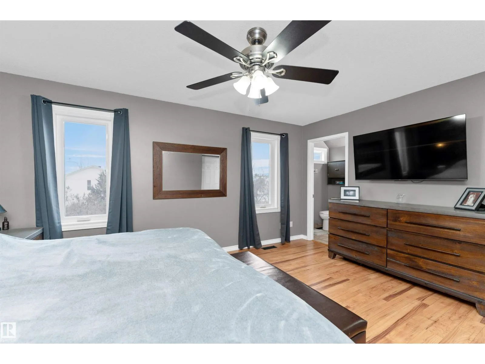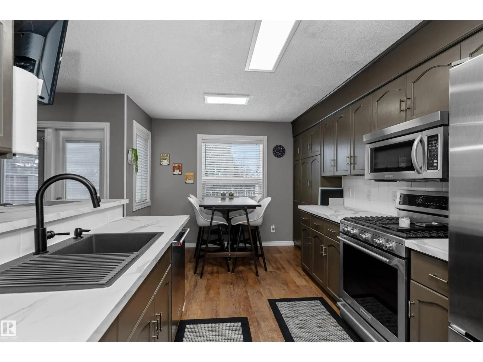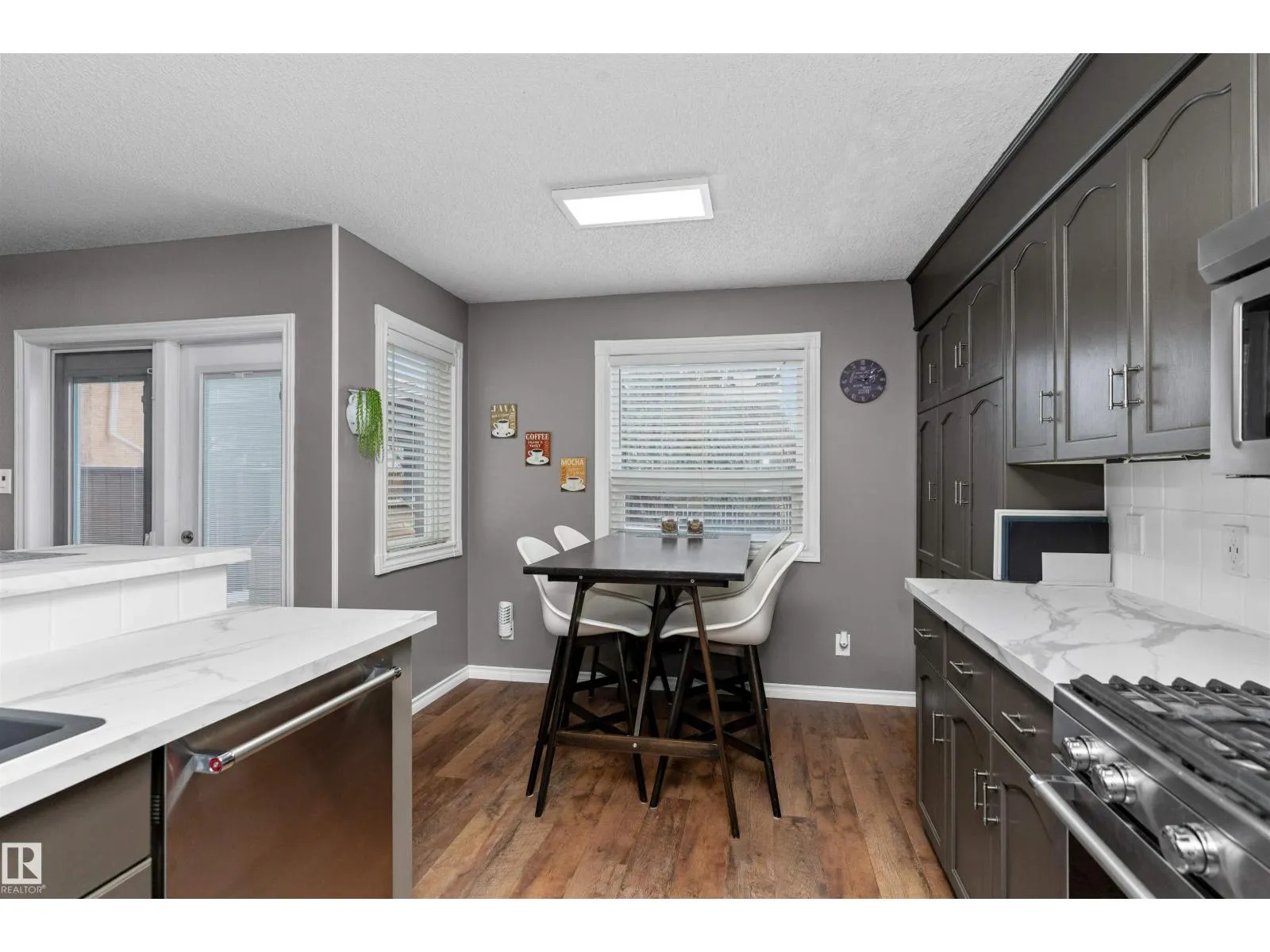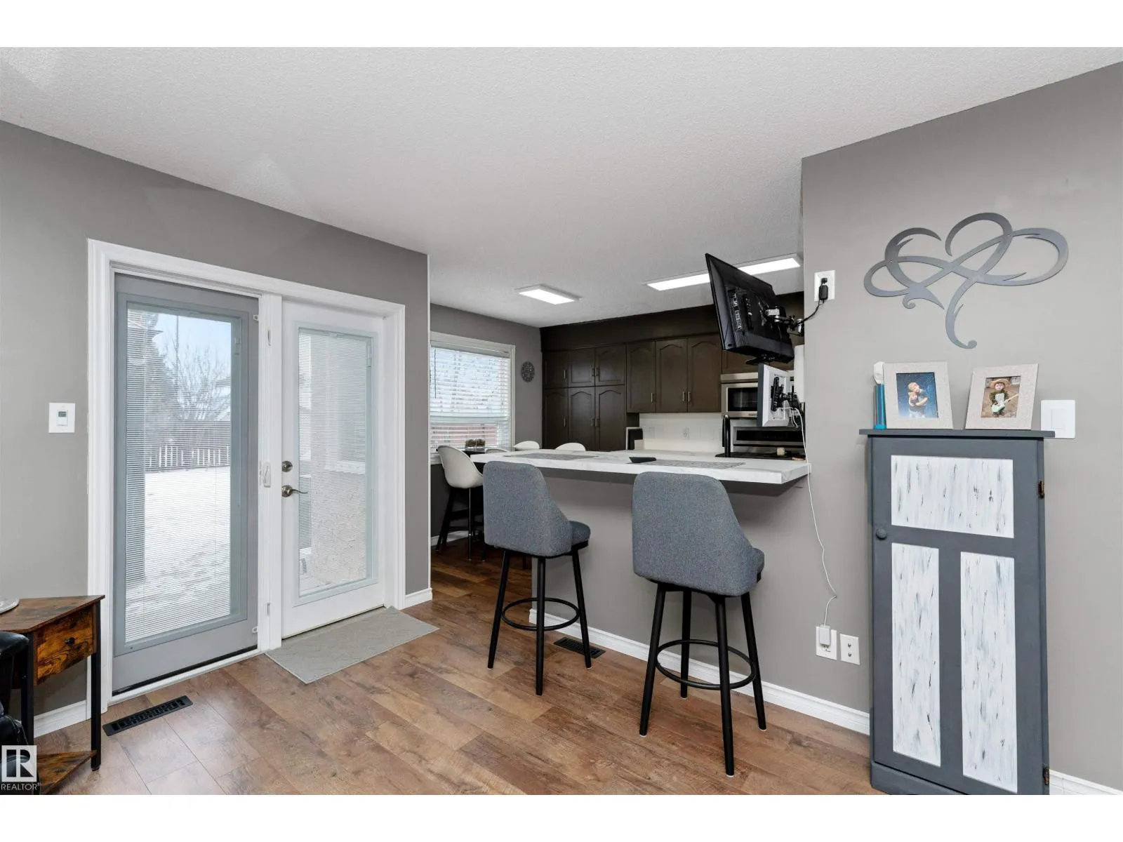 Welcome to this 2-storey 5 bed (3 up and 2 down), 4 bath home in Jamieson Place! The main floor offers a living and dining room with soaring vaulted ceilings and laminate flooring throughout. In the kitchen find stainless steel appliances including a gas stove, dinette & breakfast bar that opens onto a cozy family room with a fireplace. The laundry room is conveniently located off the garage. Head upstairs to an open loft area, spacious primary bedroom with walk in closet, and 4-piece ensuite, plus two additional bedrooms connected by a JACK & JILL bath. The basement includes a theatre room with tiered seating, projector, surround sound, wet bar with cabinetry, 3-piece bath, and two bedrooms, one with built-in storage & desk space! Recent updates include a newer fence, vinyl windows, 2025 furnace & A/C. The backyard is set up for entertaining with a steel roof gazebo, shed, hot tub hookup, and natural gas lines for BBQ or fire table. Walking distance to schools and near the Henday and plenty of shopping. (id:27476)