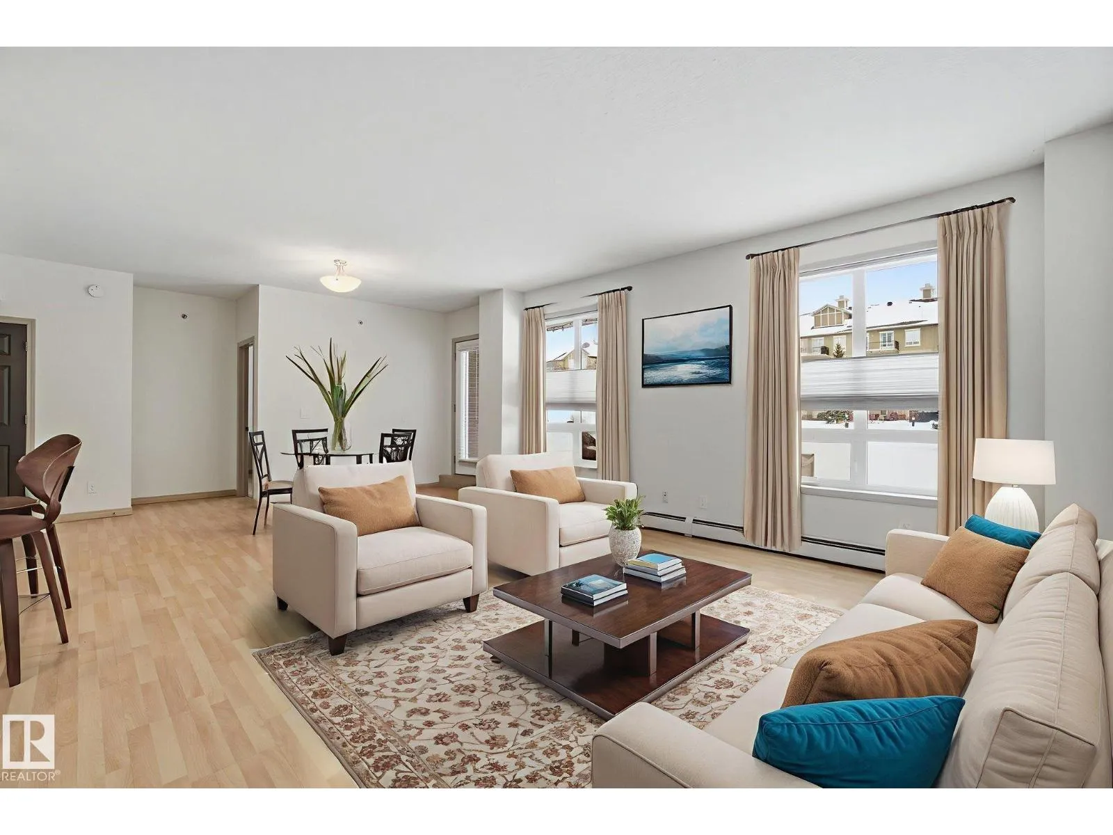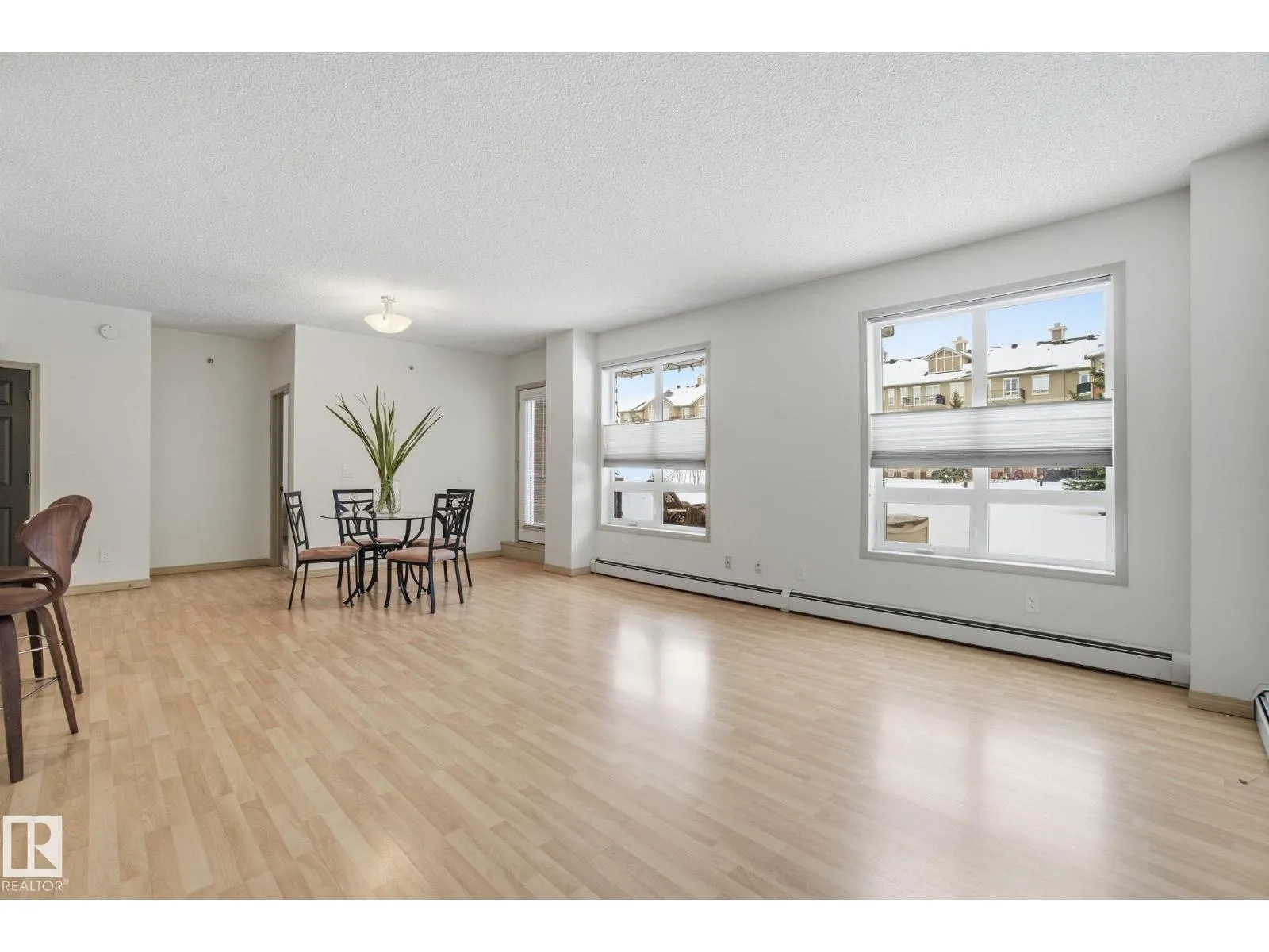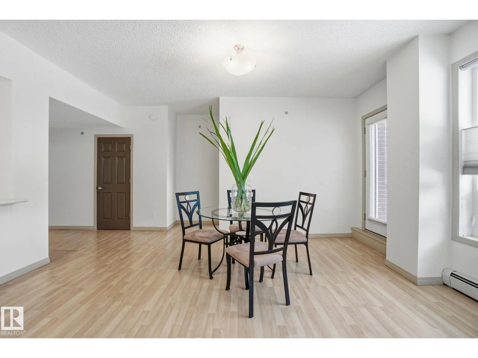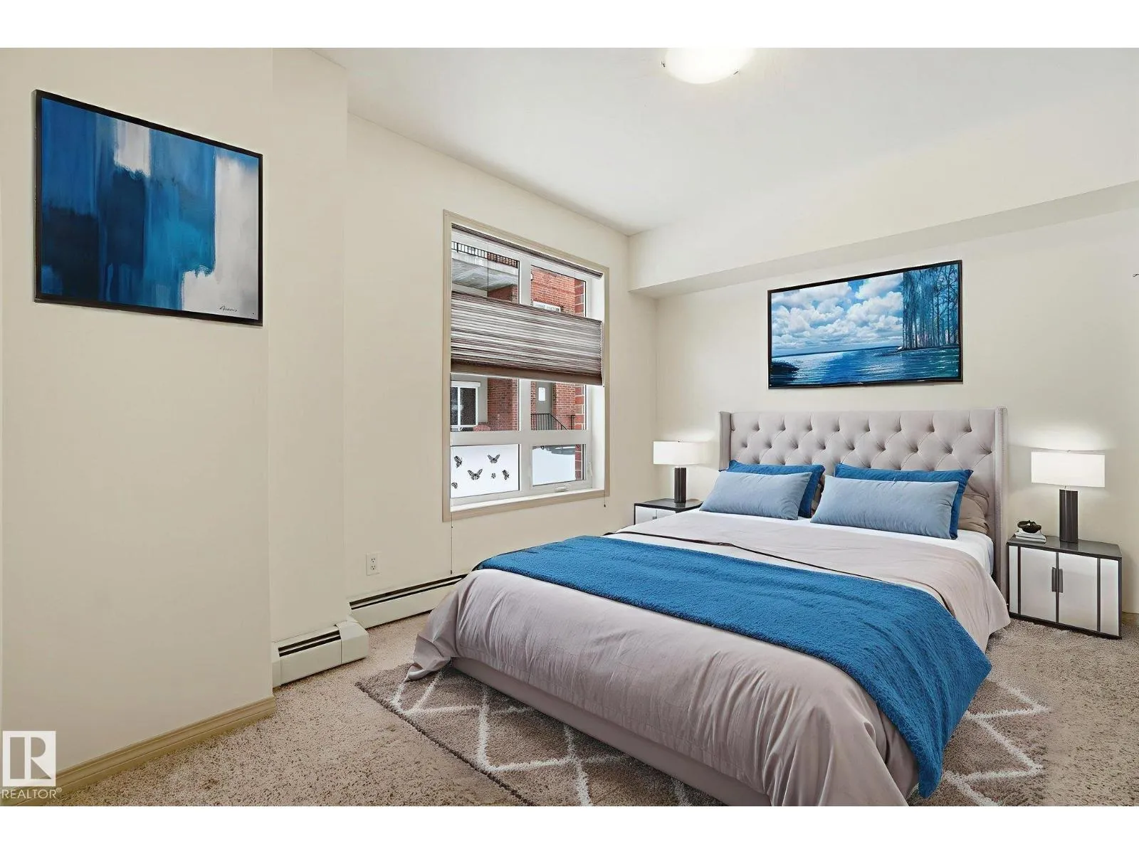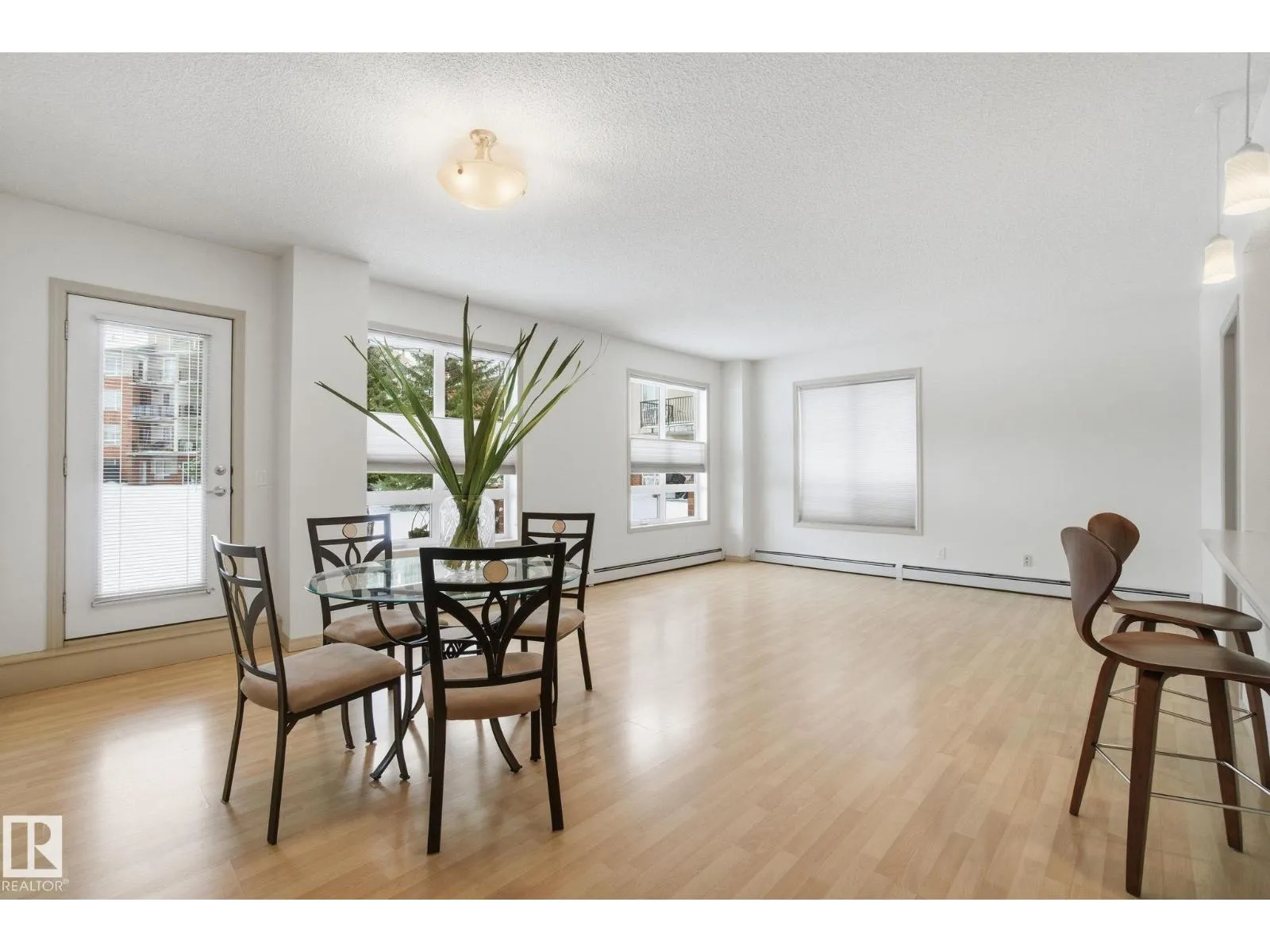 Perched on the main floor of the solid, quiet concrete Holland Gardens, this corner 2-bedroom, 2-bathroom home offers a rare and inviting lifestyle. Step directly onto your private patio, overlooking a lush, park-like central courtyardâan ideal setting includes a natural gas hook-up. Inside, an exceptionally bright and airy atmosphere is created by 9-foot ceilings and an abundance of oversized windows. The open-concept layout is perfect for daily living and entertaining, flowing from the spacious living and dining area into a charming kitchen featuring cork flooring, a generous breakfast bar, and plenty of cabinetry. The primary suite is a true retreat with a walk-through closet leading to a private 4-piece ensuite. A second, generously-sized bedroom, in-suite laundry, and a large entry closet complete this thoughtful floor plan. Your ownership includes TWO underground parking stalls and a storage locker. Unbeatable value: $699 condo fee COVERS ELECTRICITY, heat, water & sewer. Truly a MUST-SEE!!! (id:27476)