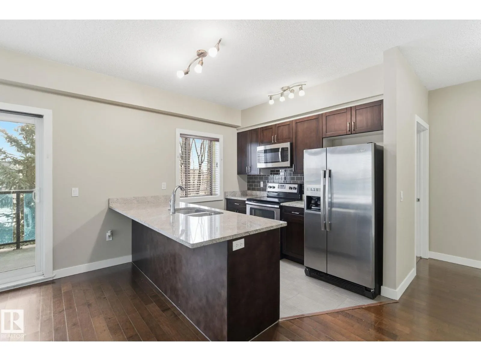RARE FIND - 2 TITLED PARKING SPACES + CAGE! Beautiful large corner unit with in-flooring heating, granite throughout, hardwood flooring, wood cabinets, high-end blinds, convenient in-suite laundry and large windows. Huge entry w/multiple storage closets, 2 bedrooms & 2 bathrooms. Stainless steel appliances w/newer washer, dryer & dishwasher. Large primary bedroom features spacious walk-through closet leading into 3-piece ensuite. Second bedroom is located at the other end, next to 4-piece bath. All within the privacy of a steel & concrete building within walking distance to many amenities. (id:27476)