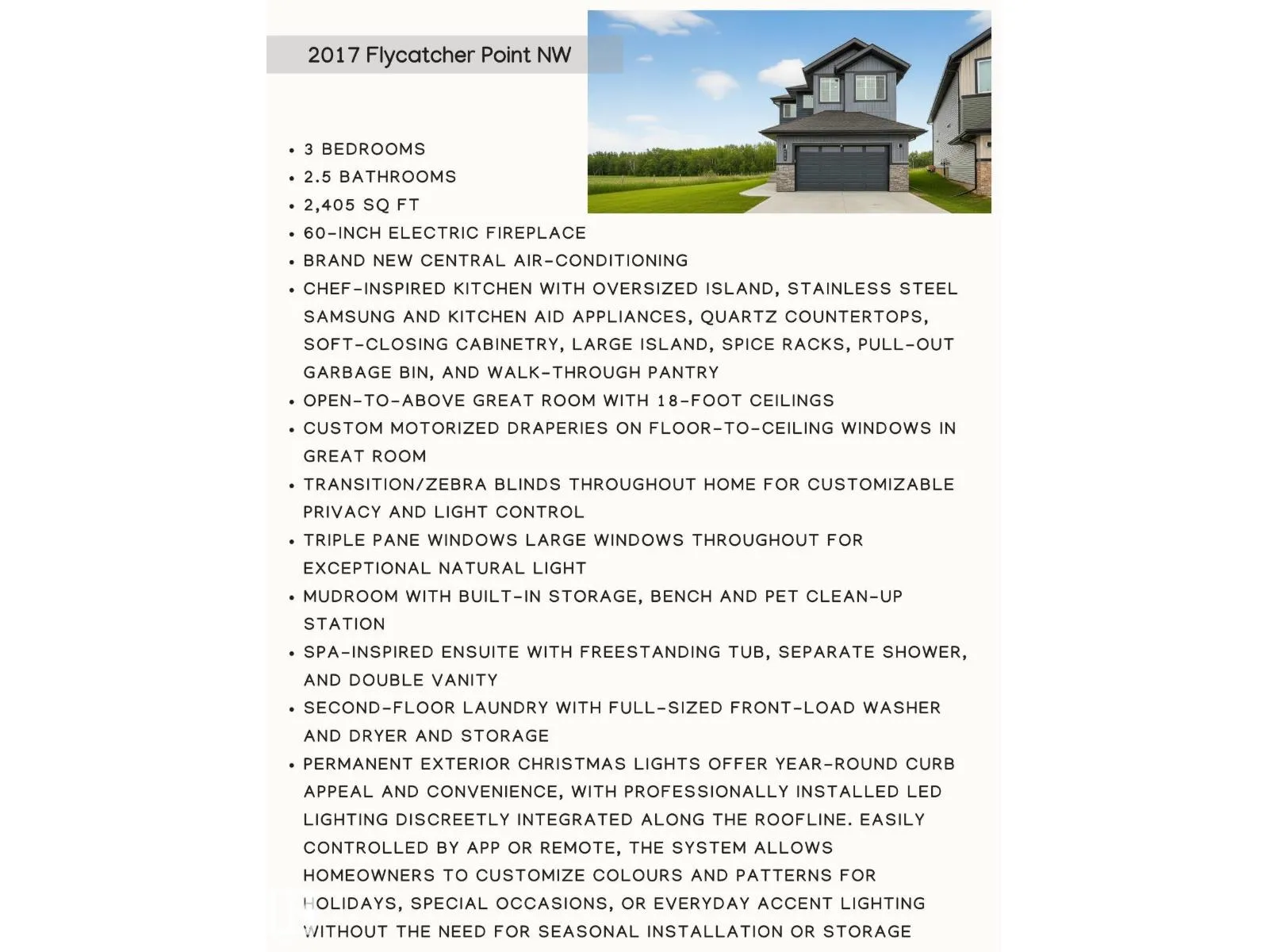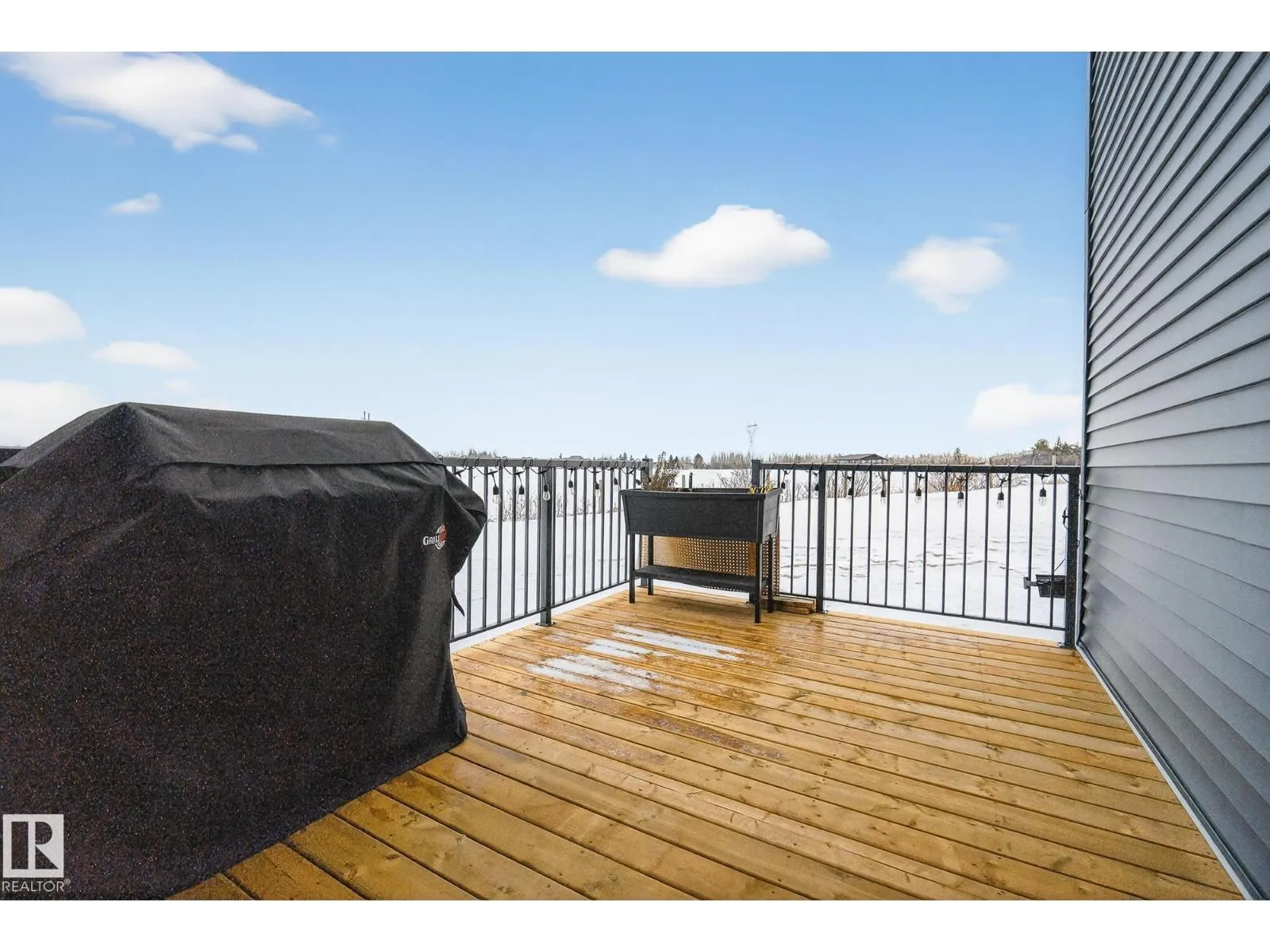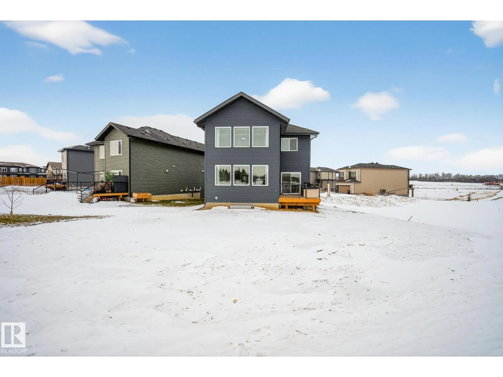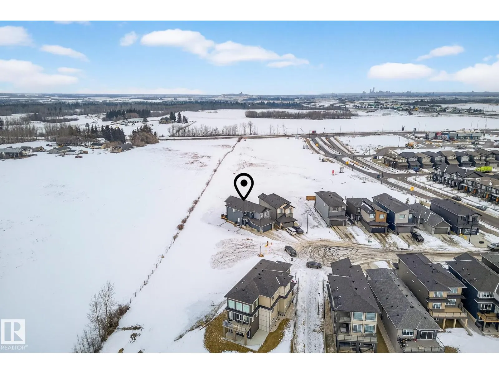 2,405 sq ft. A safe cul-de-sac w/quiet farmland behind, next to Albertaâs largest provincial park - 4,400 acre Lois Hole Provincial Park & Big Lake (8 km x 3 km), an extensive network of natural trails & green spaces. Lot is twice the size of standard building pocket: 820m2/8,800 sq ft! Pet washing station for easy cleanup after outdoor adventures. Location! Just off 215 St/Yellowhead/Trans Canada Hwy/Henday. 9 km to WEM. 14 km to downtown Edmonton. Central A/C, rear deck w/gas line for BBQ. All window coverings. Permanent Christmas lights. 18ft open-to-above ceilings, bright & spacious great room. Chef-inspired kitchen w/5'x8' island. 3 large top floor bdrms, bonus rm. Luxurious primary w/spa-like ensuite & walk-in. All baths finished w/natural stone countertops. MDF shelving in pantry, mudroom & all closets for durable & elegant storage. Huge value - no GST payable, representing approx $35,000 savings. $2,500 landscaping deposit is pre-paid: will be transferred to buyer. Possession completely flexible. (id:27476)