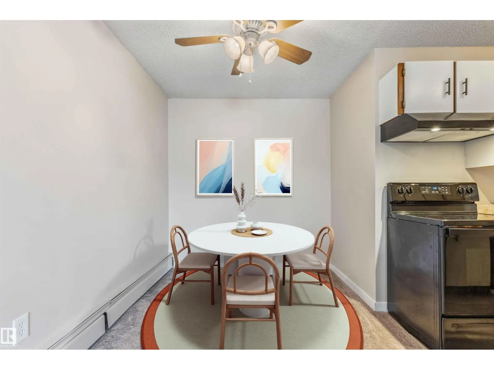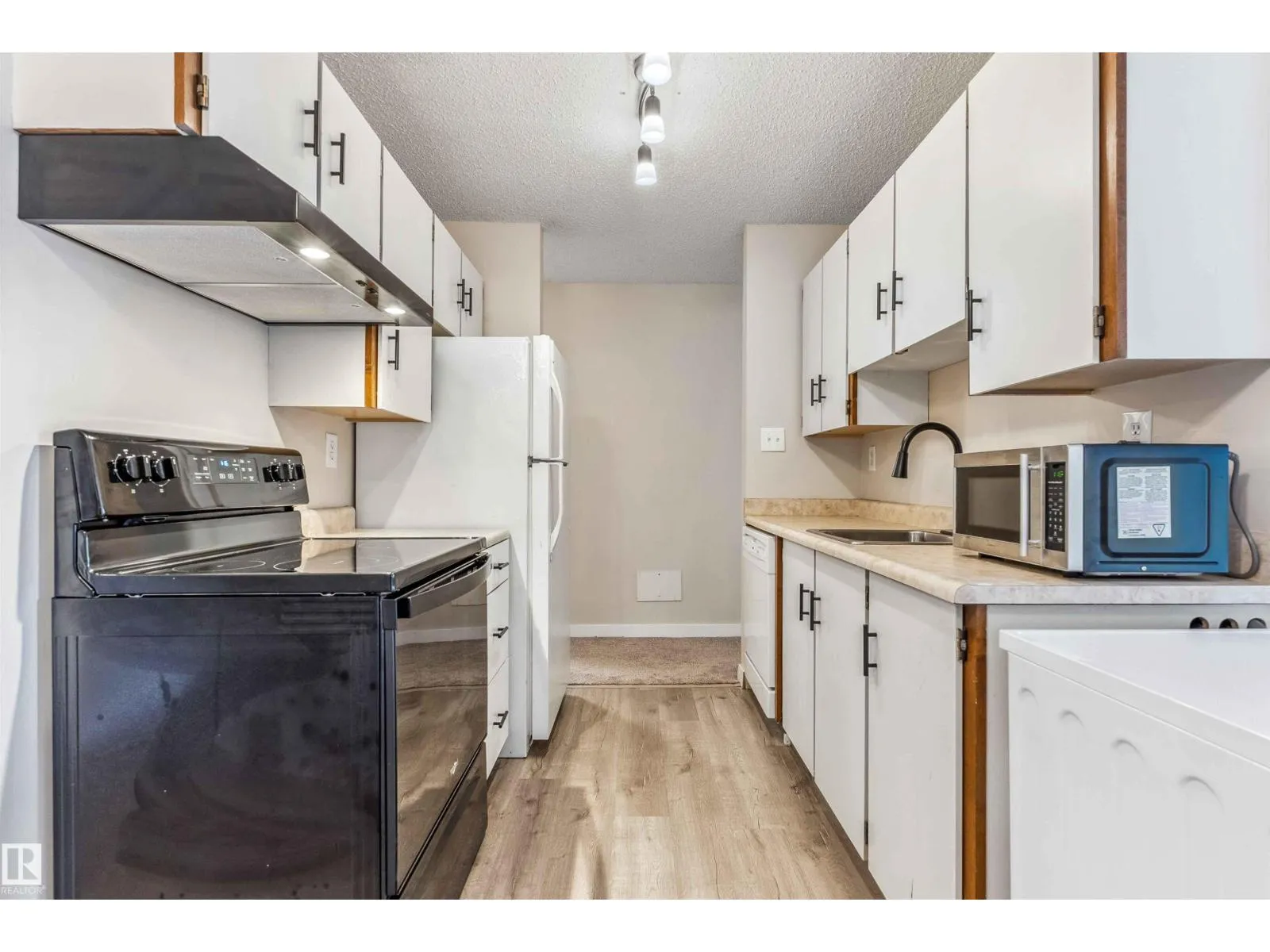 Welcome to this beautifully renovated top-floor condo, ideally situated in the vibrant Queen Mary Park, downtown Edmonton. This unit has been updated this year with fresh paint throughout, brand new flooring, fully renovated bathroom, a brand new washer and dryer, and upgraded kitchen appliances. This west facing unit offers lots of natural sunlight through the large patio windows. Additional highlights include in-suite laundry for your convenience, a generous storage room for all your extras, an assigned parking stall and a spacious balcony for outdoor living. This condo offers the perfect blend of modern updates in an unbeatable location, walking distance to Macewan University, Ice District and 104 Street amenities. (id:27476)