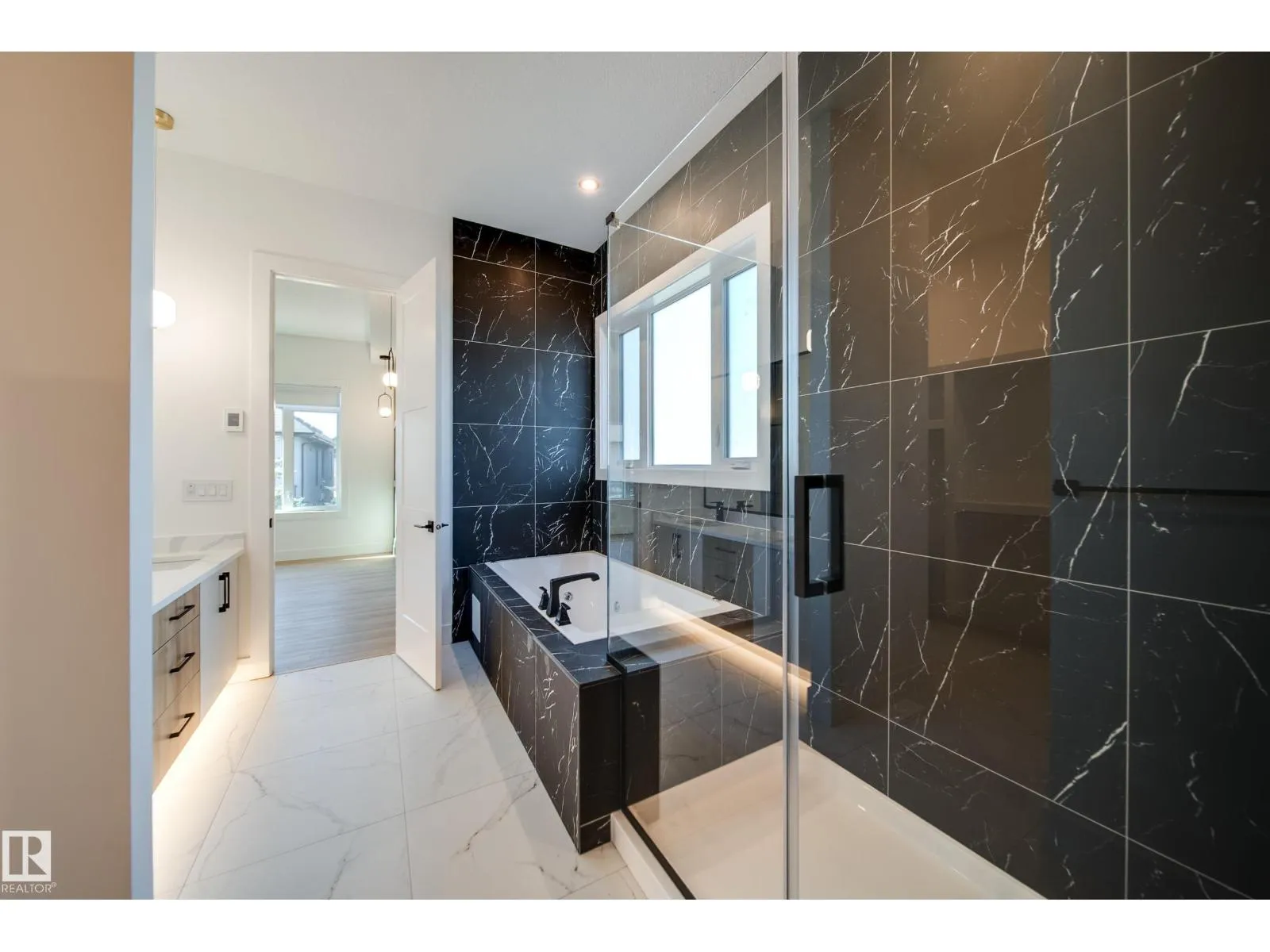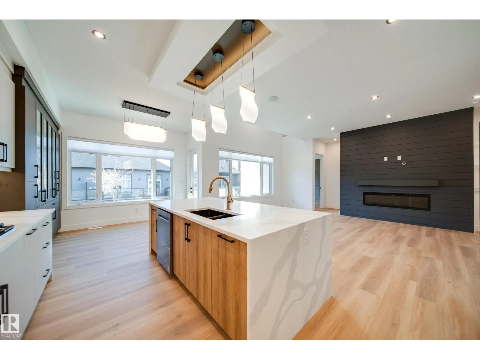 Welcome to one of the largest executive style 1/2 duplex bungalow units in Luxury Greens by Spectrum Homes, in sought after Webber Greens! CUSTOM built home designed by CM Interiors, showcases resort style living w/10' ceilings, 8' doors, & an open concept layout. The main floor offers 2 beds, 2 full baths, mud room, & laundry W/DOG WASH! Cook in your dream kitchen w/waterfall QUARZ island, walkthrough pantry, spice racks, garbage pullout, & upgraded appliances. Bright living room w/massive windows, fireplace, WINDOW COVERINGS, & soaring open-to-below ceilings. The primary retreat hosts a spa-inspired ensuite w/a soaker tub, tiled shower, dual sinks & walk-in closet. Upper loft has built-in wet bar & 2nd fireplace! THE spacious FULLY FINISHED BASEMENT w/separate entrance from garage stairwell, adds a large rec room, 3rd fireplace, 2 bedrooms, full Jack&Jill style bath & wet bar. Finished garage w/220V EV charger, zoned A/C, WiFi LED gem lights, & exposed aggregate driveway complete this incredible home. (id:27476)