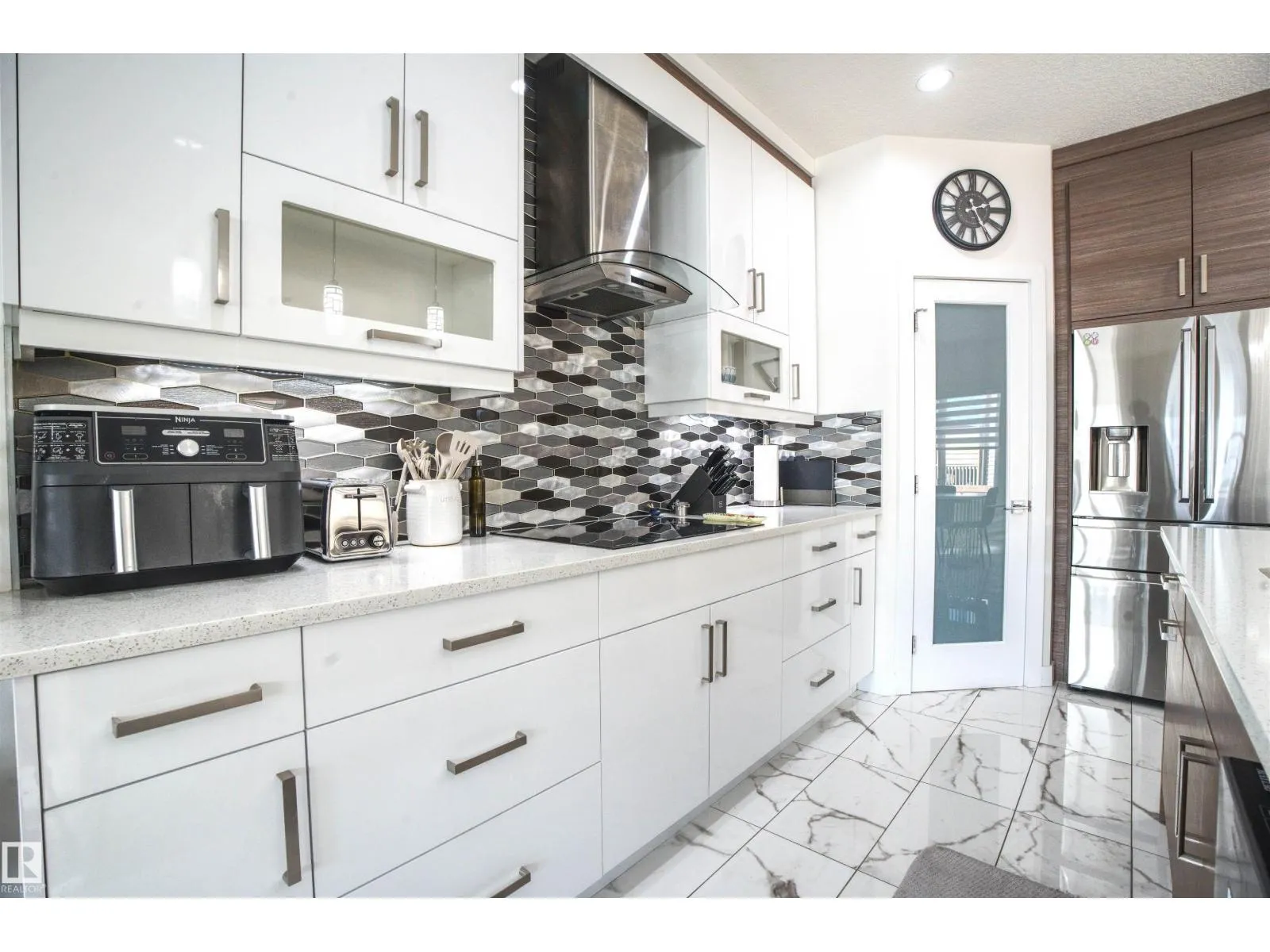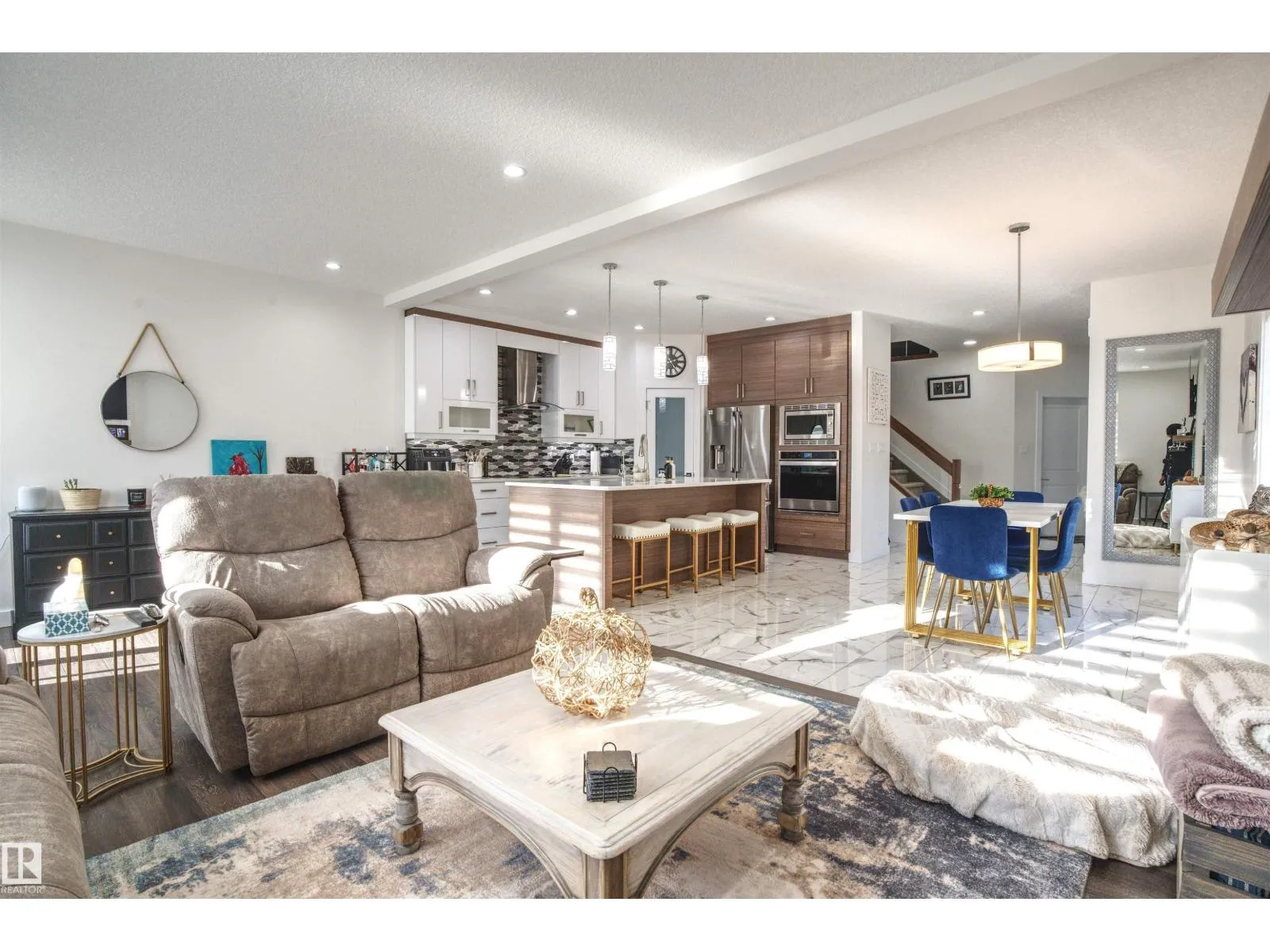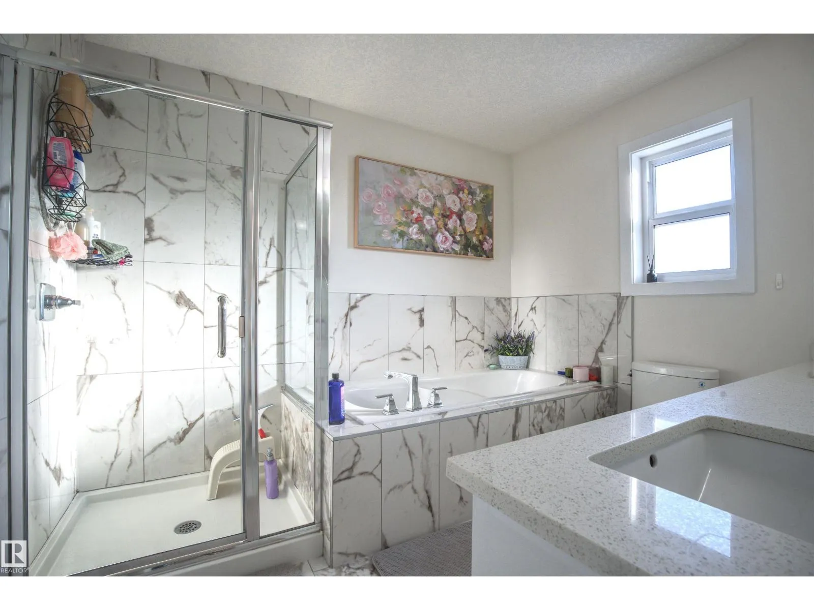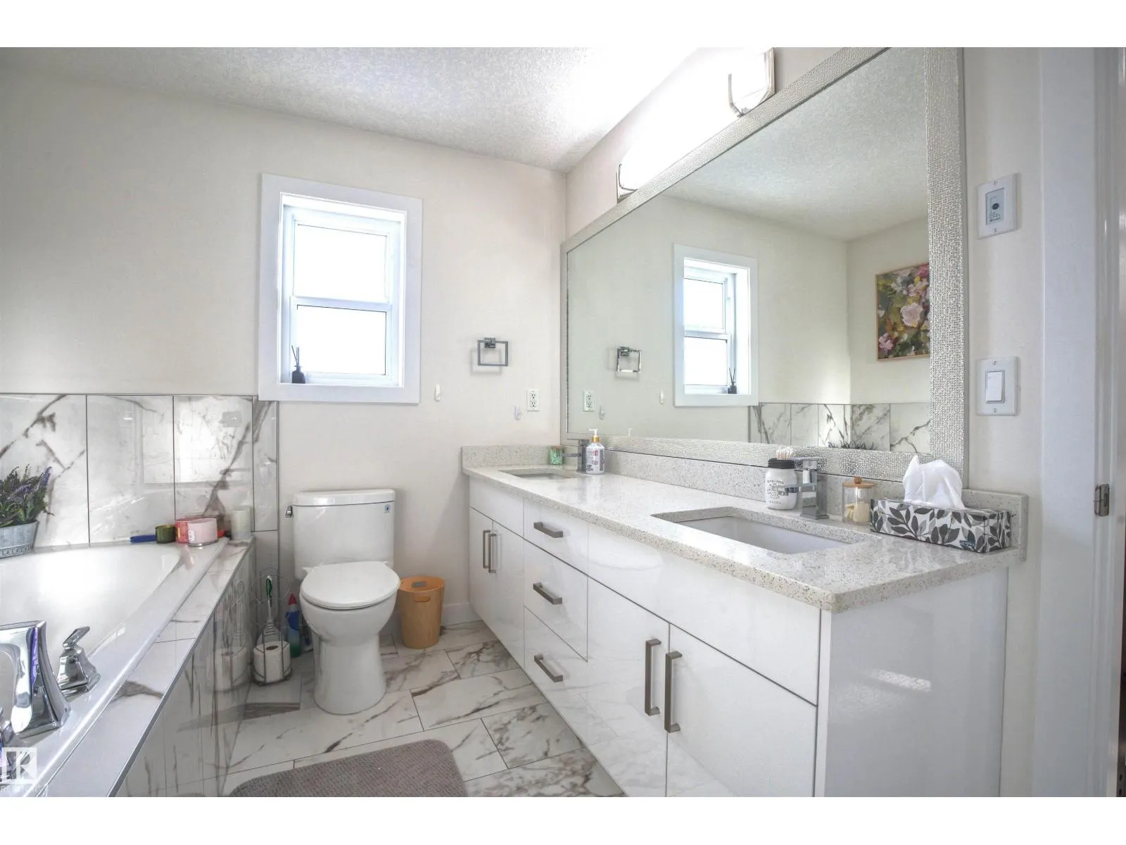 Beautiful & Spacious half-duplex with attached double garage with epoxy floor in Rosenthal. This 2000+ sq ft home features central air conditioning, water softener, vinyl plank flooring and 11â ceilings. On the main: gas fireplace in the living room, bright dining area and gourmet kitchen with eat-up island, quartz countertops and corner pantry. The ownerâs suite offers a 5-pce ensuite with soaker tub. Two additional bedrooms, 4-pce bathroom and huge bonus room complete the upstairs. Unfinished basement with separate entrance ready for a 2 bed suite or additional living space. Huge pie shaped backyard, fully fenced with deck (including gas line) and maintenance free front. Located near walking trails and ponds, 5 minutes to Costco, 10 to WEM, and with easy access to Whitemud Drive & Anthony Henday. A fantastic opportunity! (id:27476)