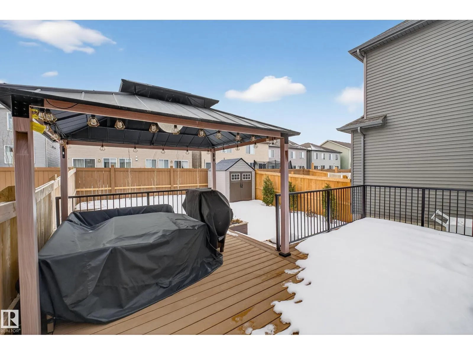 Looking for a nearly new and truly turn-key home with minimal traffic exposure, this 2022 Graydon Hill Honey offers over 2,000 sq. ft. of premium finished living space with all the modern touches youâll love. The open-concept main floor features a gourmet kitchen with quartz countertops, an island with undermount sink, stainless steel appliances and hood fan, bright south-facing windows, 9-foot ceilings, and a floor plan that could accommodate a future separate basement entrance with minor interior modifications. Upstairs youâll find a spacious bonus room, large laundry room, and three bedrooms. The primary suite is generously sized and includes a walk-in closet and a 5-piece ensuite with double sinks, a separate shower, and soaker tub. Your family is guaranteed to enjoy the warmer months in the custom landscaped backyard, complete with a large composite deck, gazebo, and beautiful Swedish Aspen trees. Also, I almost forgot, a massive investment into SOLAR PANELS that creates a huge saving on your power! (id:27476)