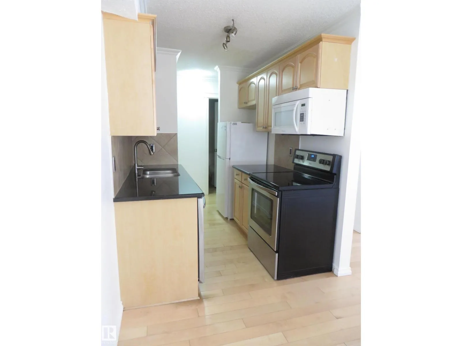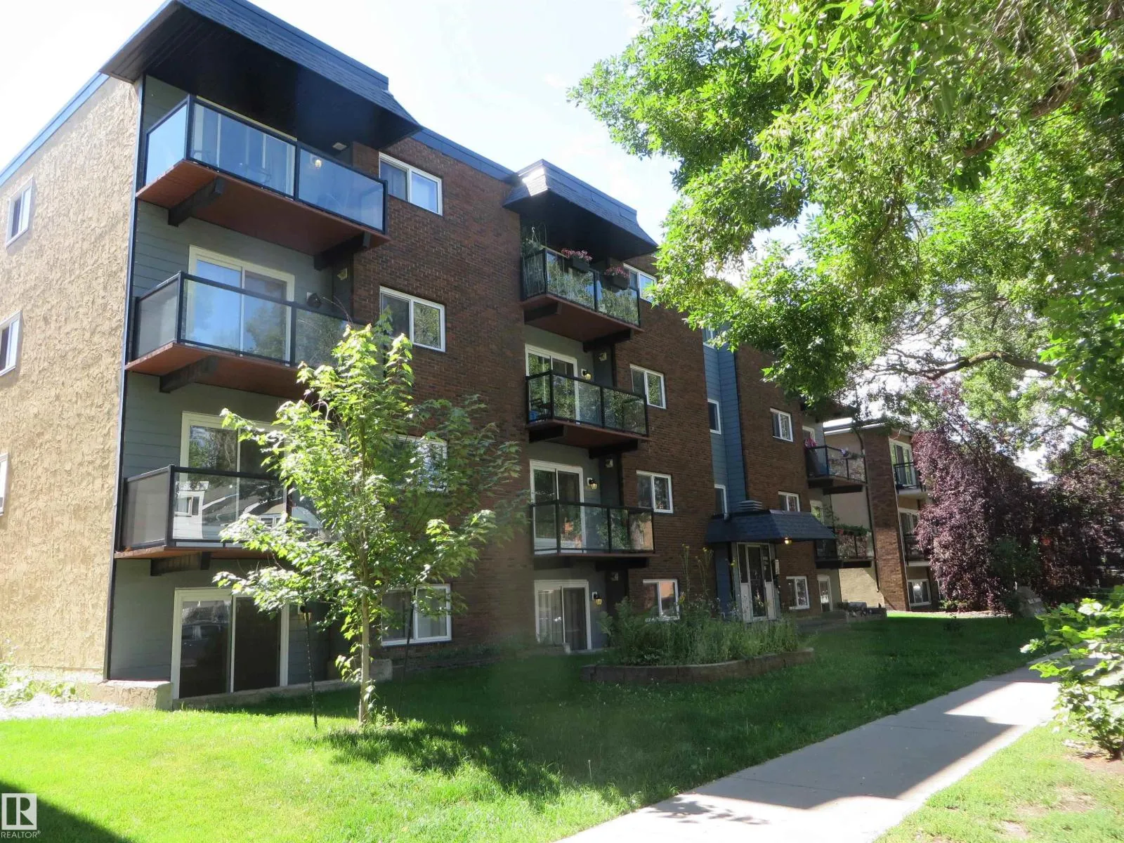 This upgraded contemporary 1 bedroom, 1 bath main floor corner unit is perfectly located on a quiet tree lined street just steps away from Whyte Ave amenities including unique boutique shops, variety of casual & trendy dining, cafe, pubs, year-round farmer market & more. The spacious bright and open floor plan features large living room w/ patio doors to a enclosed patio, upgraded maple kitchen with granite countertop & tiled backsplash. Spacious bedroom has mirror closet door. Insuite laundry, maple hardwood & tiled floorings, decorative crown moulding. Extra huge windows, energized parking stall & more. Well maintained building in an outstanding location w/ easy access U of A, public transit, City Centre, River Valley trails and more. Affordable and great buy for starter/revenue home. (id:27476)