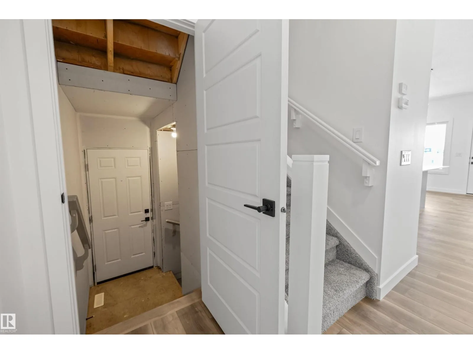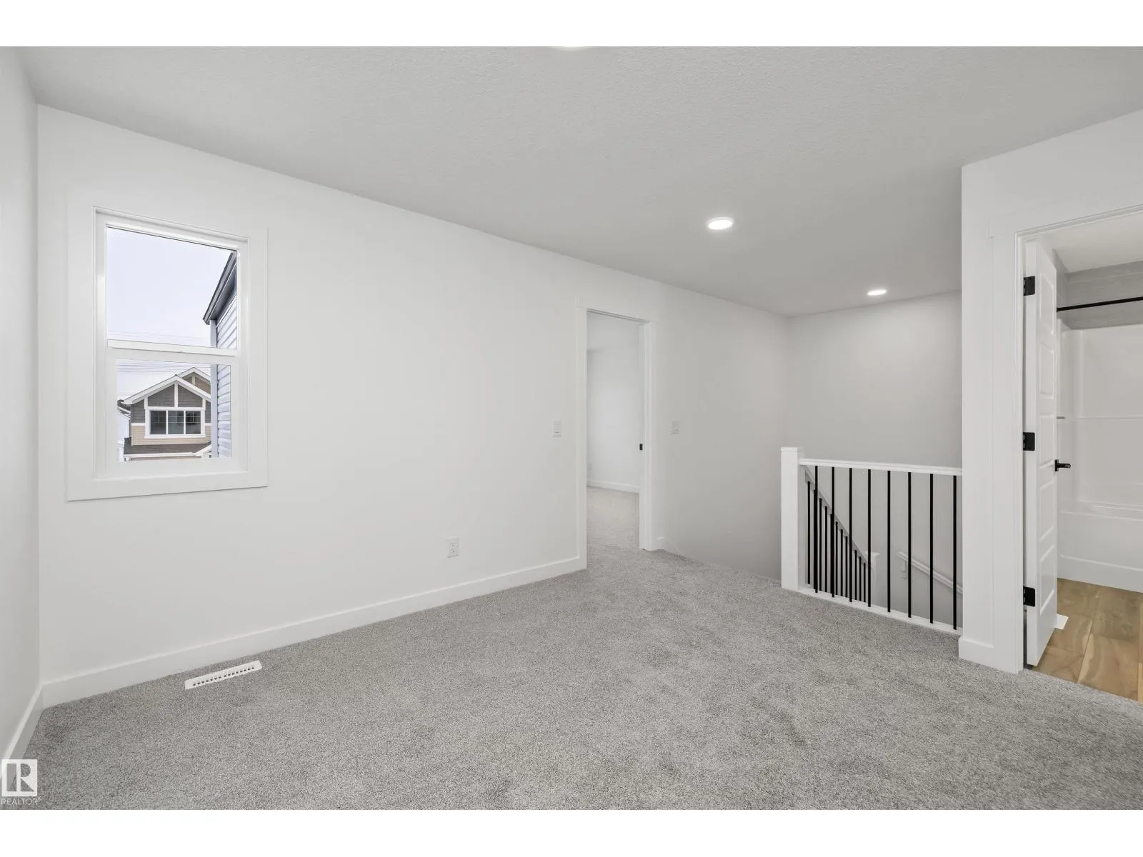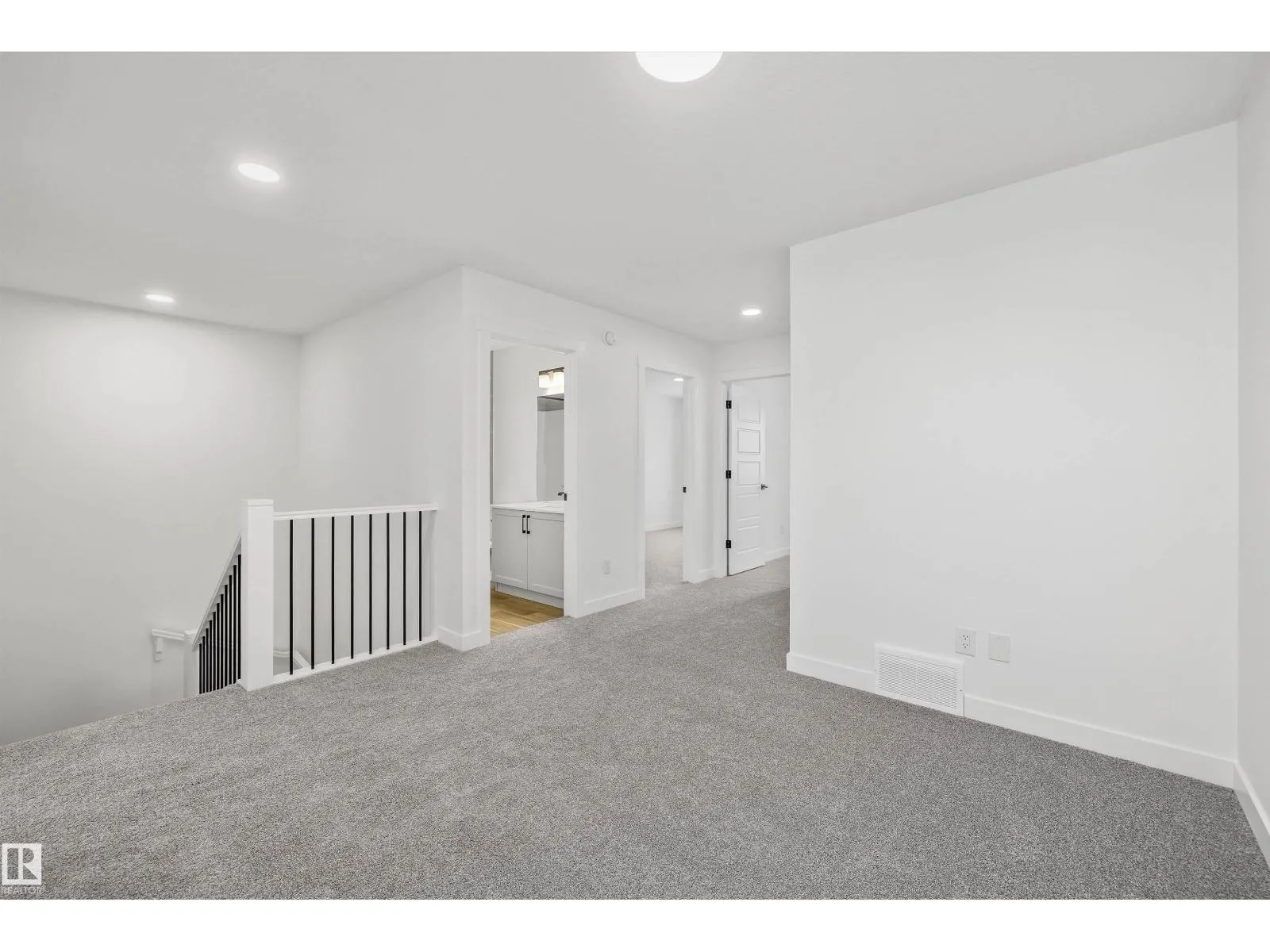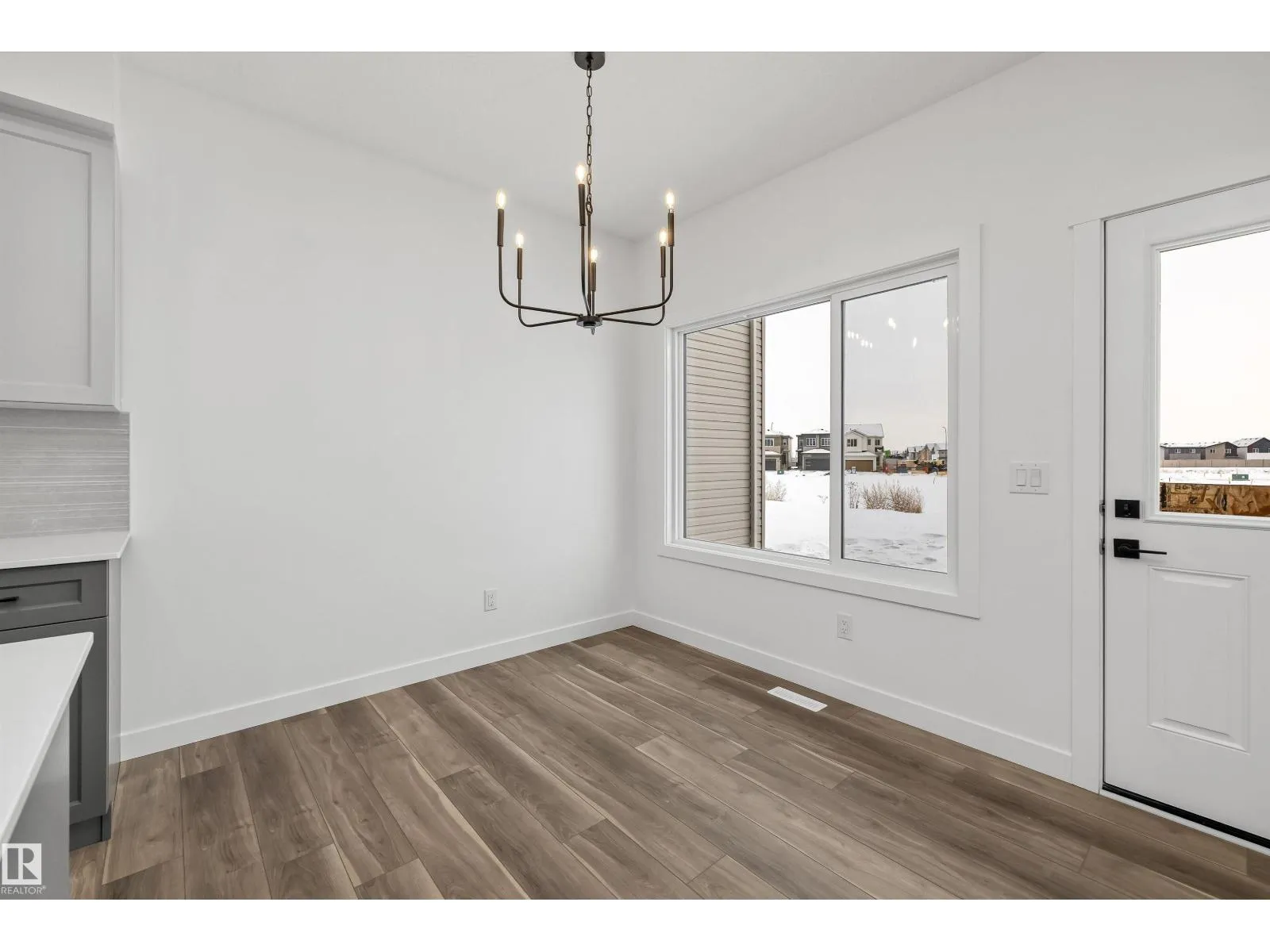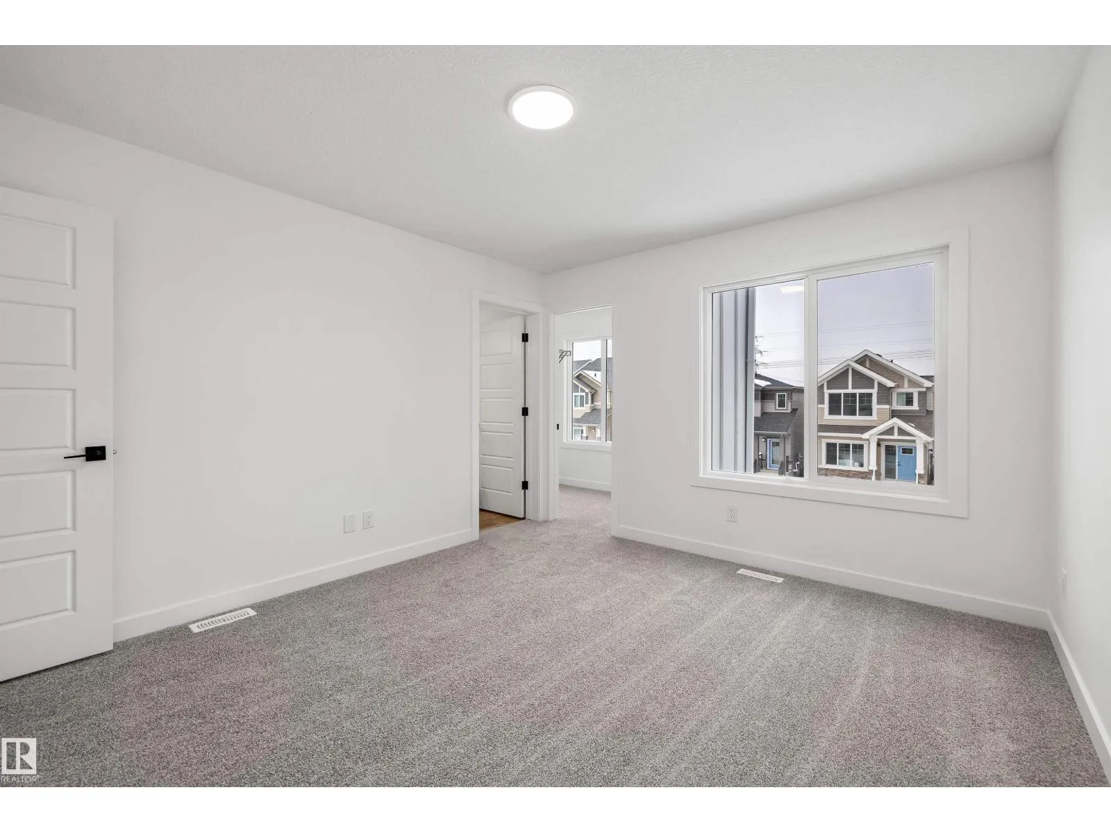 Built by Sterling Homes, this beautifully finished duplex in Aster offers bright, modern living in a welcoming, family-friendly community. Triple-pane windows and 9â ceilings flood the main floor with natural light, creating an open, inviting feel. The kitchen impresses with quartz countertops, a central island with seating, upgraded cabinetry, full-height tile backsplash, a corner pantry, and a sleek chimney hood fanâperfect for everyday living and entertaining. The great room features an electric fireplace and flows into the dining nook with patio doors to the future deck and backyard. Upstairs, a spacious bonus room adds flexible space. The primary suite includes a walk-in closet and 3-piece ensuite, while two more bedrooms, a full bath, and upper-floor laundry add convenience. Finished with luxury vinyl plank flooring, a separate side entrance, double attached garage with floor drain, and basement rough-ins, this home blends comfort, style, and long-term value. (id:27476)