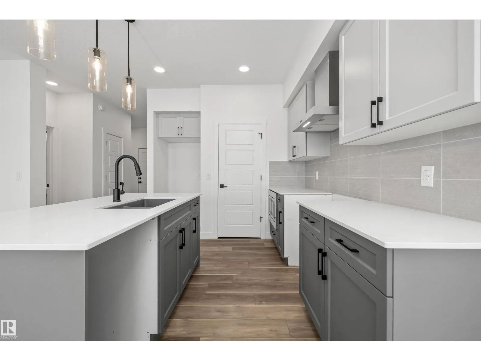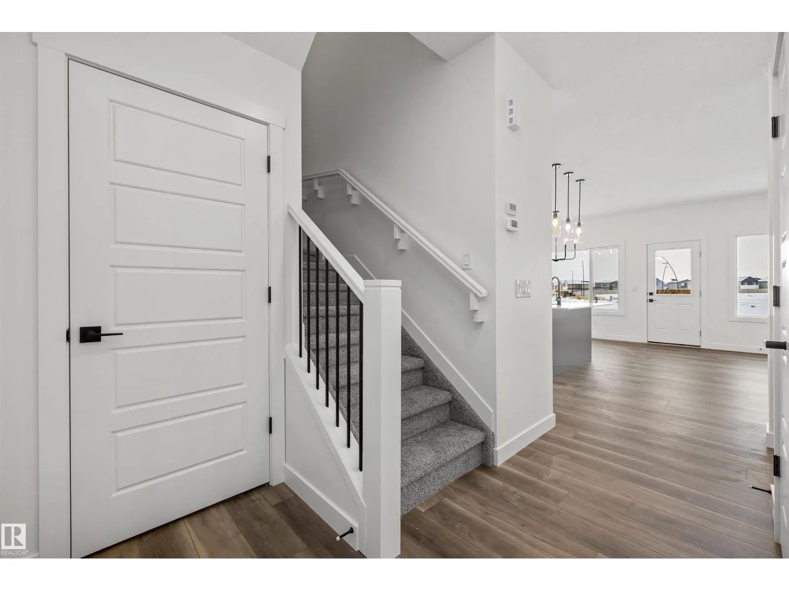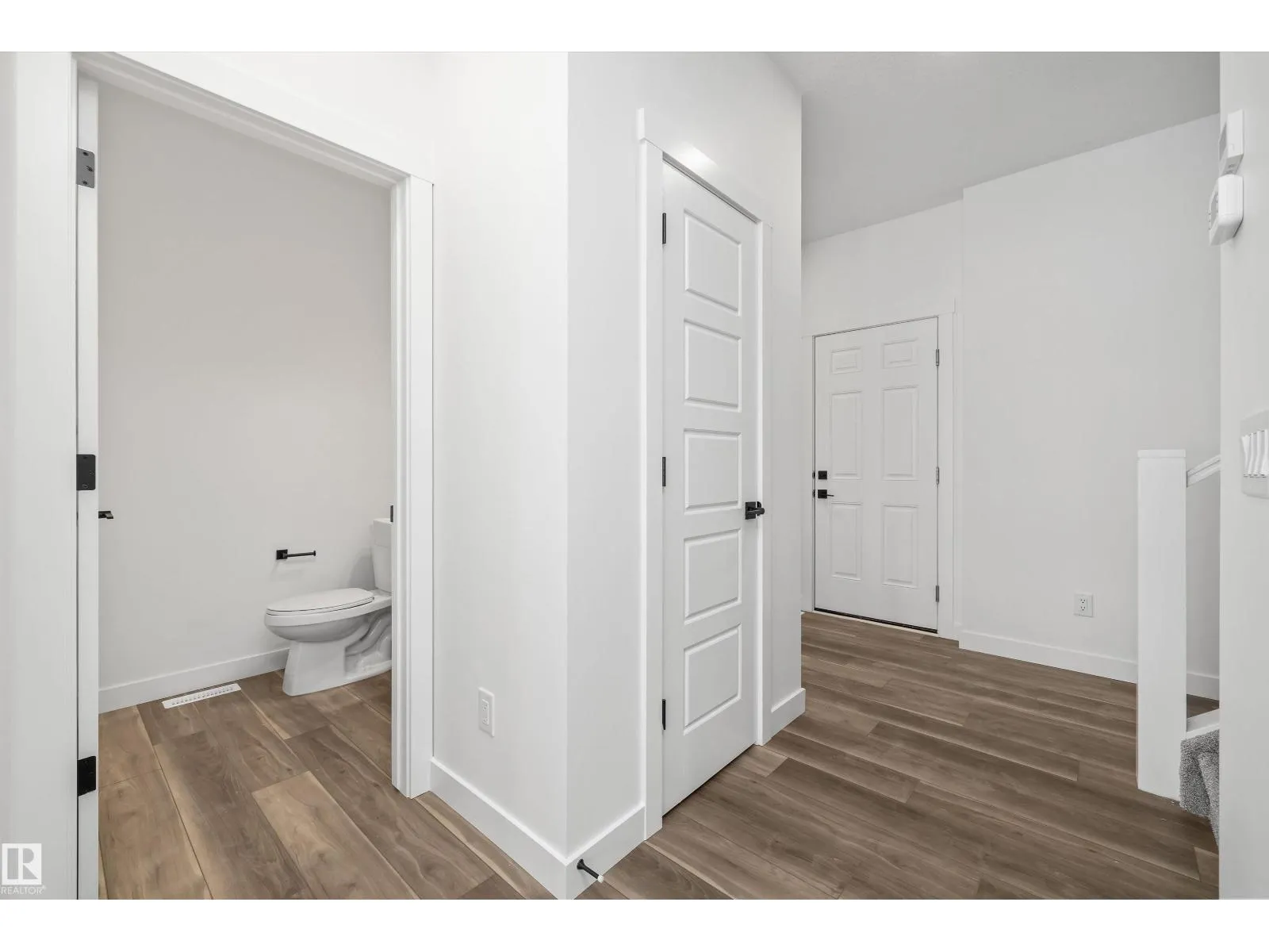 The Sylvan showcases elite craftsmanship, featuring 9â ceilings and Luxury Vinyl Plank flooring that spans from the welcoming foyer to a sun-drenched front great room. The central kitchen serves as a high-end hub with stone surfaces, a flush-ledge island, and premium soft-close cabinetry. A unique highlight is the main-floor fourth bedroom and adjacent full three-piece bath, offering a private space for guests or a home office near the rear nook and garden door. The second level balances privacy and utility, hosting a primary suite with a walk-in closet and ensuite, plus two additional bedrooms and a dedicated laundry closet. Finished with bold black hardware, a separate side entrance, and a basement rough-in, this layout offers versatile living on every level. Outside, a rear parking pad provides space for an optional double garage. (id:27476)