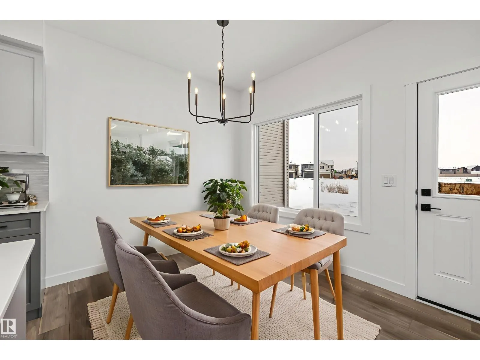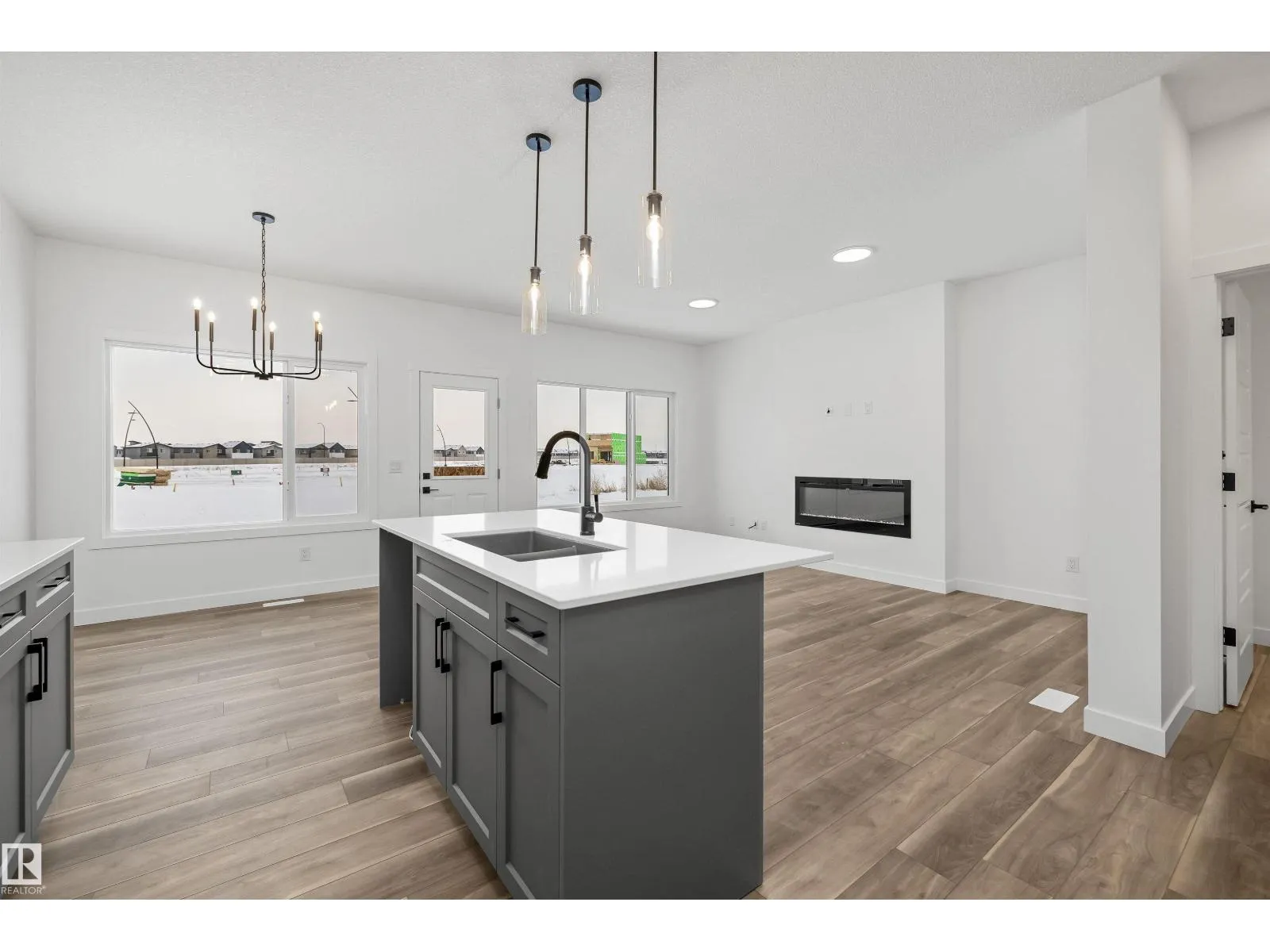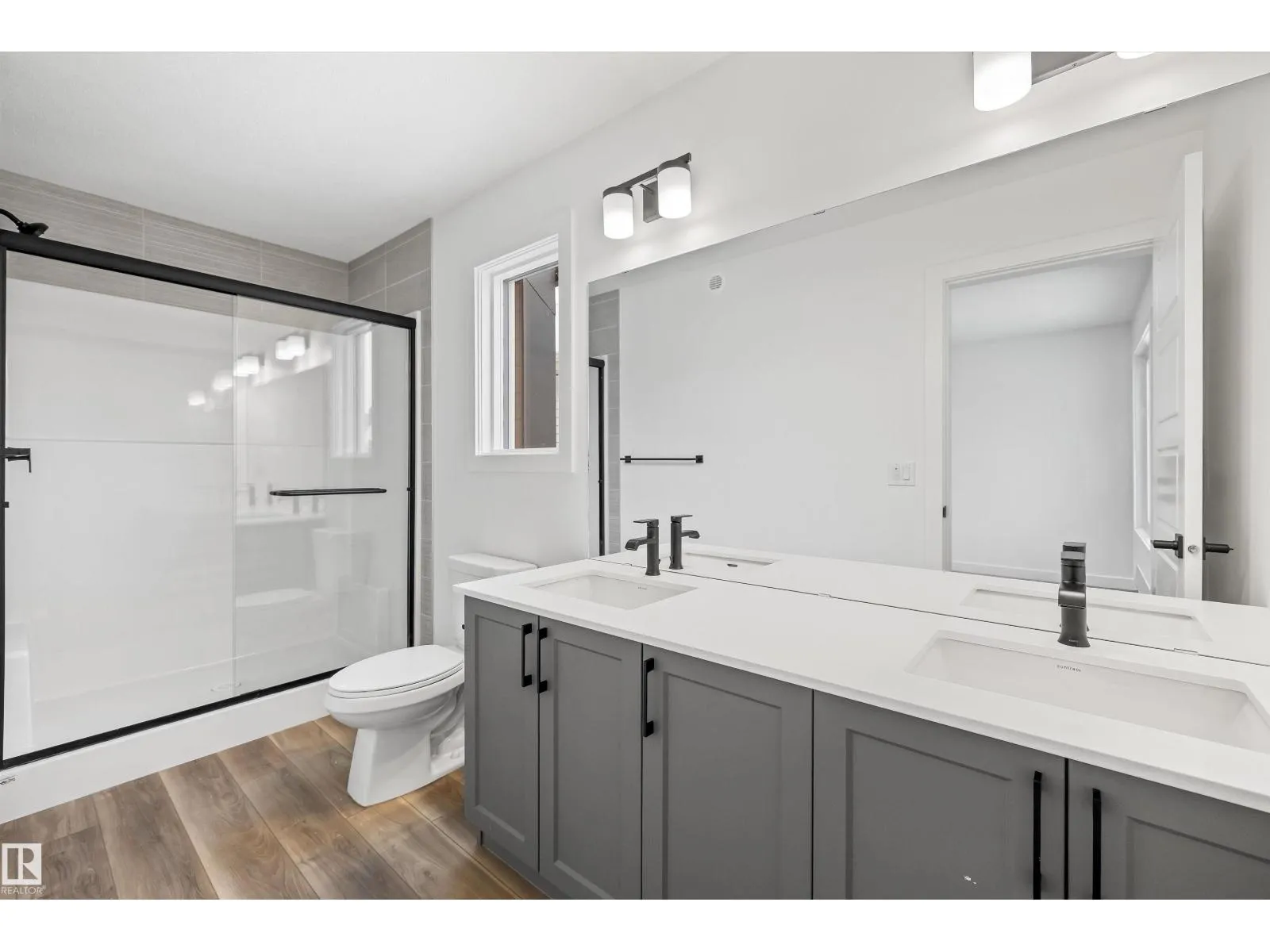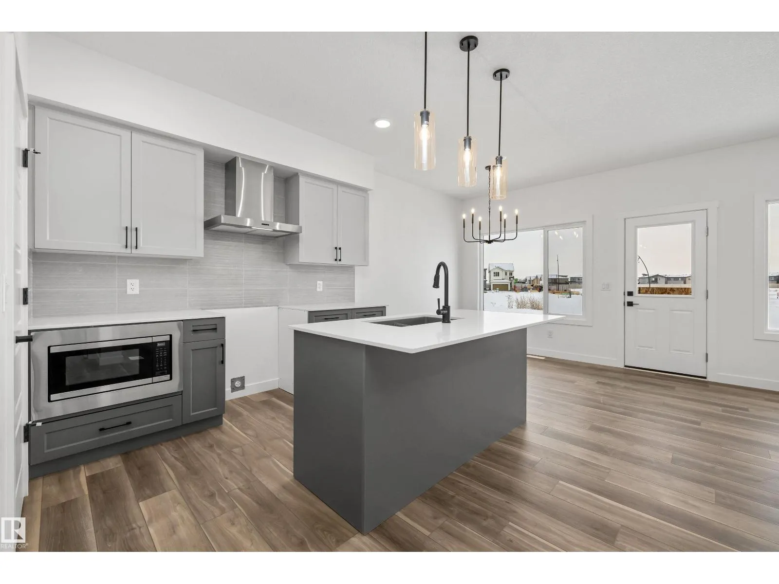 The Sylvan showcases elite craftsmanship, featuring 9â ceilings and Luxury Vinyl Plank flooring that spans from the welcoming foyer to a sun-drenched front great room. The central kitchen serves as a high-end hub with stone surfaces, a flush-ledge island, and premium soft-close cabinetry. A unique highlight is the main-floor fourth bedroom and adjacent full three-piece bath, offering a private space for guests or a home office near the rear nook and garden door. The second level balances privacy and utility, hosting a primary suite with a walk-in closet and ensuite, plus two additional bedrooms and a dedicated laundry closet. Finished with bold black hardware, a separate side entrance, and a basement rough-in, this layout offers versatile living on every level. Outside, a rear parking pad provides space for an optional double garage. (id:27476)