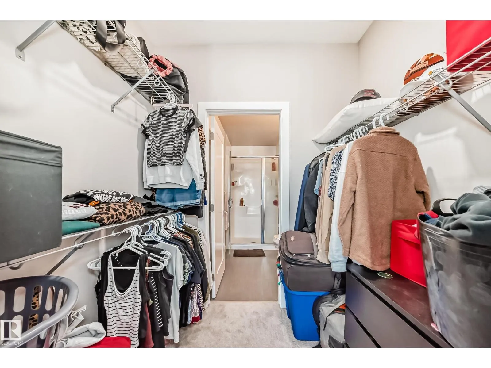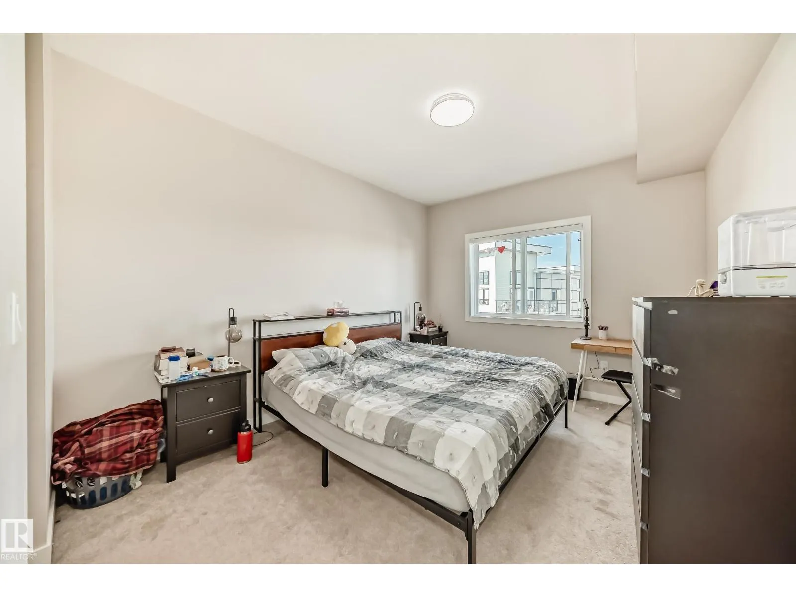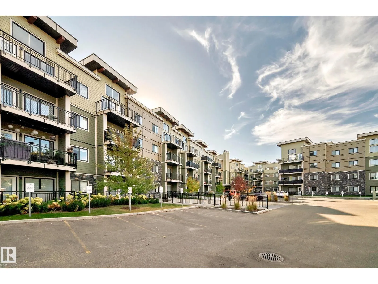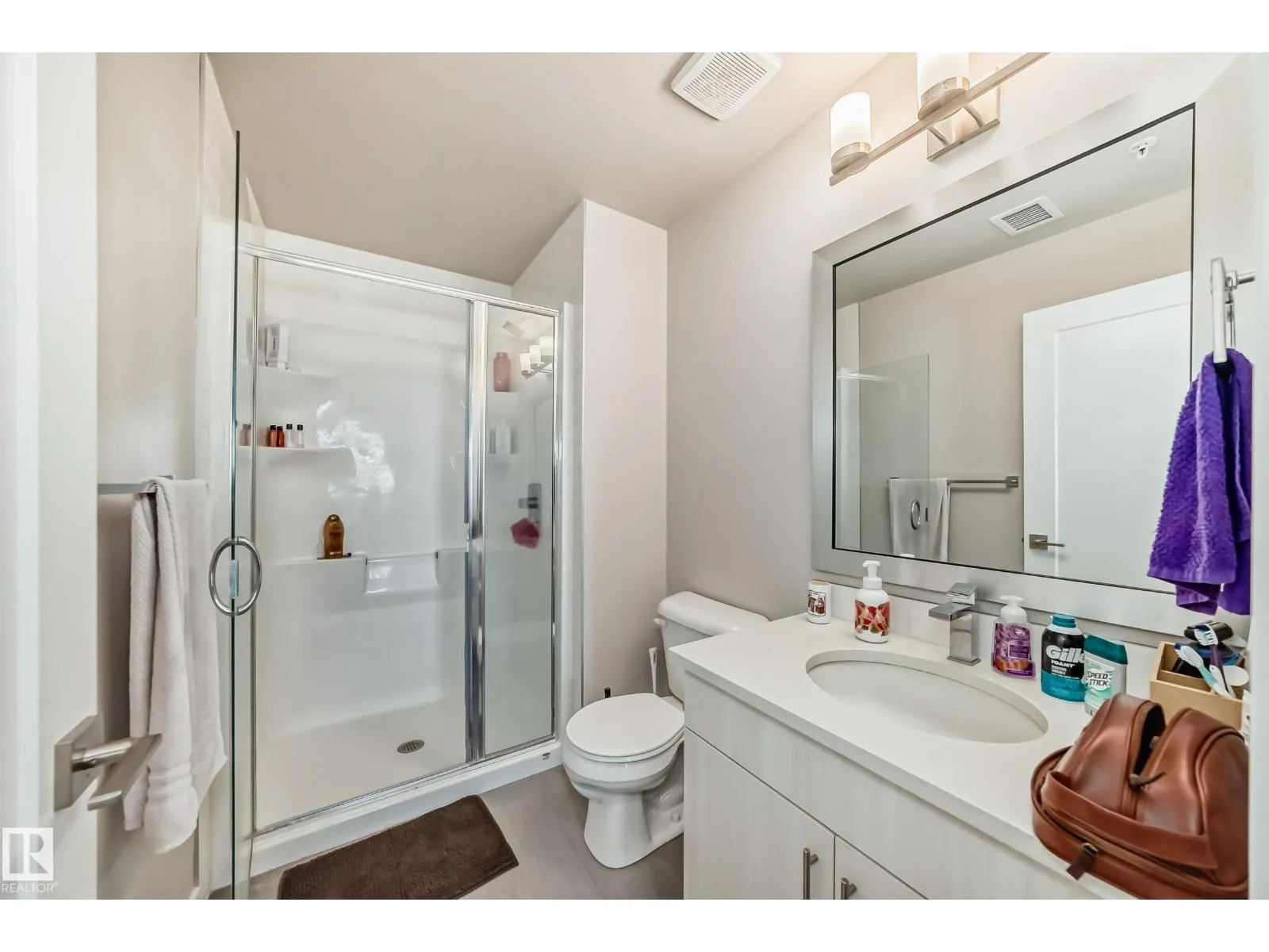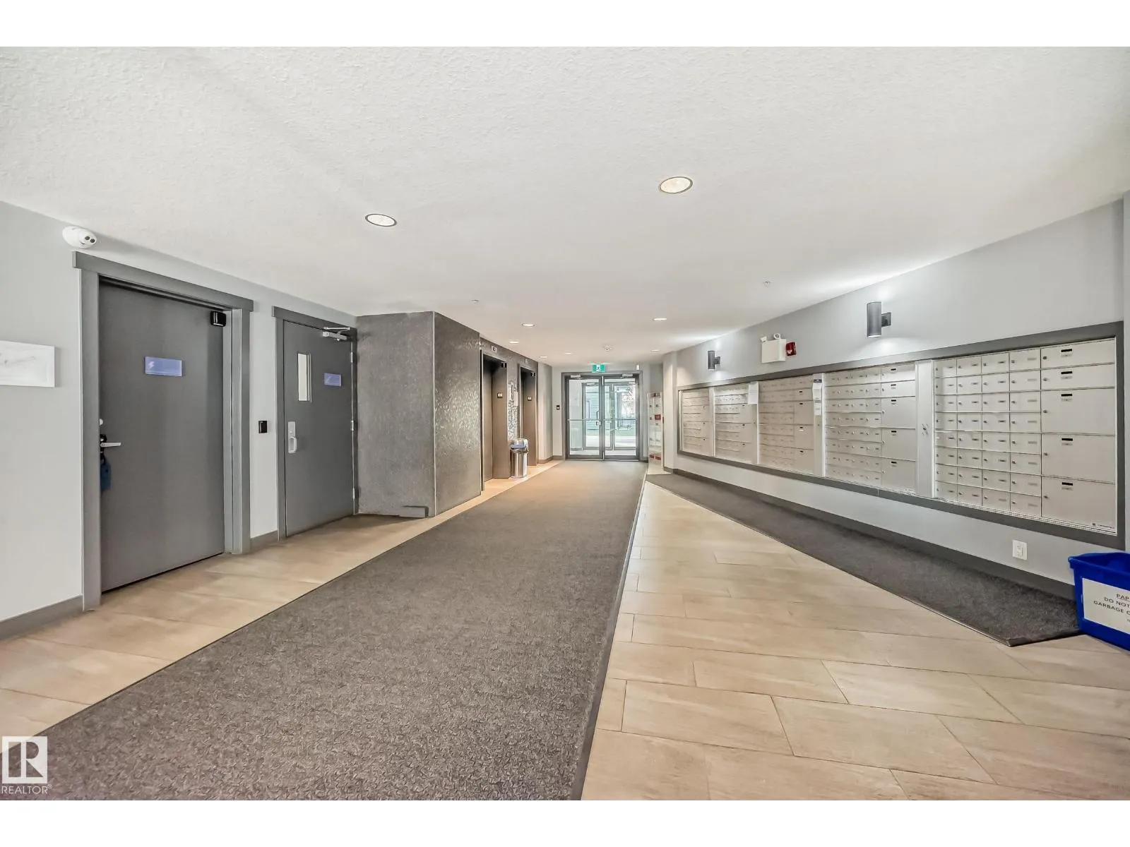 The Connaught at Griesbach - Welcome home to this stunning top-floor, north-facing 2 bedroom, 2 bathroom suite featuring a bright open-concept design and modern finishes throughout. With a builderâs size of 1,000 sq. ft., this suite offers quartz countertops, soft-close cabinetry, and low-maintenance vinyl plank flooring in the main living areas, complemented by plush carpet in the bedrooms. The impressive two-storey living room is filled with natural light from expansive windows, with a bedroom conveniently located on each side for added privacy. Step out onto the spacious deck, complete with a natural gas hookup for barbecuing. Enjoy the many building amenities, including a fitness centre, social/amenity room, library, car wash bay, and secure key fob access. Additional features include Hunter Douglas window coverings, stainless steel appliances, in-suite laundry with stacking washer and dryer, and one underground parking stall. Building was treated with fire retardant spray during construction. (id:27476)