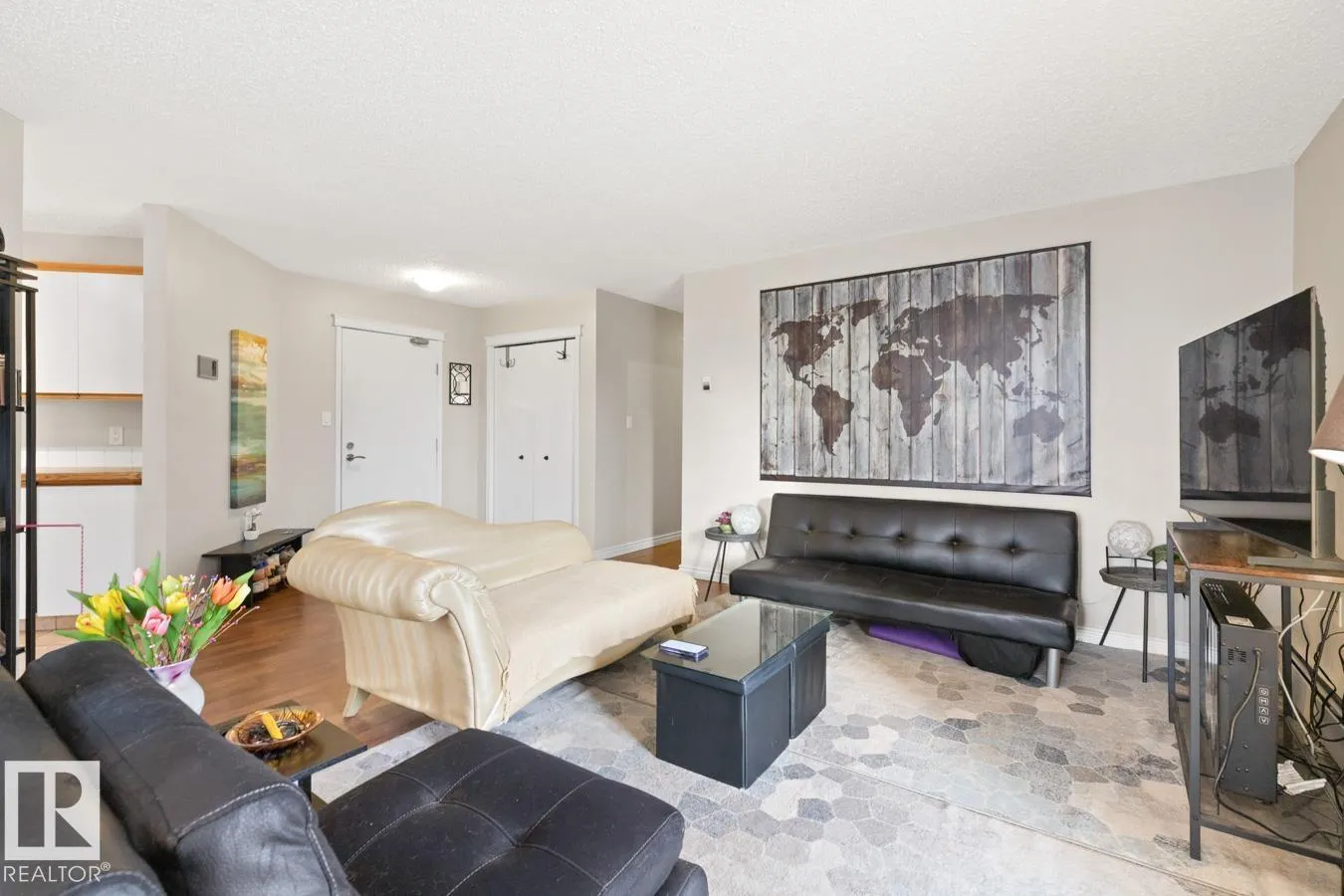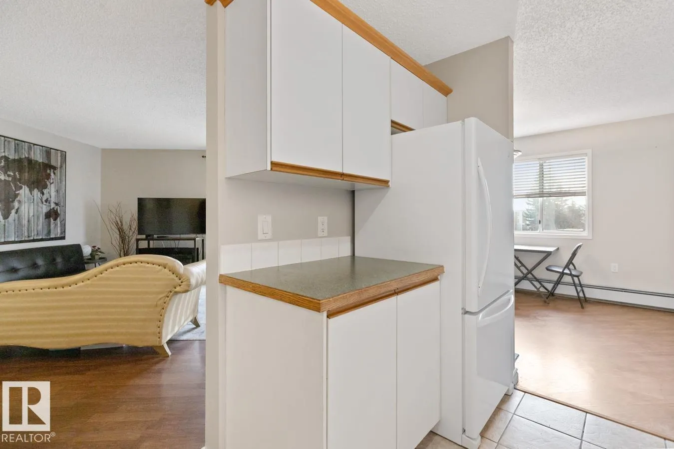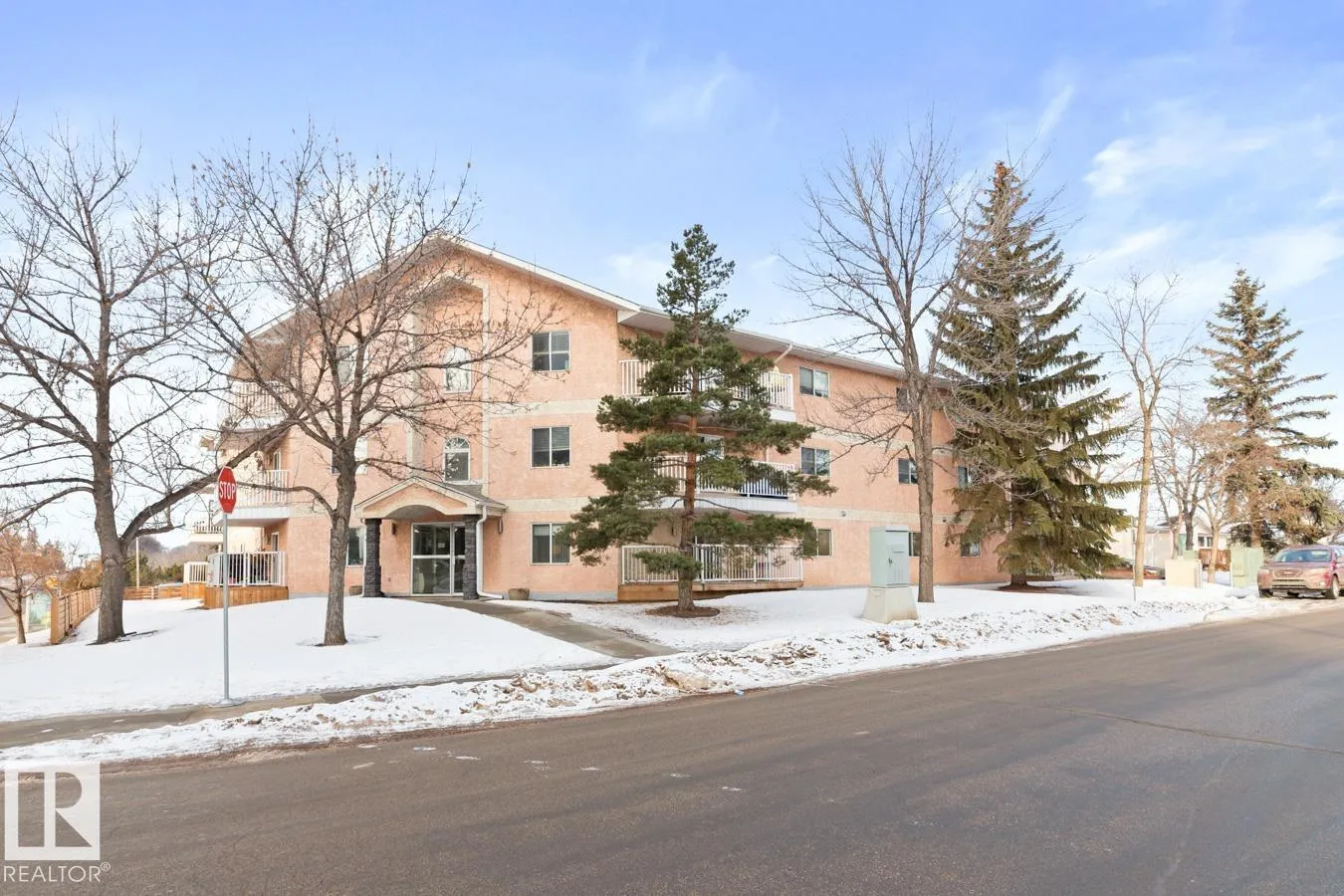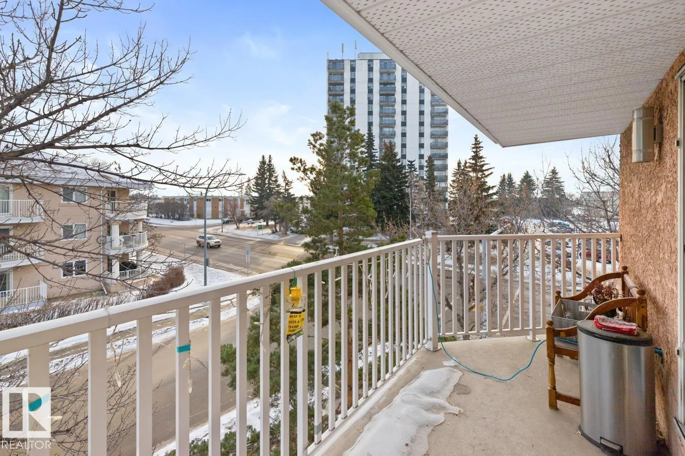 Welcome to Klass Manor in Terrace Heights, home to this beautifully maintained TOP FLOOR condo featuring 2 bedrooms, 1.5 baths & 1 surface parking stall. Step inside to a bright, functional layout filled with natural light and laminate flooring throughout. The kitchen offers an abundance of cabinetry and opens seamlessly to the dining area. The spacious living room provides access to the patio, where you can enjoy city views. The king-sized primary bedroom features a double closet and private ensuite. A generous second bedroom, 4-piece main bath, in-suite laundry, and storage complete the home. Ideally located just steps from shopping, medical facilities, public transit, and with easy access to downtown Edmonton. Enjoy carefree condo living in this well-managed complex with low condo fees including HEAT & WATER. (id:27476)