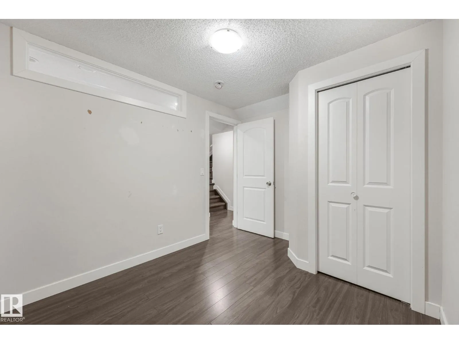 Investorâs or First time buyers⦠donât miss Out on this Fabulous 4 bed, 3.5 bath half duplex with attached garage and fully finished basement. Spacious modern kitchen with stylish cabinets, backsplash and laminate flooring. Open-concept dining and living area. Upper level offers 3 bedrooms including primary with 4pc ensuite. Finished basement includes 4th bedroom and 3pc bath. Landscaped, fully fenced yard backing onto walking trail. Prime location near parks, schools, LRT, Manning Town Centre and easy Anthony Henday access. Quick possession available (id:27476)
