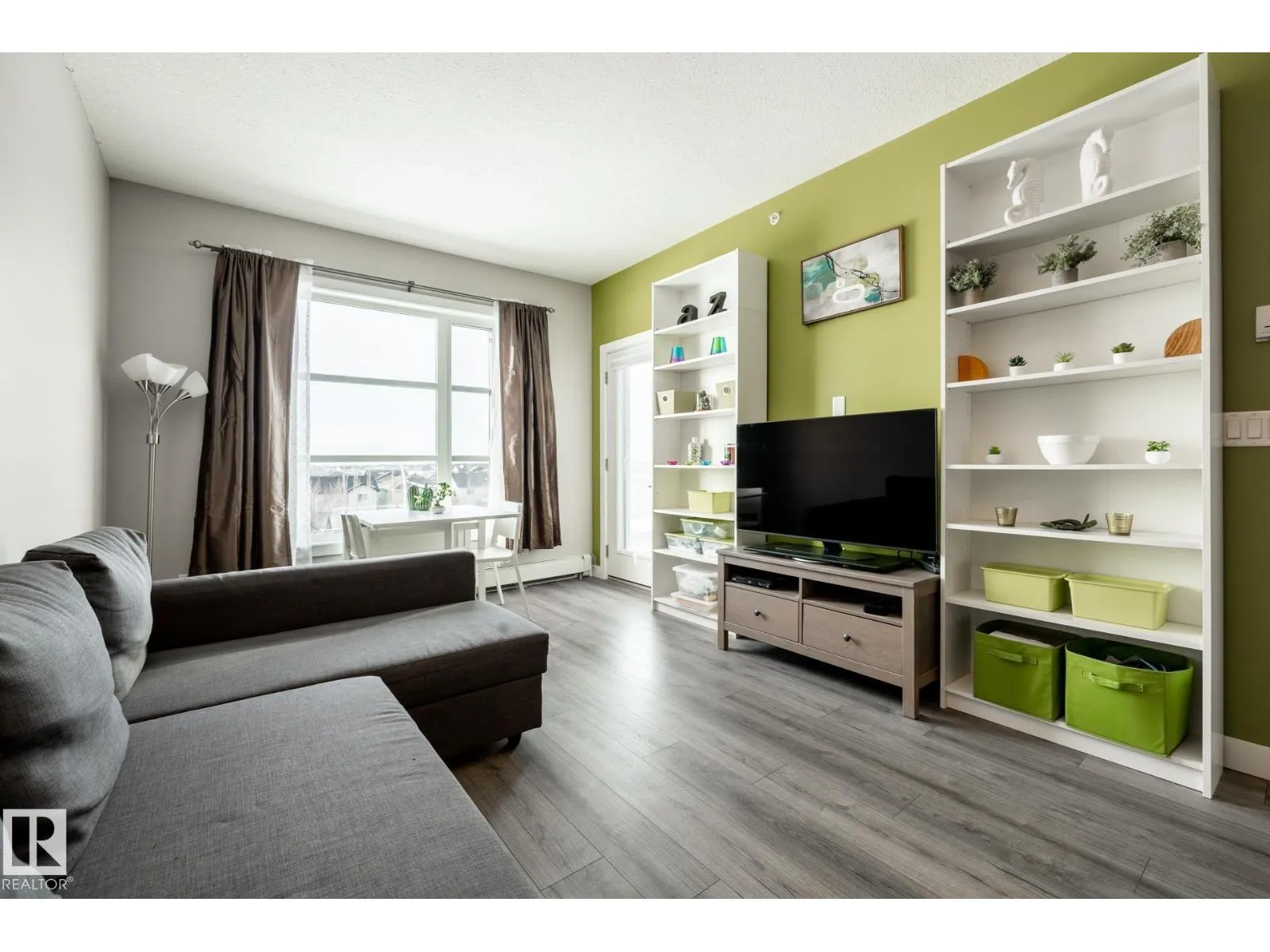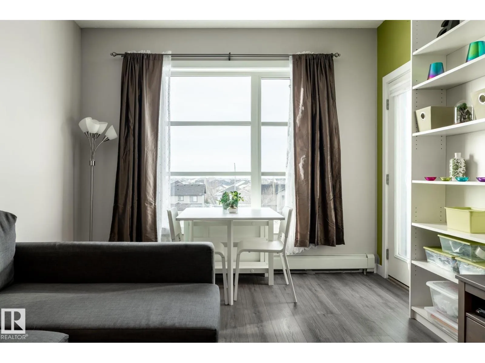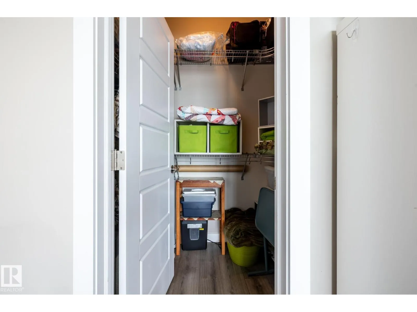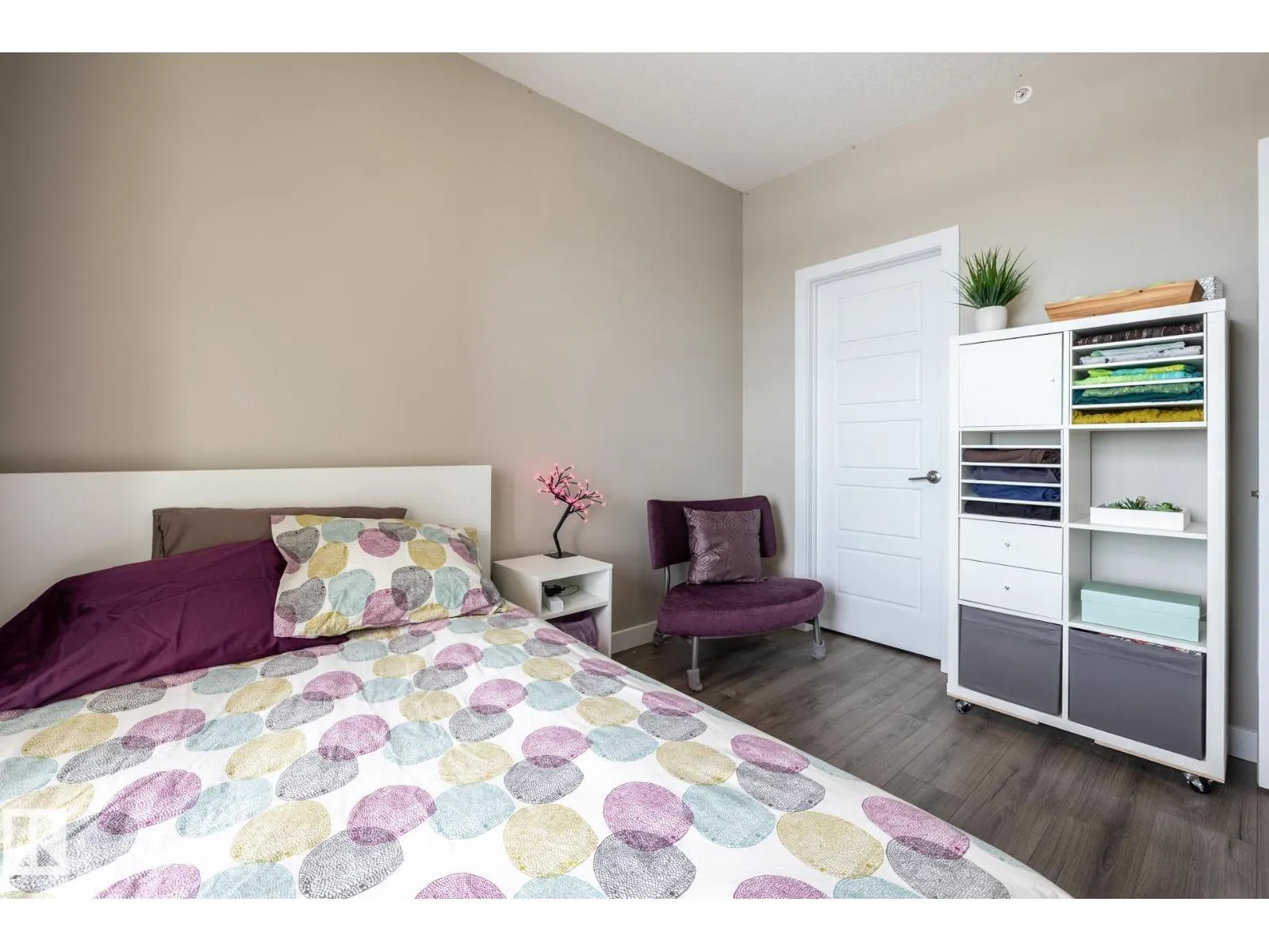 Welcome to life at The Ion in Ambleside, one of Southwest Edmontonâs most loved condo buildings, surrounded by parks, trails and the shops, restaurants, and everyday conveniences of Windermere. This original-owner, top-floor unit offers sunny west-facing views & a bright, welcoming feel. Fresh paint and brand-new laminate flooring with acoustic underlay throughout - including the bedroom (with condo approval), provides improved sound insulation and a fresh, modern, cohesive look. The open layout features 9-foot ceilings, a spacious kitchen with brand-new dishwasher, a built-in desk ideal for work-from-home days, bedroom with walk-in closet, and a laundry room with extra storage plus a new Electrolux washer & dryer. Enjoy beautiful views and evening sunsets from the west-facing patio, along with the added convenience of underground heated parking and a separate storage unit. Perfect as a first home, a smart downsize, or an investment opportunity in a building that continues to be a favourite! (id:27476)