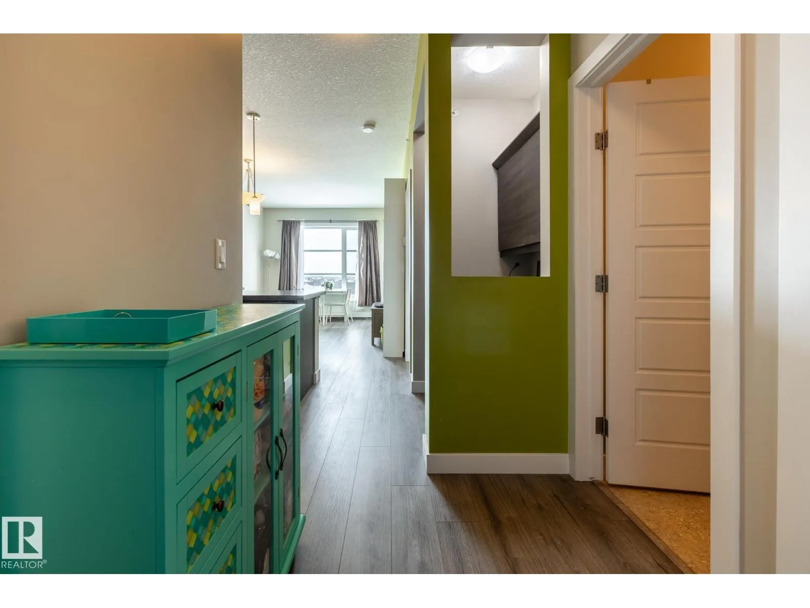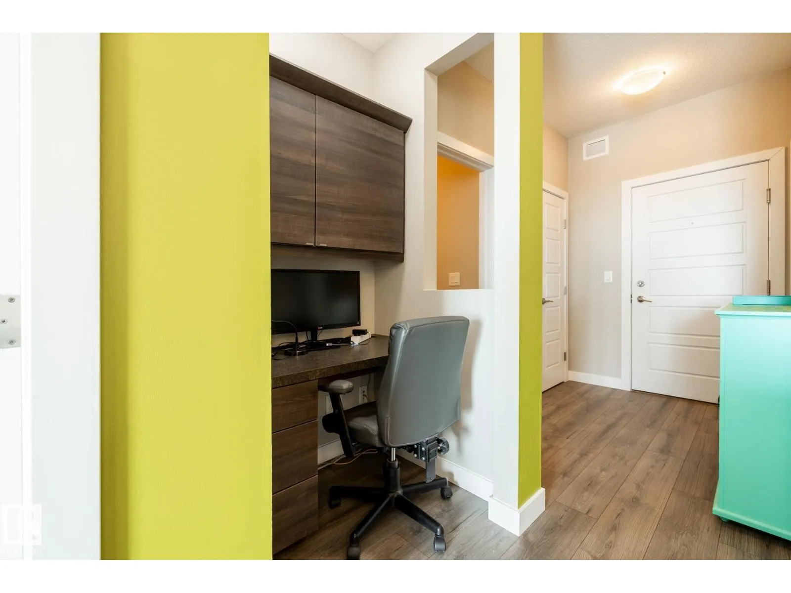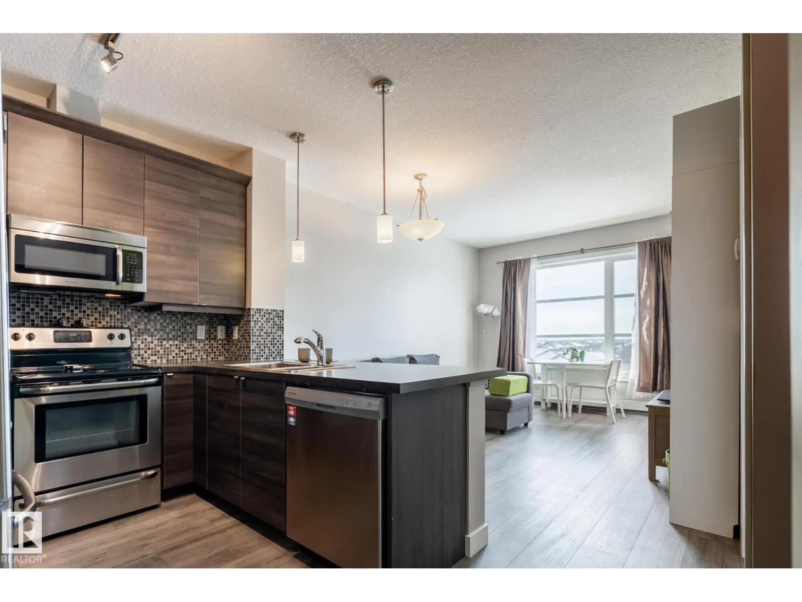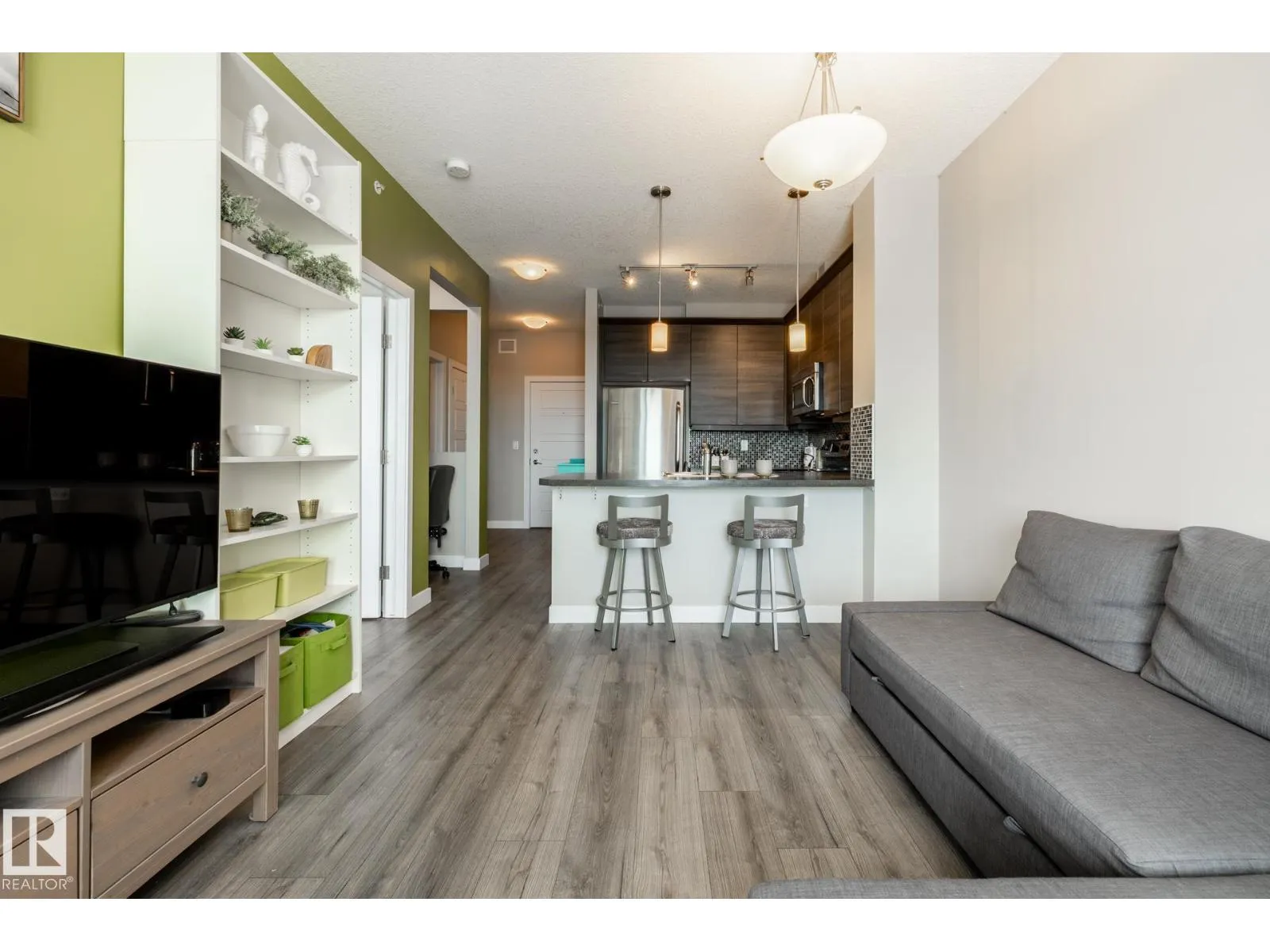 Welcome to life at The Ion in Ambleside, one of Southwest Edmontonâs most loved condo buildings, surrounded by parks, trails and the shops, restaurants, and everyday conveniences of Windermere. This original-owner, top-floor unit offers sunny west-facing views & a bright, welcoming feel. Fresh paint and brand-new laminate flooring with acoustic underlay throughout - including the bedroom (with condo approval), provides improved sound insulation and a fresh, modern, cohesive look. The open layout features 9-foot ceilings, a spacious kitchen with brand-new dishwasher, a built-in desk ideal for work-from-home days, bedroom with walk-in closet, and a laundry room with extra storage plus a new Electrolux washer & dryer. Enjoy beautiful views and evening sunsets from the west-facing patio, along with the added convenience of underground heated parking and a separate storage unit. Perfect as a first home, a smart downsize, or an investment opportunity in a building that continues to be a favourite! (id:27476)