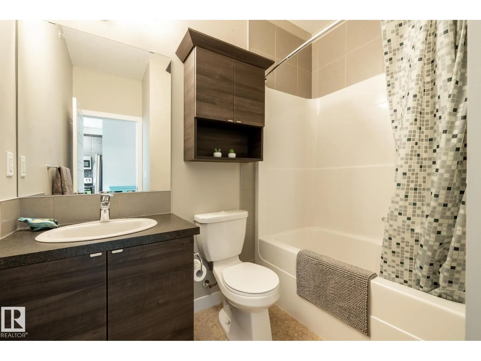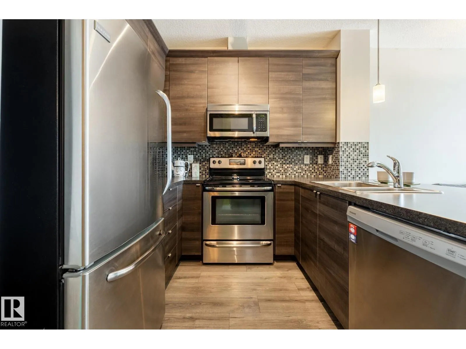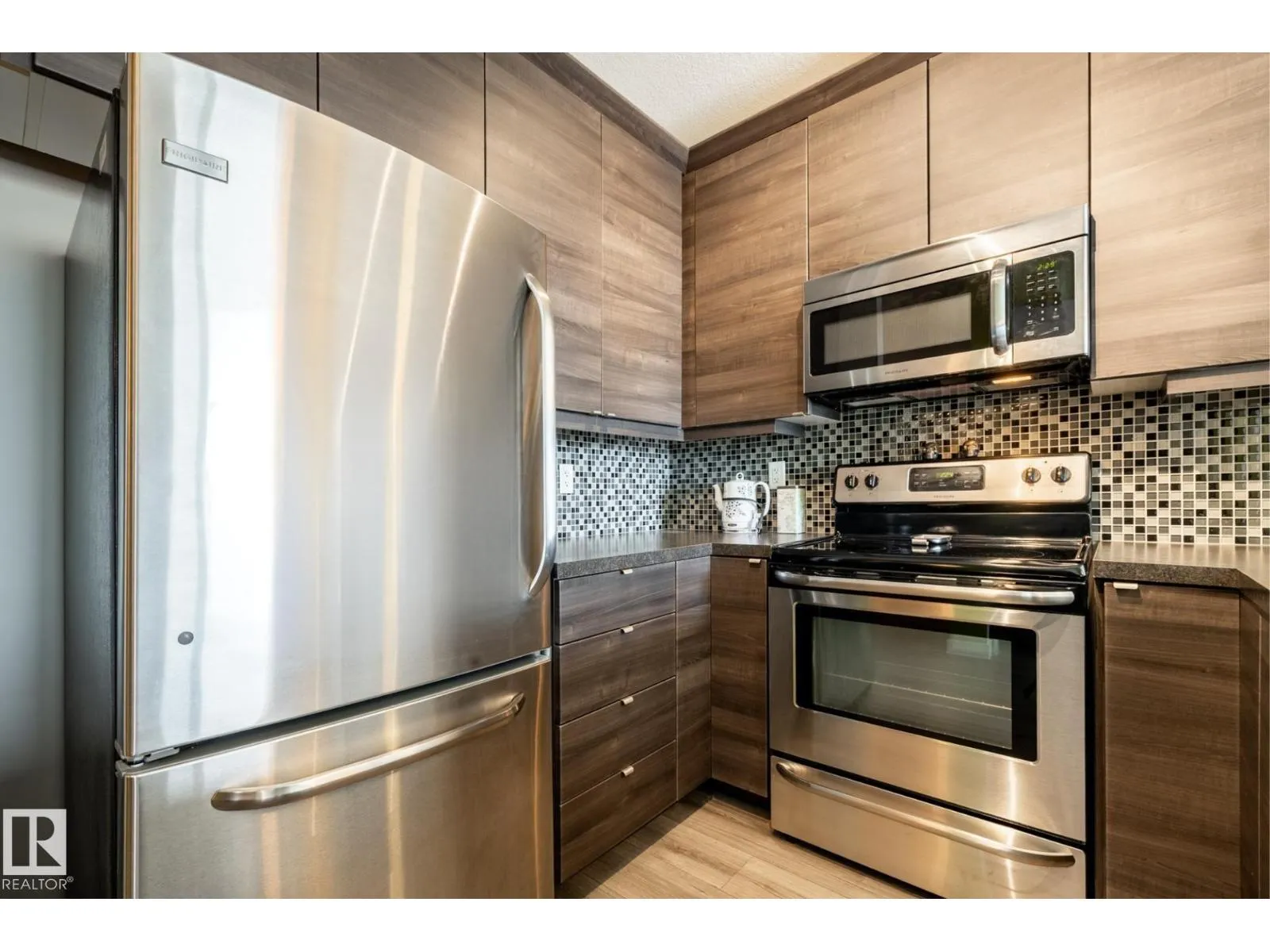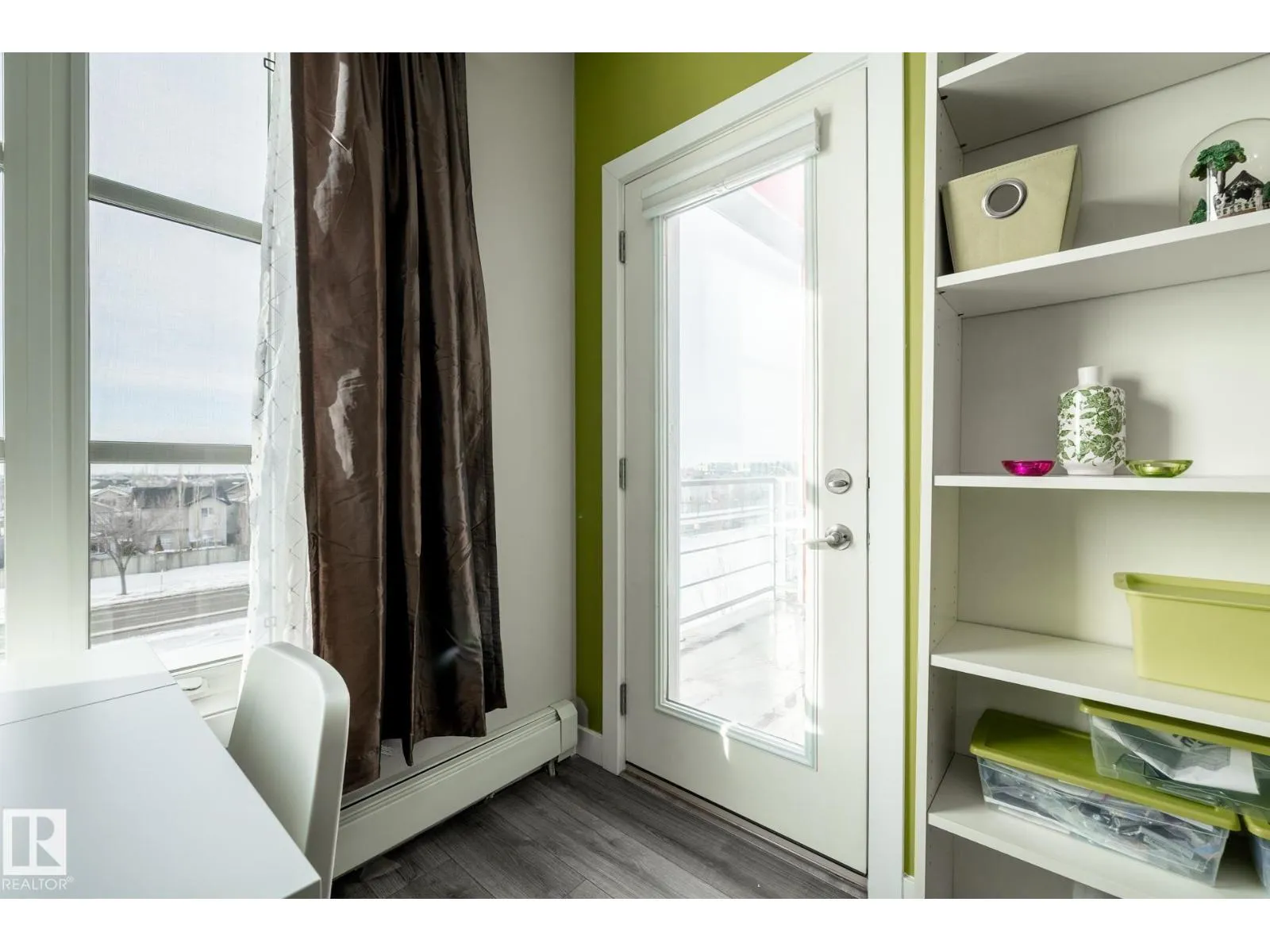 Welcome to life at The Ion in Ambleside, one of Southwest Edmontonâs most loved condo buildings, surrounded by parks, trails and the shops, restaurants, and everyday conveniences of Windermere. This original-owner, top-floor unit offers sunny west-facing views & a bright, welcoming feel. Fresh paint and brand-new laminate flooring with acoustic underlay throughout - including the bedroom (with condo approval), provides improved sound insulation and a fresh, modern, cohesive look. The open layout features 9-foot ceilings, a spacious kitchen with brand-new dishwasher, a built-in desk ideal for work-from-home days, bedroom with walk-in closet, and a laundry room with extra storage plus a new Electrolux washer & dryer. Enjoy beautiful views and evening sunsets from the west-facing patio, along with the added convenience of underground heated parking and a separate storage unit. Perfect as a first home, a smart downsize, or an investment opportunity in a building that continues to be a favourite! (id:27476)