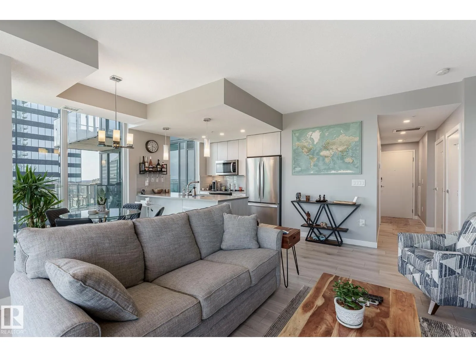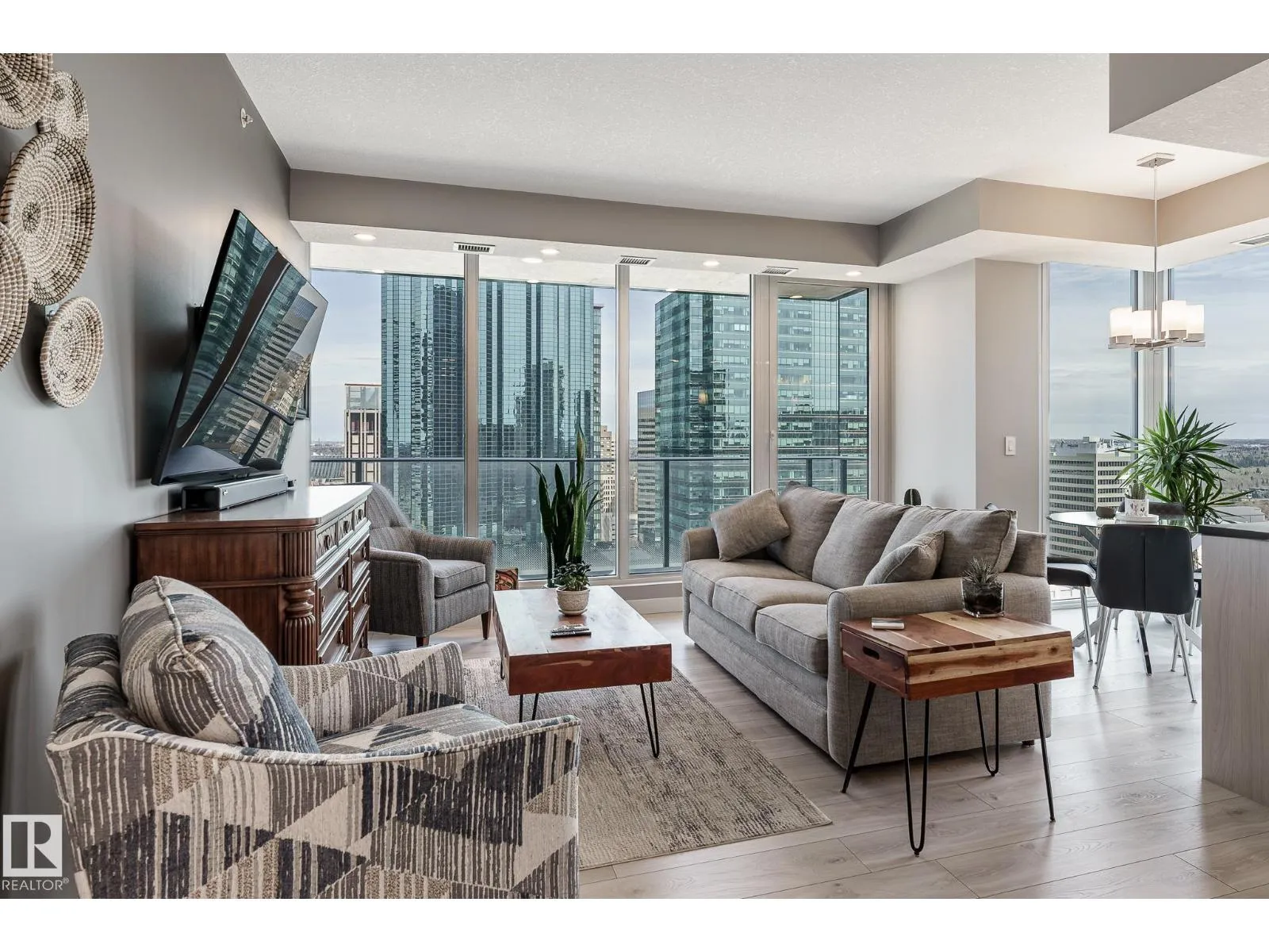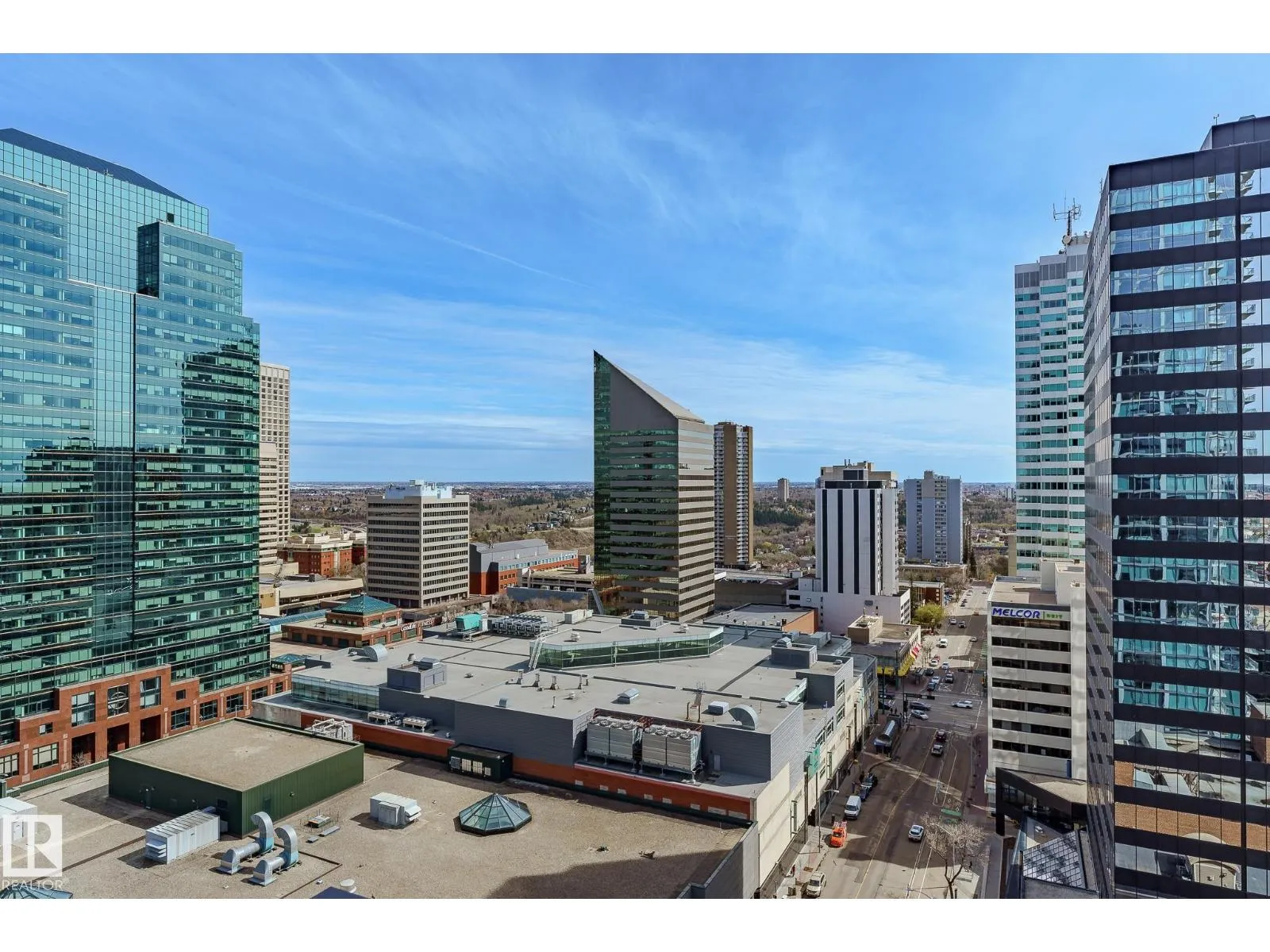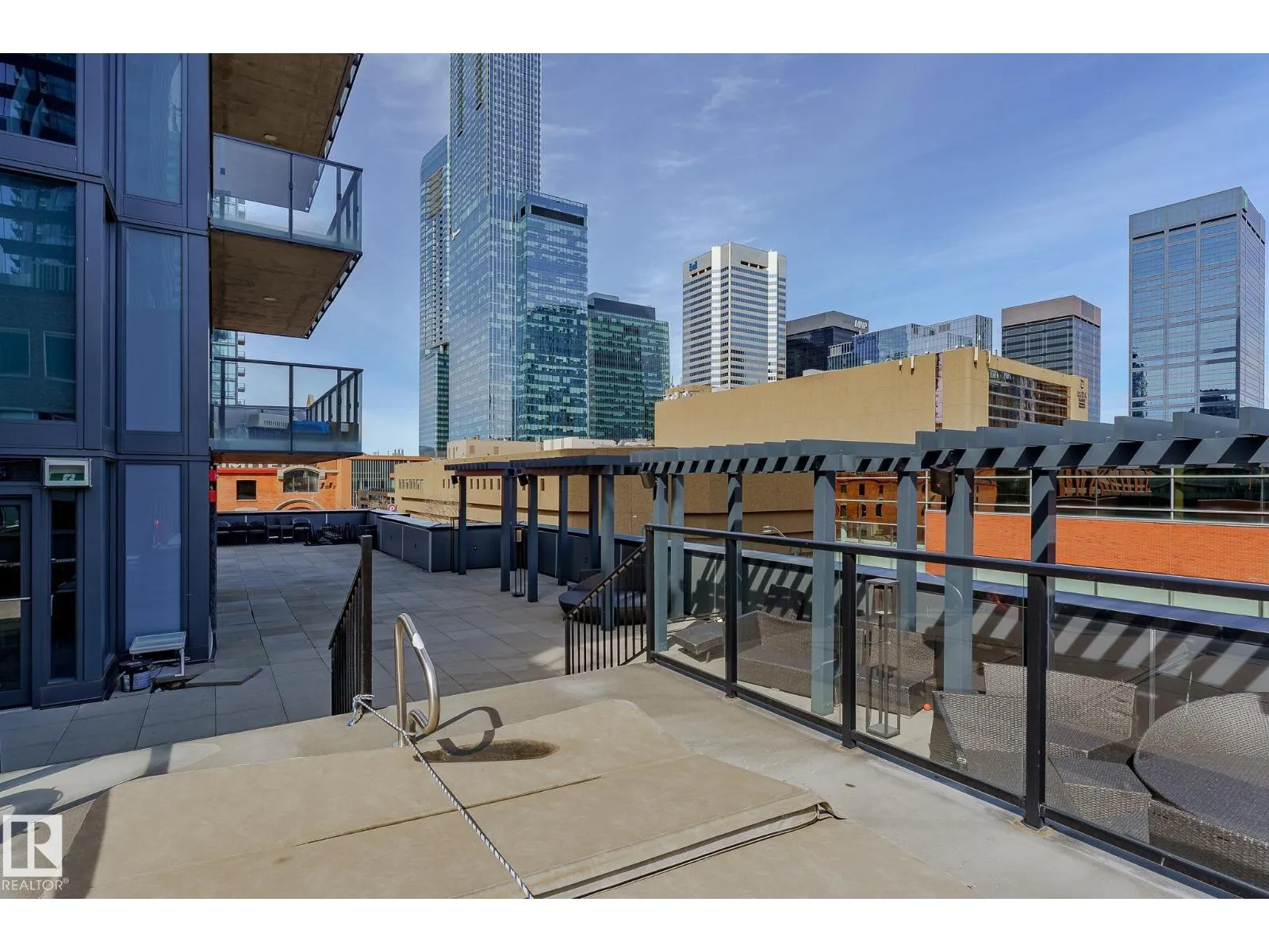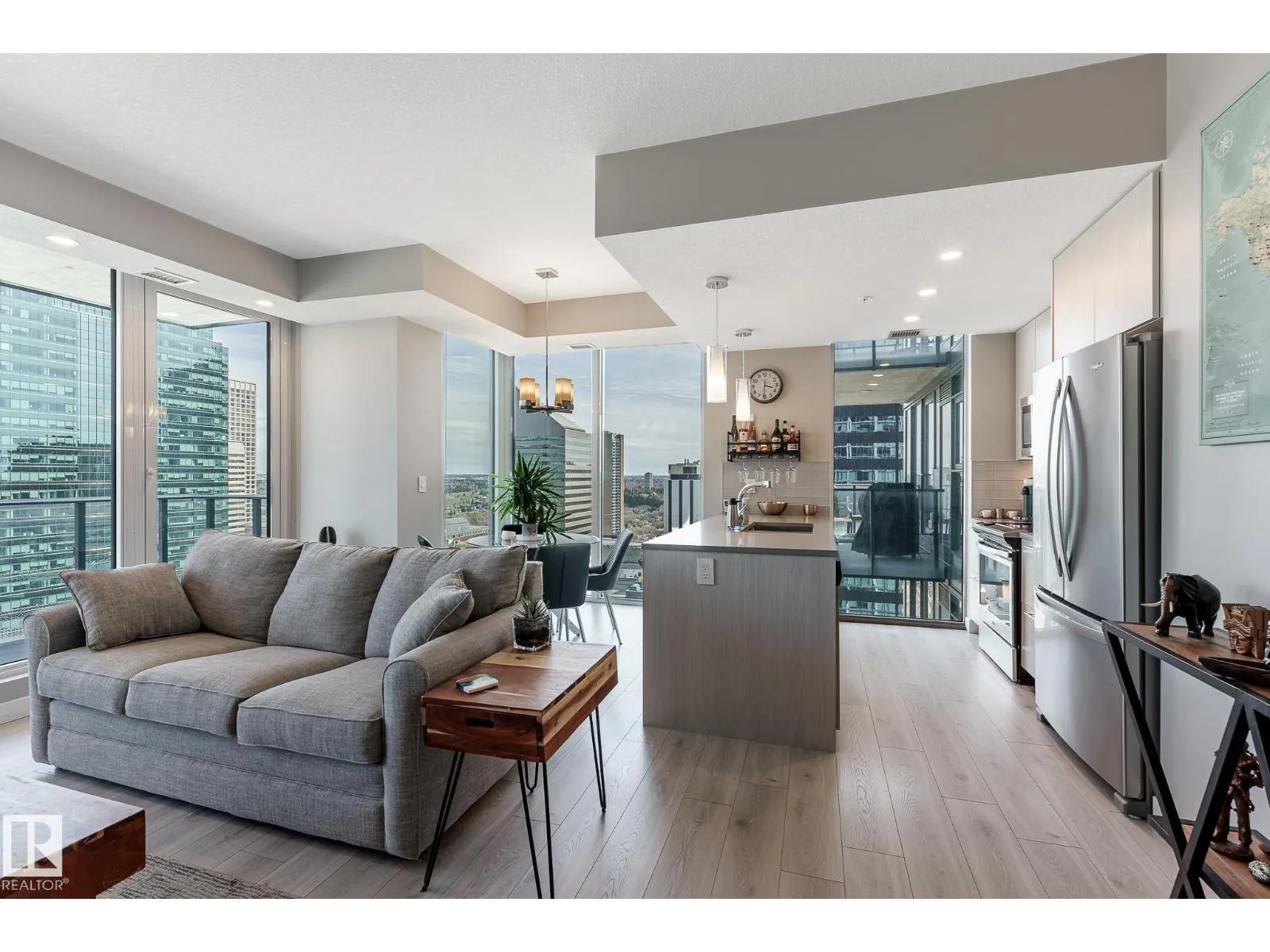 CUSTOM ONE OF A KIND UNIT IN THE WHOLE COMPLEX! Boasting the Square Footage of a Two Bedroom this One Bedroom / Two Bath unit has lower condo fees, great space is in mint condition. You get all the advantages of a larger unit with East, North, and South Views. Largest balcony!! Floor to ceiling windows offering unobstructed views of Rogers Place, Stantec Tower, and the River Valley. This unit features a modern light color pallet, designer kitchen with sit up bar, quartz counter tops throughout, built in appliances, spacious living room, dining area and window coverings! Encore Tower has a gorgeous 3 storey lobby w/full concierge service & an expansive amenity floor including a fitness facility & indoor/outdoor entertaining lounge. Located on the corner of 102 Ave & 103 Street, just steps from Rogers Arena, ICE District, restaurants, coffee shops. Title Parking Stall #220 is conveniently located on P2 next to the elevator (This is definitely a huge bonus). This is a Must See! (id:27476)