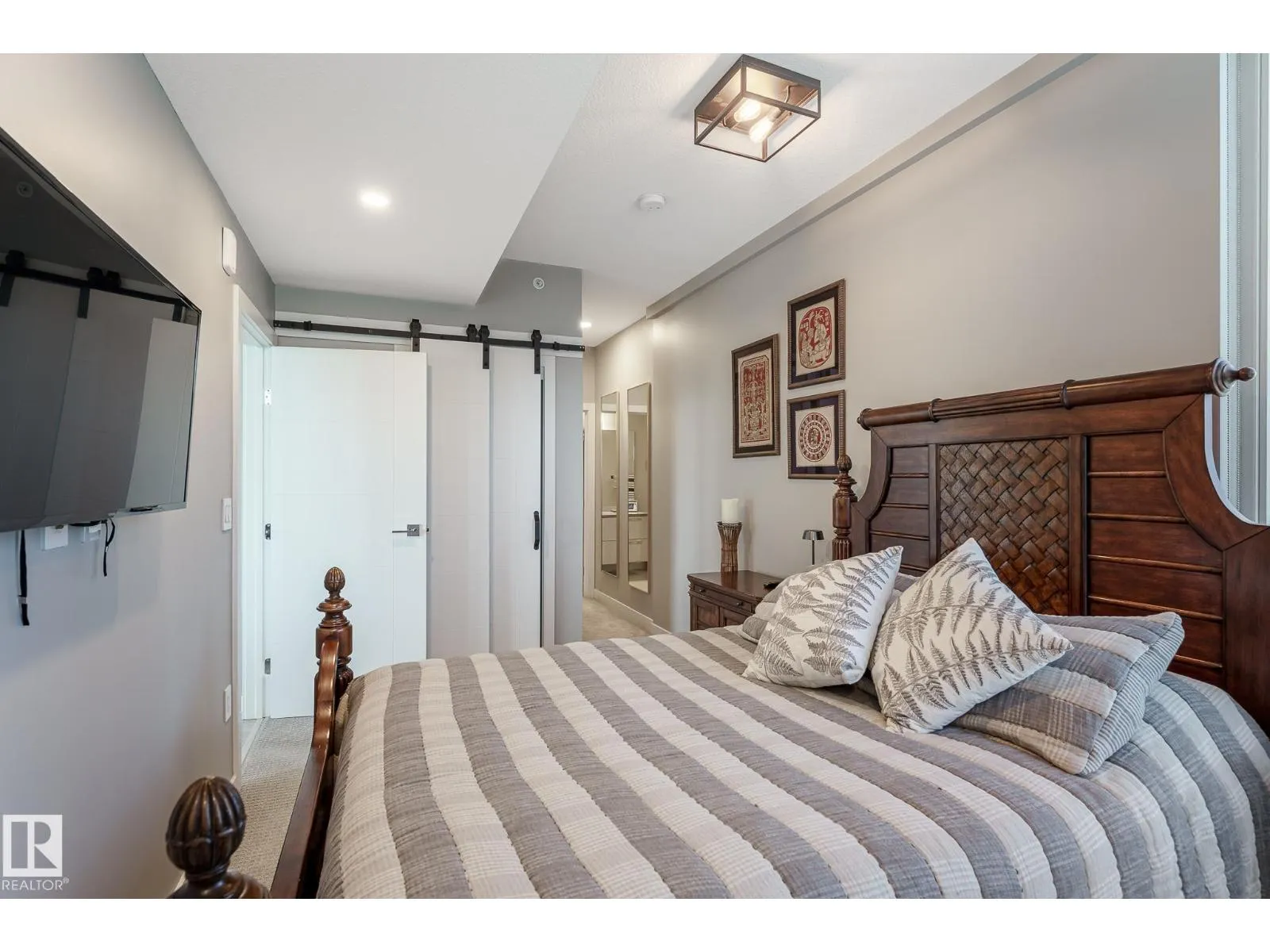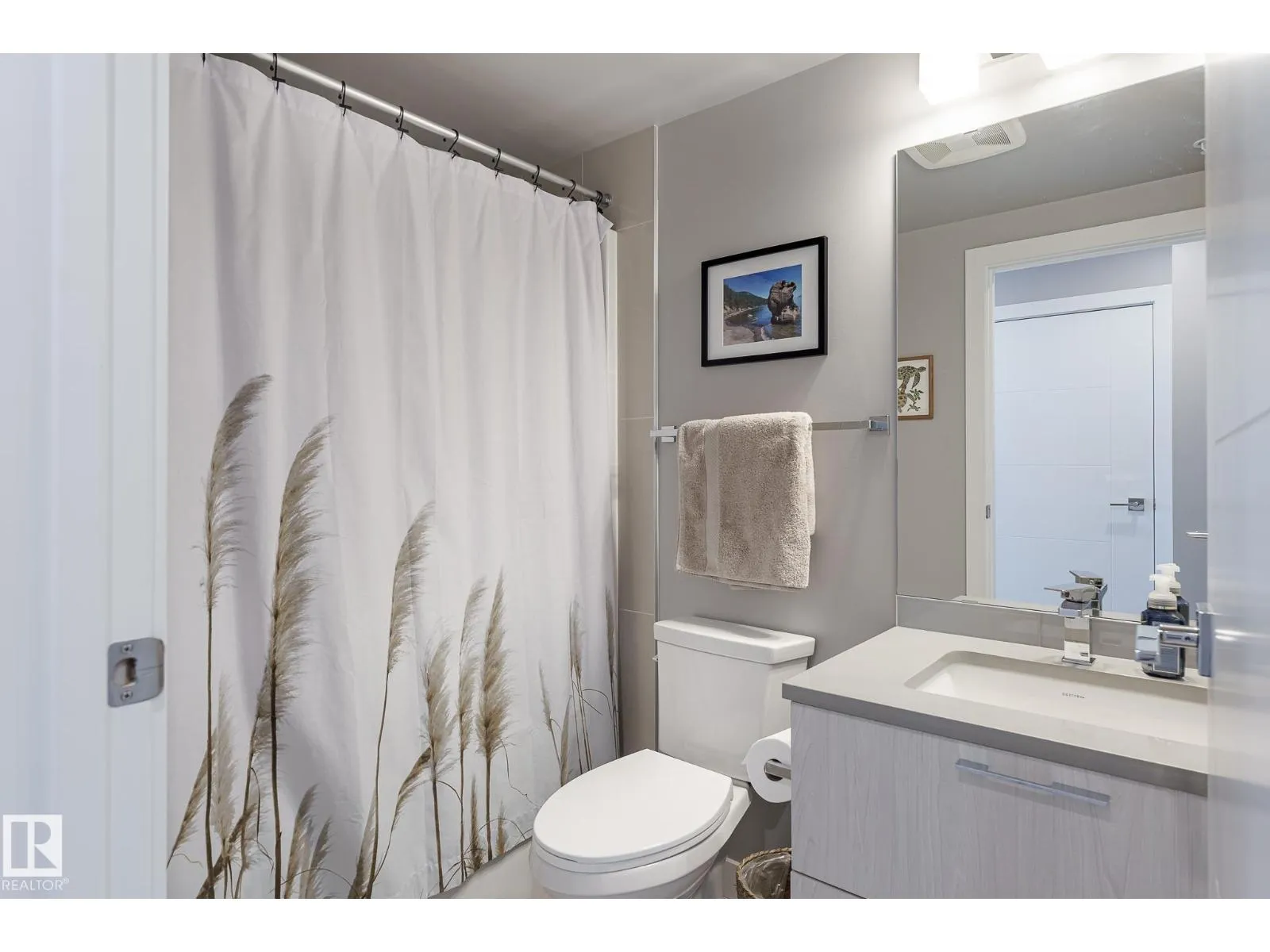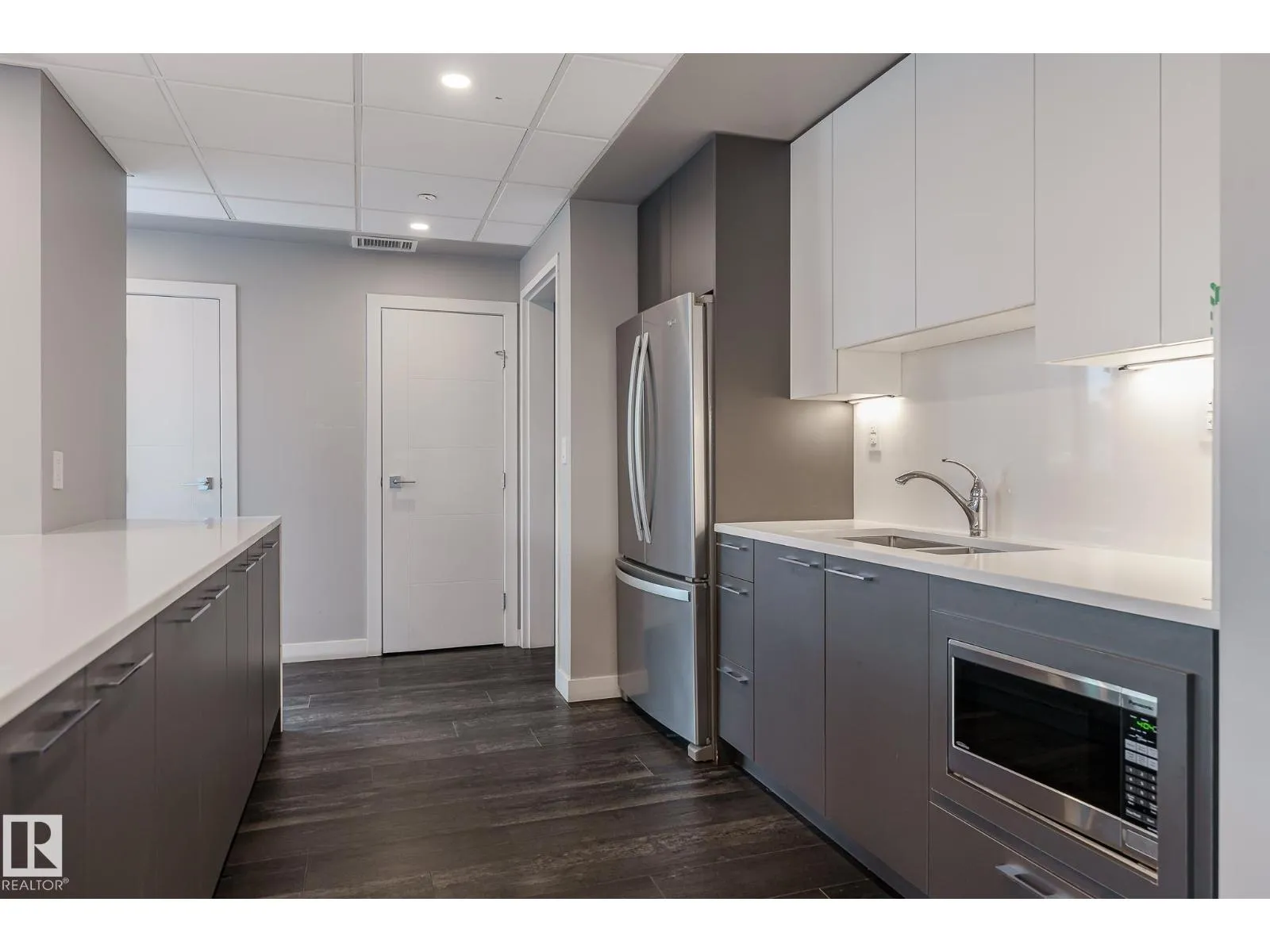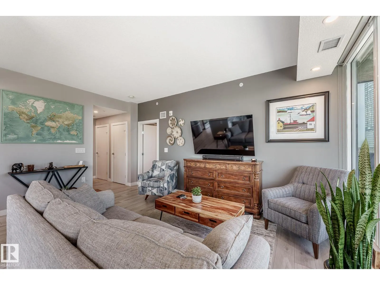 CUSTOM ONE OF A KIND UNIT IN THE WHOLE COMPLEX! Boasting the Square Footage of a Two Bedroom this One Bedroom / Two Bath unit has lower condo fees, great space is in mint condition. You get all the advantages of a larger unit with East, North, and South Views. Largest balcony!! Floor to ceiling windows offering unobstructed views of Rogers Place, Stantec Tower, and the River Valley. This unit features a modern light color pallet, designer kitchen with sit up bar, quartz counter tops throughout, built in appliances, spacious living room, dining area and window coverings! Encore Tower has a gorgeous 3 storey lobby w/full concierge service & an expansive amenity floor including a fitness facility & indoor/outdoor entertaining lounge. Located on the corner of 102 Ave & 103 Street, just steps from Rogers Arena, ICE District, restaurants, coffee shops. Title Parking Stall #220 is conveniently located on P2 next to the elevator (This is definitely a huge bonus). This is a Must See! (id:27476)