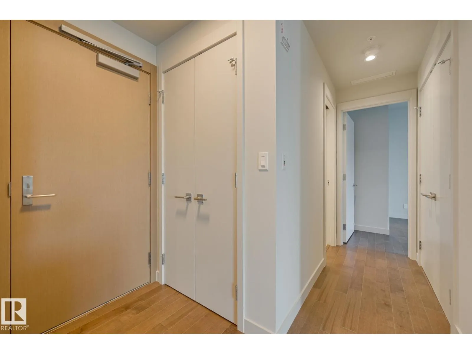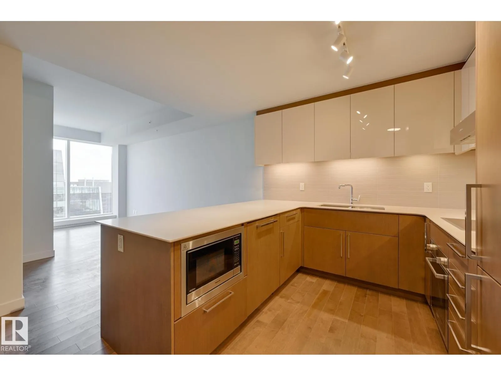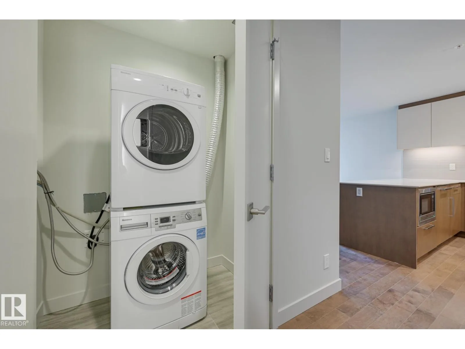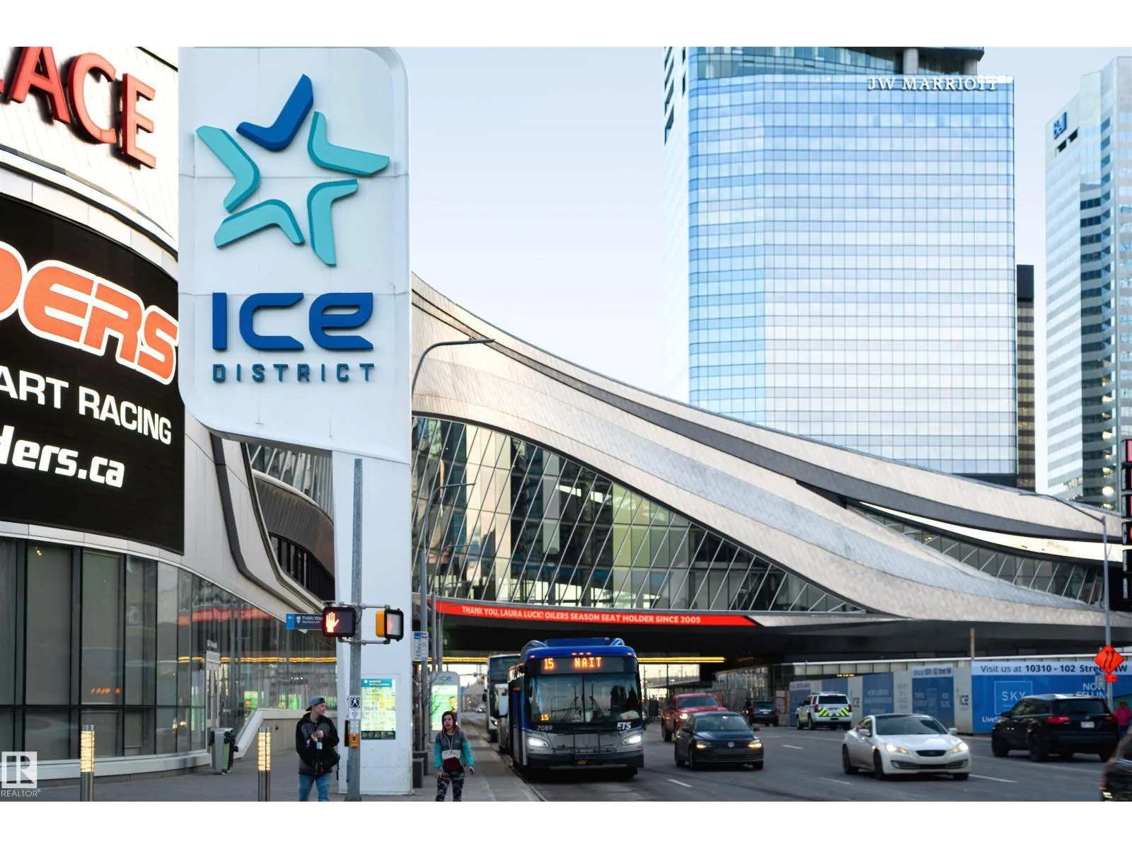 Beautiful 2-Bedroom, 2 Full Bathroom suite available at the Legends Private Residences. Favorite features include a clean and linear layout, spacious peninsula kitchen with additional span of upper cabinets, fully integrated appliances, and ceaserstone island with seating. Modern luxuries include floor-to-ceiling windows, neutral roller shades, natural hardwood floors, tile surfaces in both bathrooms, full temperature control with a/c, and convenient in-suite laundry. The property offers scenic city views from an inviting East facing balcony. ICE Districtâs central location encourages a true walk-indoors experience with pedway access to Rogers Place, the financial core, groceries, public transit + so much more. World-class JW Marriott shared facilities include spa with indoor pool + steam areas, ARCHETYPE fitness facility, 24/7 concierge/security presences, valet and numerous dining choices at your doorstep! (id:27476)