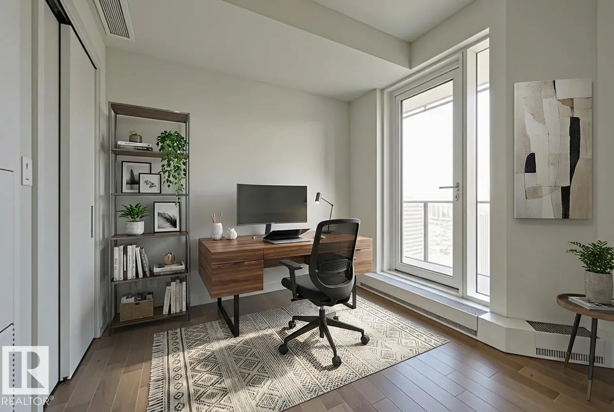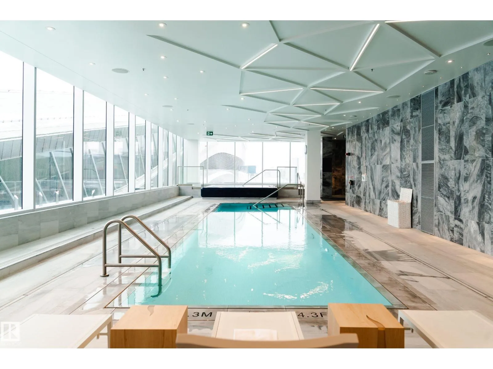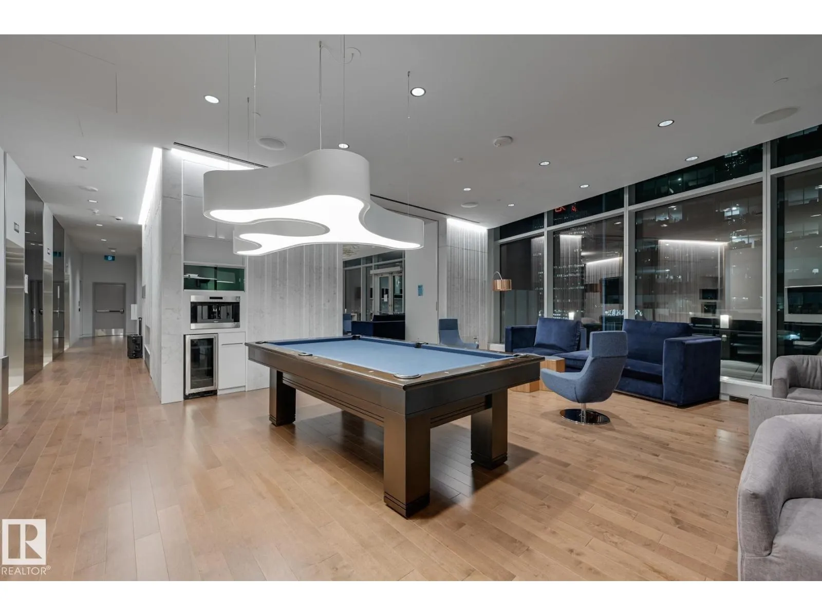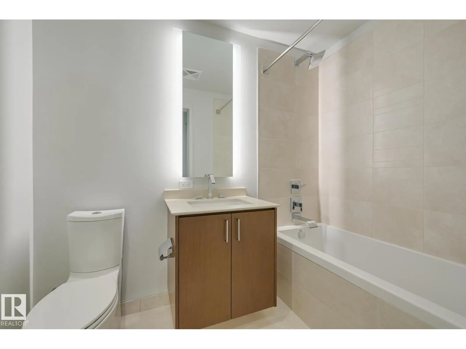 Beautiful 2-Bedroom, 2 Full Bathroom suite available at the Legends Private Residences. Favorite features include a clean and linear layout, spacious peninsula kitchen with additional span of upper cabinets, fully integrated appliances, and ceaserstone island with seating. Modern luxuries include floor-to-ceiling windows, neutral roller shades, natural hardwood floors, tile surfaces in both bathrooms, full temperature control with a/c, and convenient in-suite laundry. The property offers scenic city views from an inviting East facing balcony. ICE Districtâs central location encourages a true walk-indoors experience with pedway access to Rogers Place, the financial core, groceries, public transit + so much more. World-class JW Marriott shared facilities include spa with indoor pool + steam areas, ARCHETYPE fitness facility, 24/7 concierge/security presences, valet and numerous dining choices at your doorstep! (id:27476)