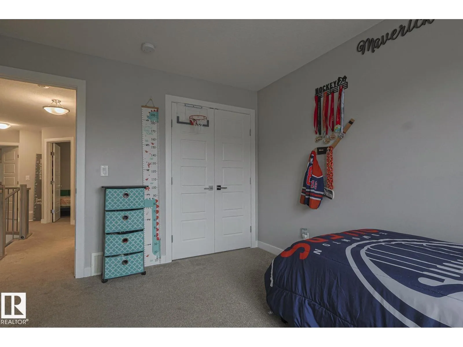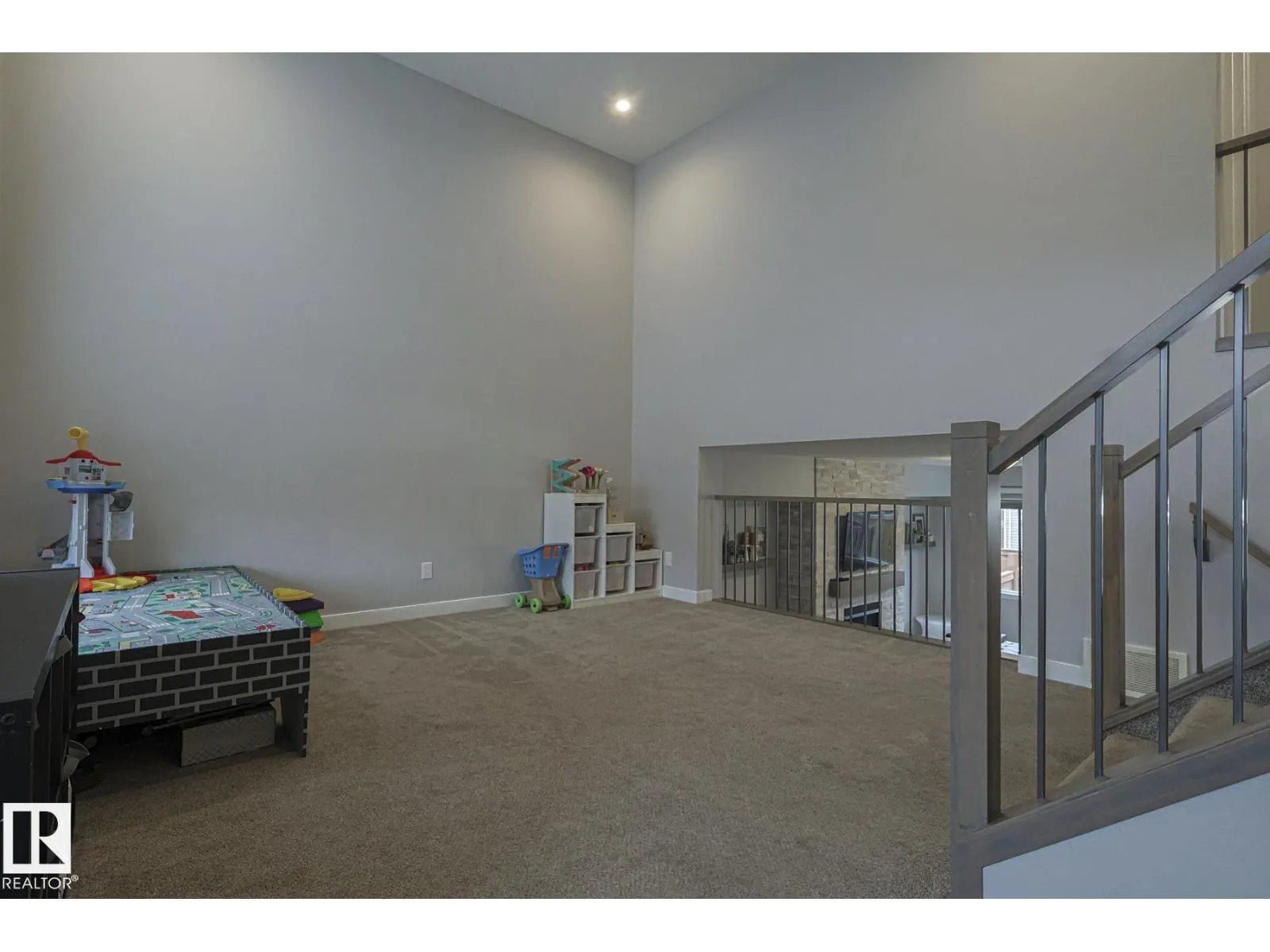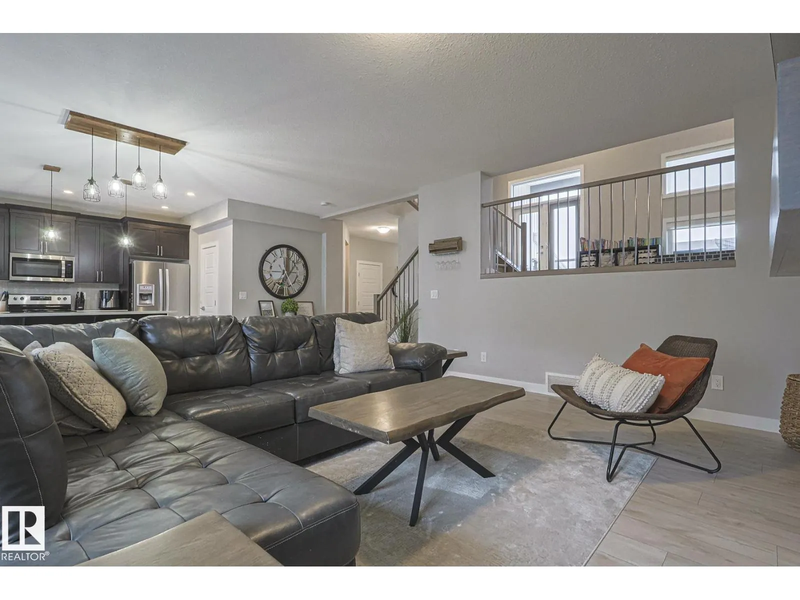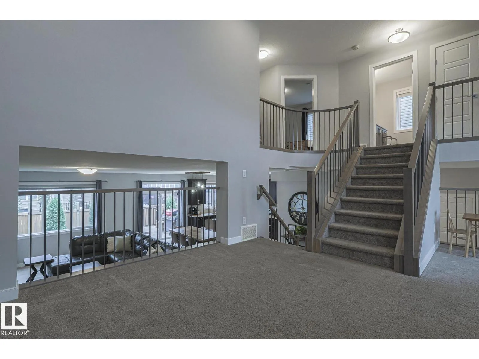 Absolutely stunning! Mattamyâs popular model, The Banff, is located in the desirable community of Stillwater. This open-concept home showcases quality craftsmanship and design. Perfect for large families, the main floor features 9â ceilings and large windows that fill the space with natural light. Enjoy a mix of carpet, ceramic tile, and hardwood flooring with flush-mount wood vents. The gourmet kitchen boasts quartz countertops, stylish cabinetry, a large island with breakfast bar, and a convenient spice kitchen. A cozy gas fireplace warms the great room, and the spacious dining area is perfect for family gatherings. Upstairs, a vaulted bonus room opens to a covered veranda. The top floor includes two generous bedrooms and a master suite with walk-in closet and ensuite. If you're looking for something beyond the usual floor plans, this home is a must-see. Conveniently located near amenities, shopping, West Edmonton Mall, and the Anthony Henday. (id:27476)