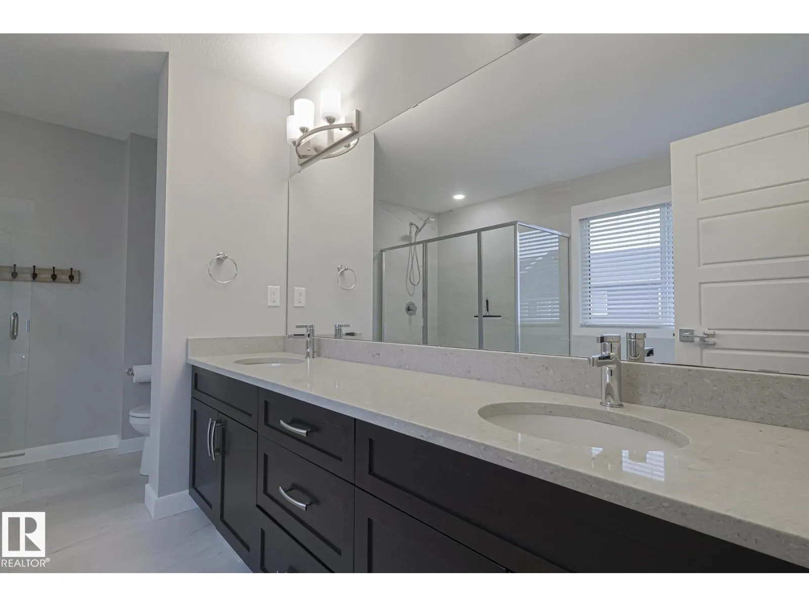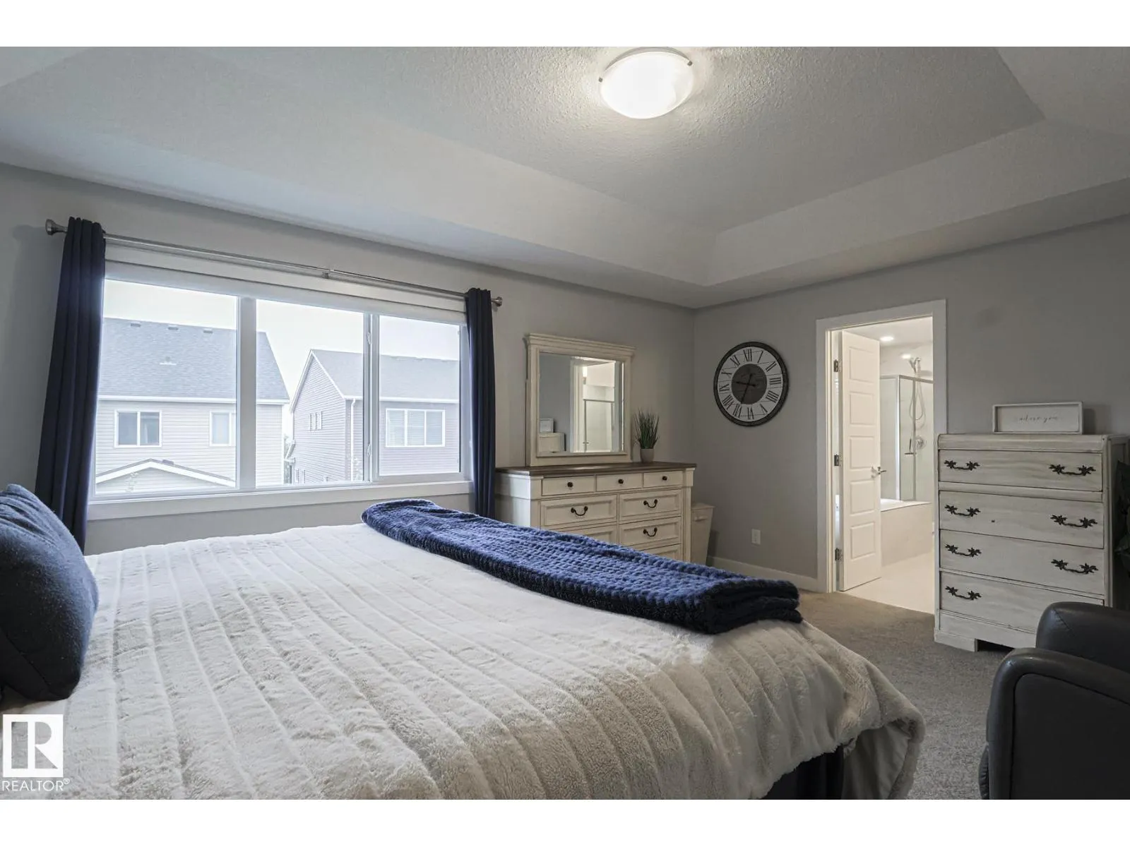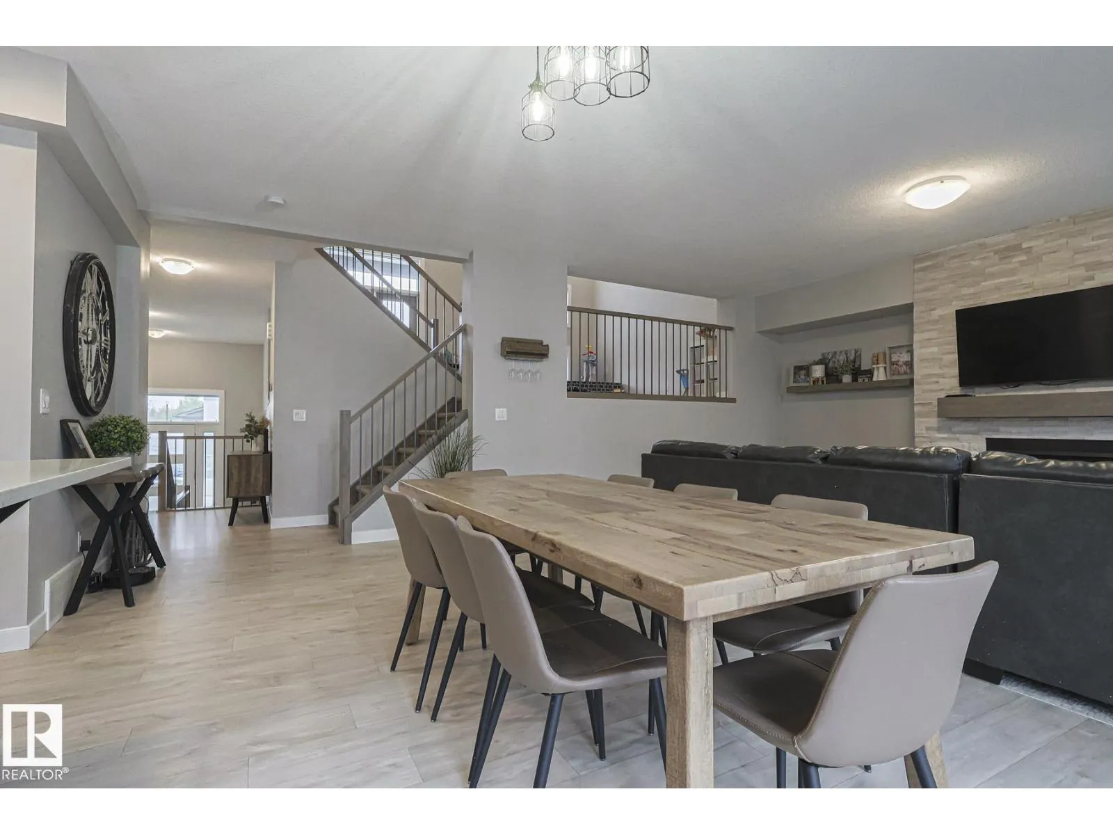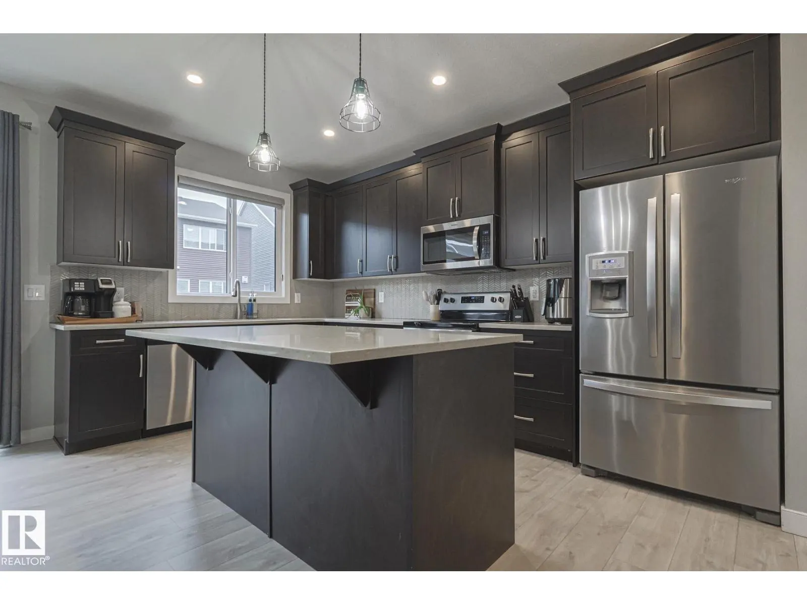 Absolutely stunning! Mattamyâs popular model, The Banff, is located in the desirable community of Stillwater. This open-concept home showcases quality craftsmanship and design. Perfect for large families, the main floor features 9â ceilings and large windows that fill the space with natural light. Enjoy a mix of carpet, ceramic tile, and hardwood flooring with flush-mount wood vents. The gourmet kitchen boasts quartz countertops, stylish cabinetry, a large island with breakfast bar, and a convenient spice kitchen. A cozy gas fireplace warms the great room, and the spacious dining area is perfect for family gatherings. Upstairs, a vaulted bonus room opens to a covered veranda. The top floor includes two generous bedrooms and a master suite with walk-in closet and ensuite. If you're looking for something beyond the usual floor plans, this home is a must-see. Conveniently located near amenities, shopping, West Edmonton Mall, and the Anthony Henday. (id:27476)