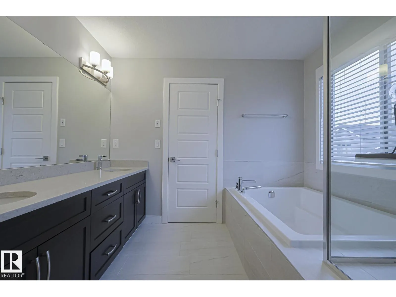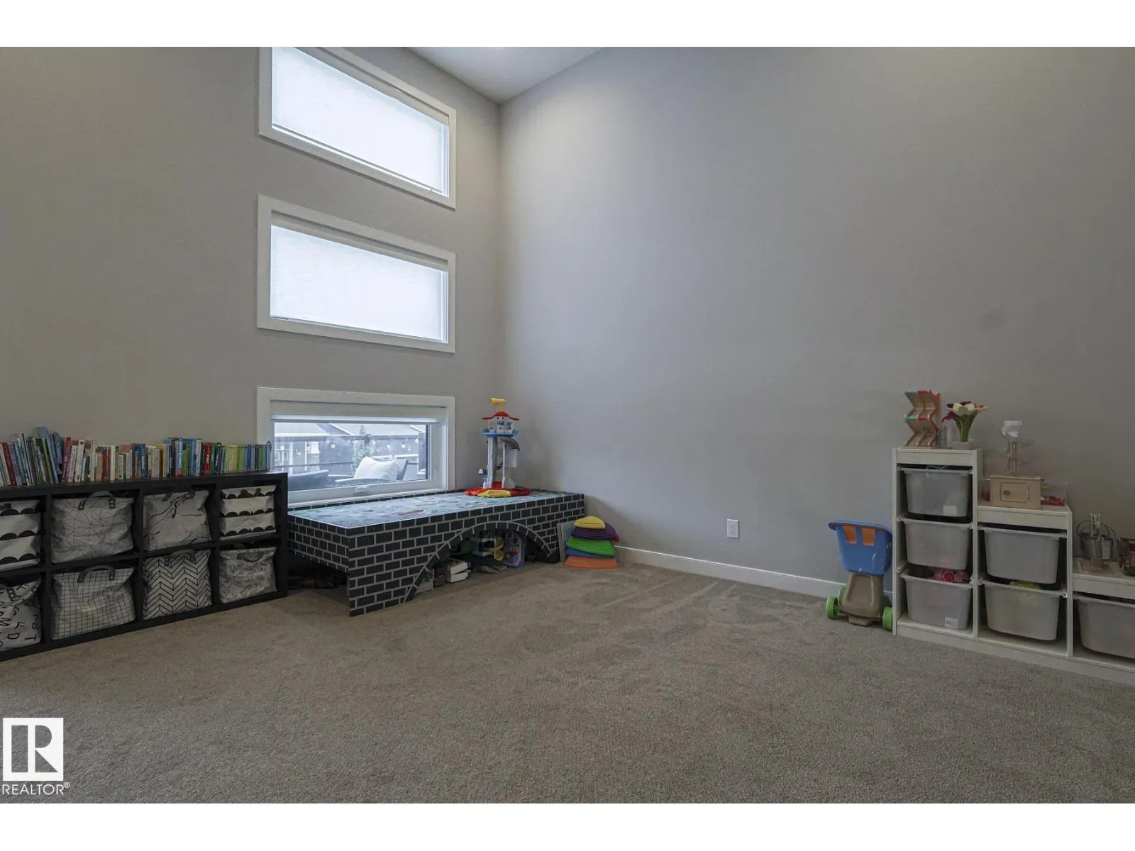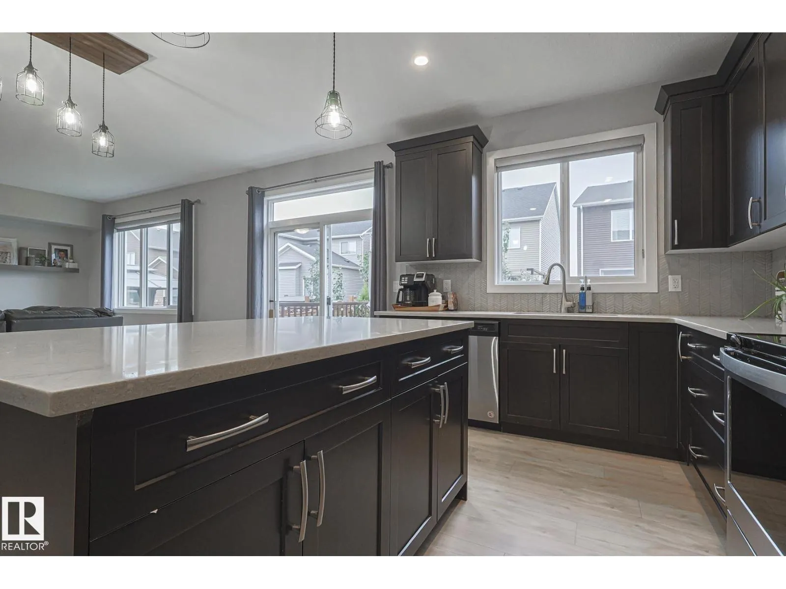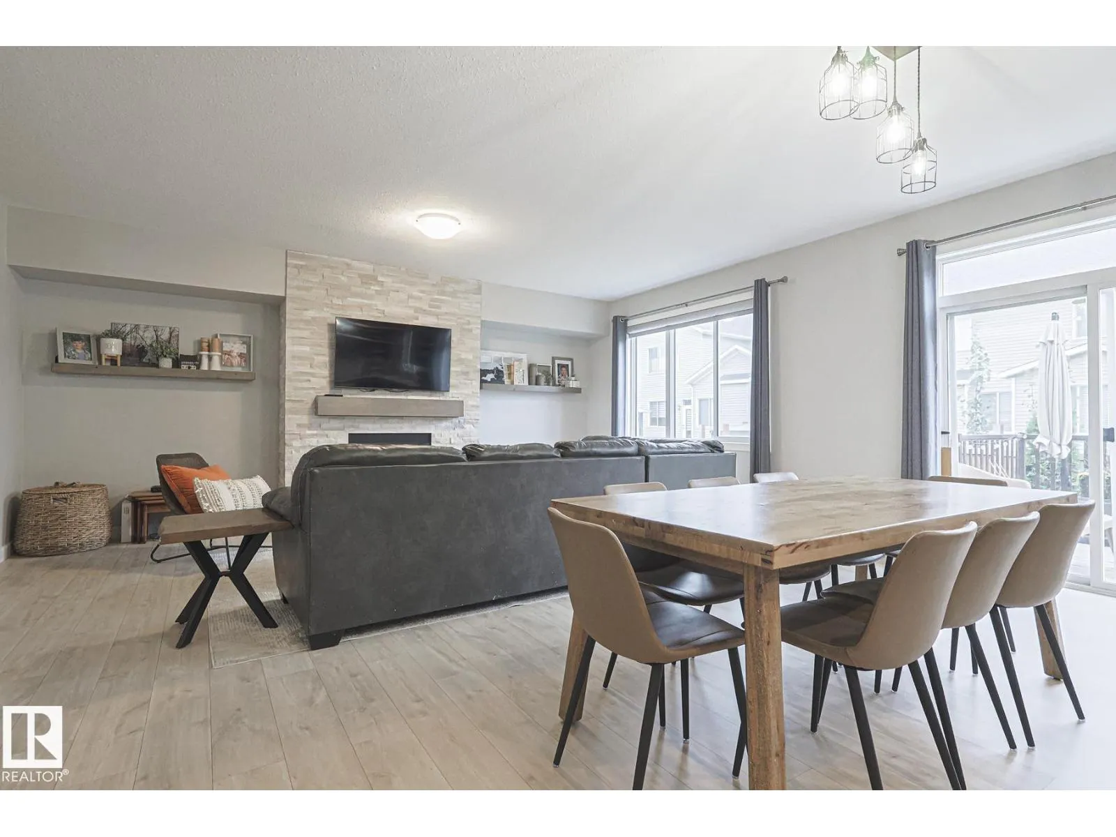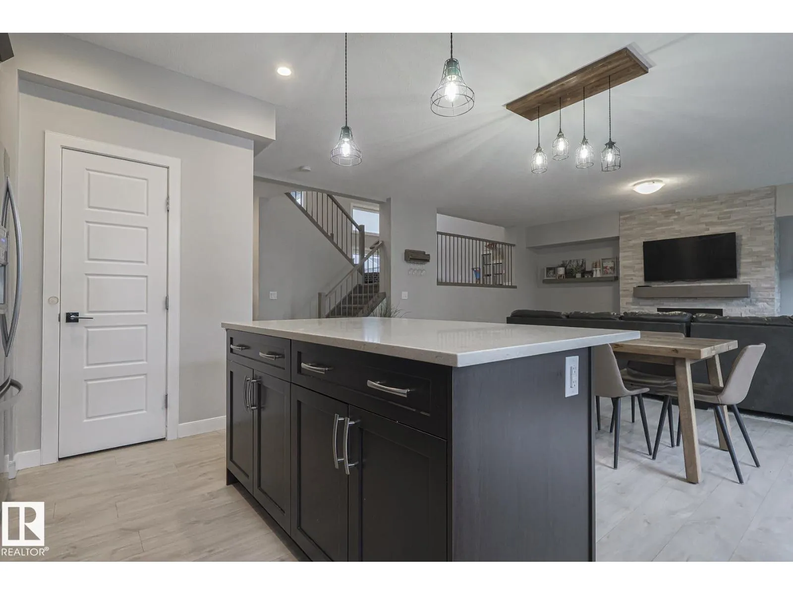 Absolutely stunning! Mattamyâs popular model, The Banff, is located in the desirable community of Stillwater. This open-concept home showcases quality craftsmanship and design. Perfect for large families, the main floor features 9â ceilings and large windows that fill the space with natural light. Enjoy a mix of carpet, ceramic tile, and hardwood flooring with flush-mount wood vents. The gourmet kitchen boasts quartz countertops, stylish cabinetry, a large island with breakfast bar, and a convenient spice kitchen. A cozy gas fireplace warms the great room, and the spacious dining area is perfect for family gatherings. Upstairs, a vaulted bonus room opens to a covered veranda. The top floor includes two generous bedrooms and a master suite with walk-in closet and ensuite. If you're looking for something beyond the usual floor plans, this home is a must-see. Conveniently located near amenities, shopping, West Edmonton Mall, and the Anthony Henday. (id:27476)